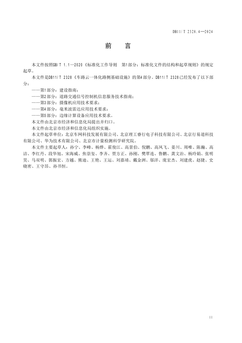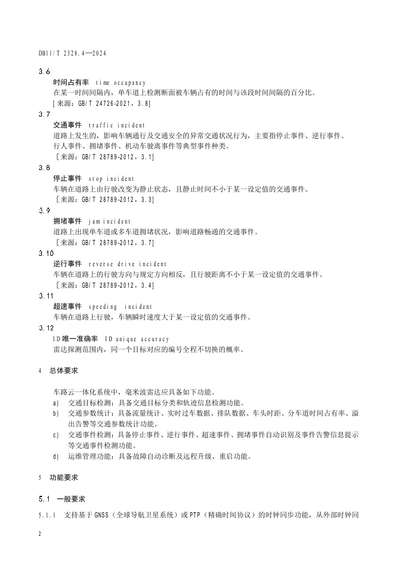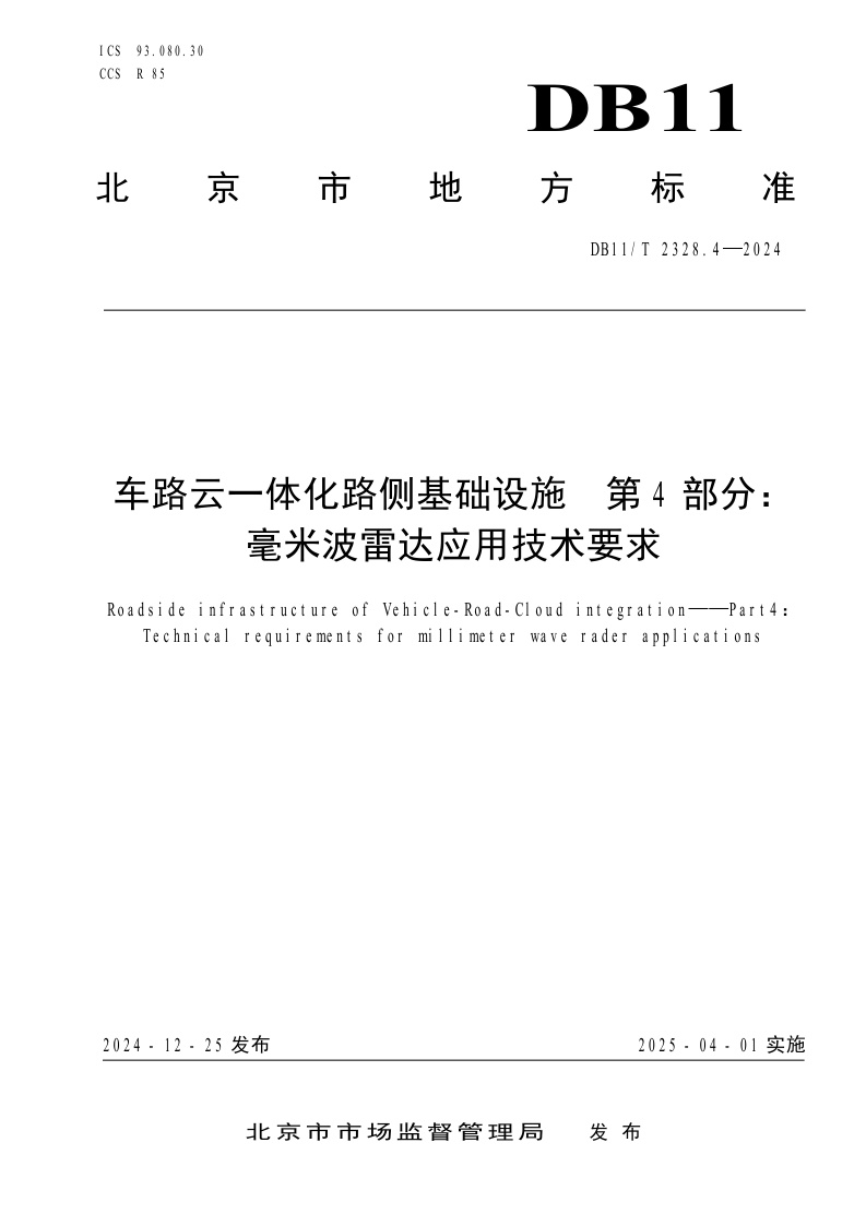 北京市《车路云一体化路侧基础设施 第4部分:毫米波雷达应用技术要求》(DB11/T 2328.4-2024)