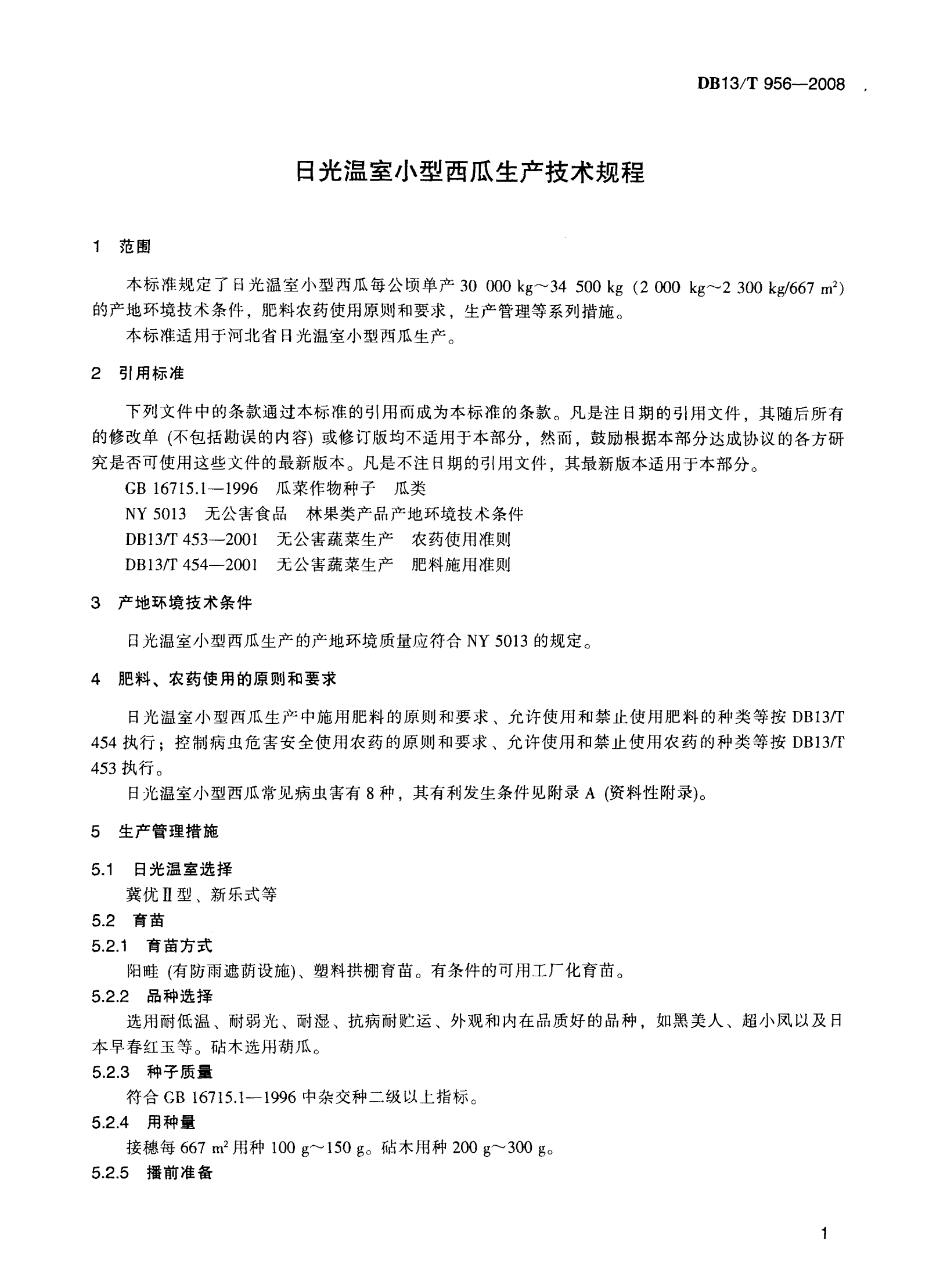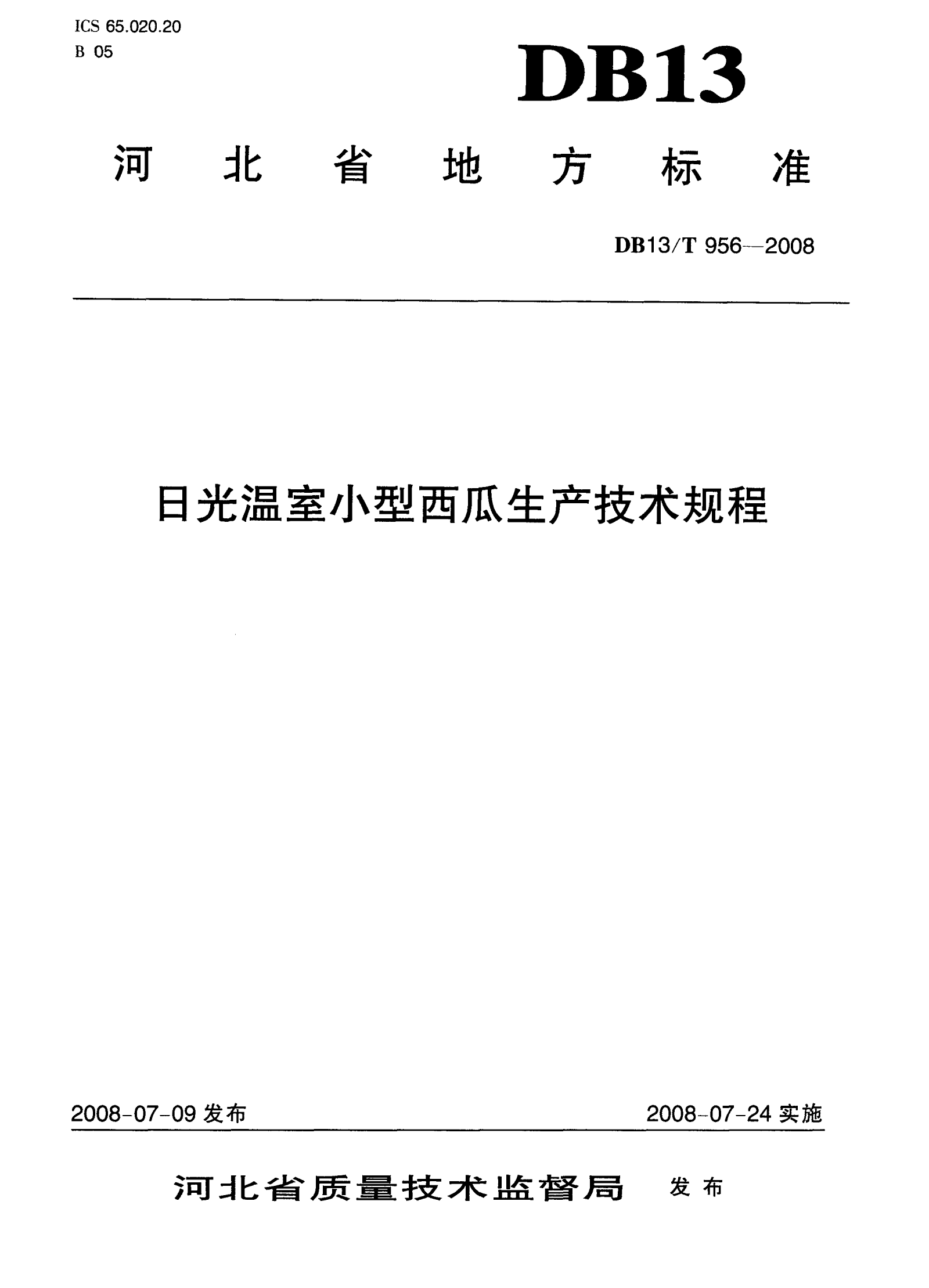河北省日光温室小型西瓜生产技术规程