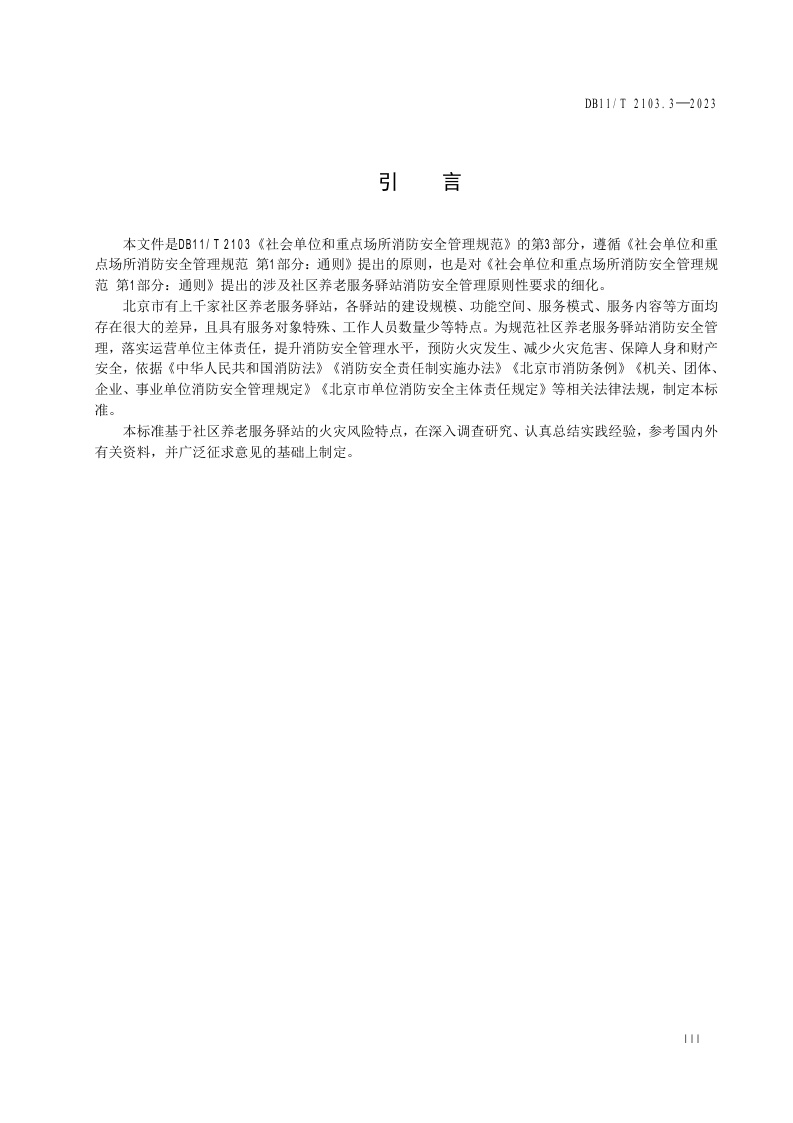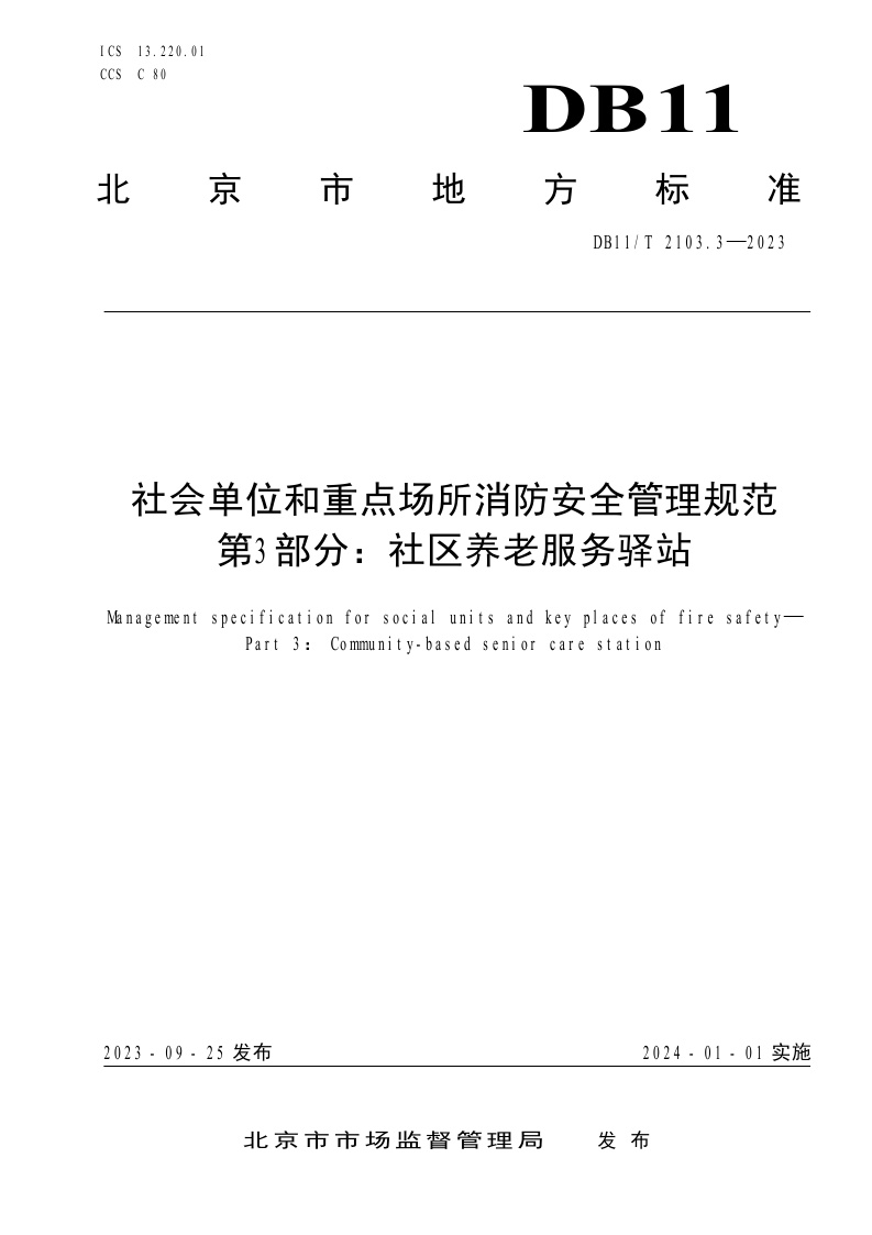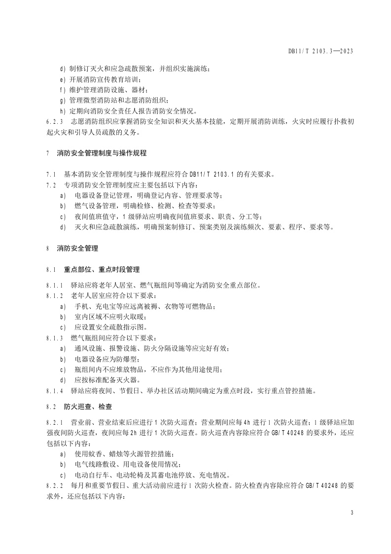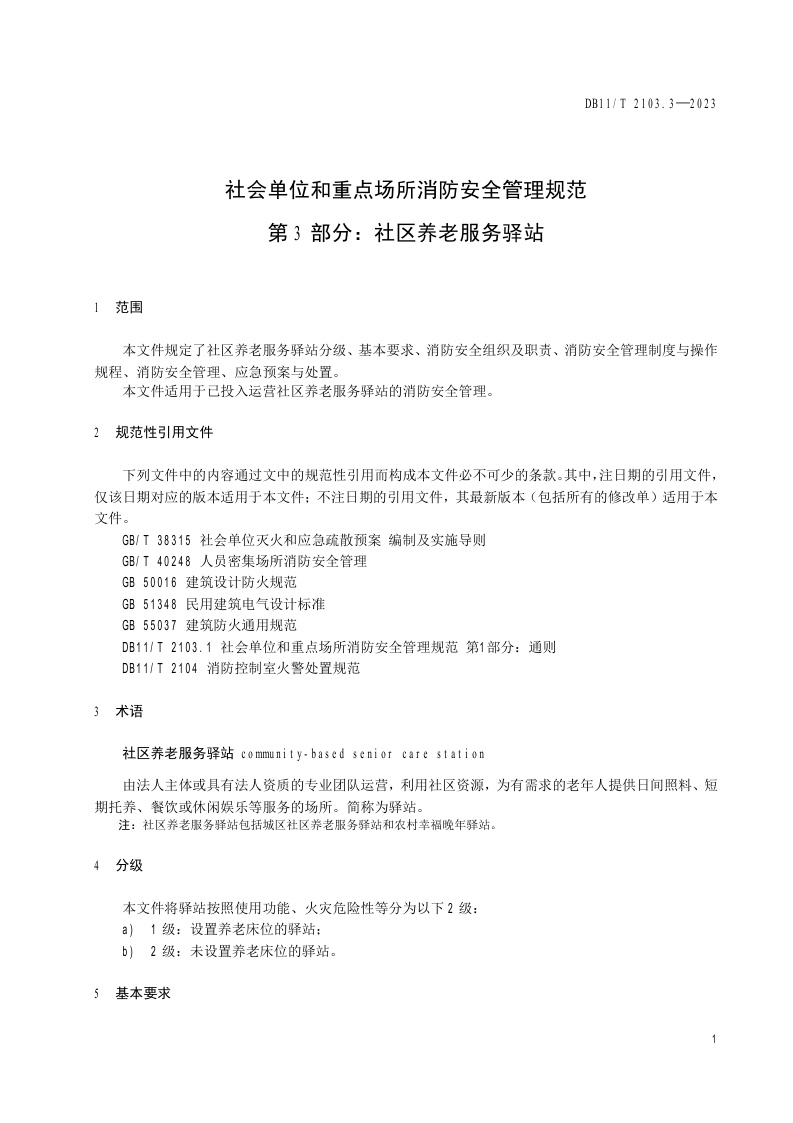 北京市《社会单位和重点场所消防安全管理规范 第3部分:社区养老服务驿站》(DB11/T 2103.3-2023)