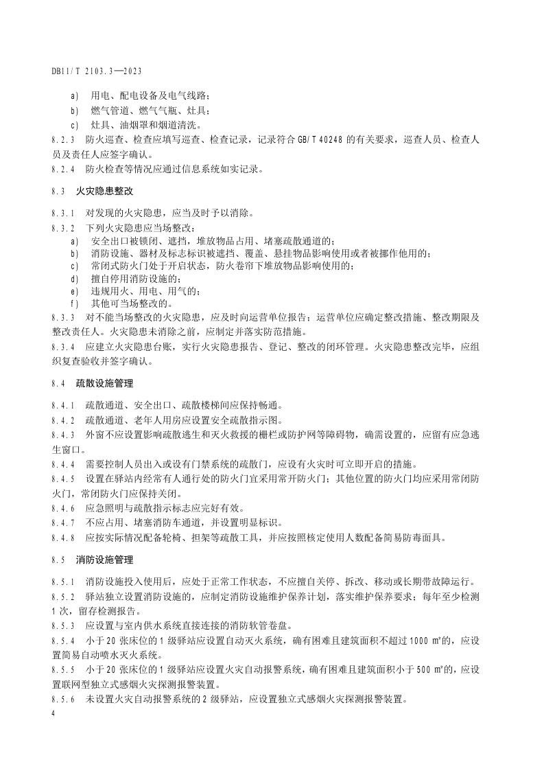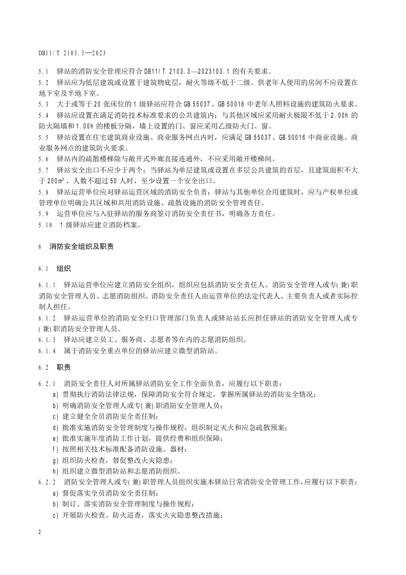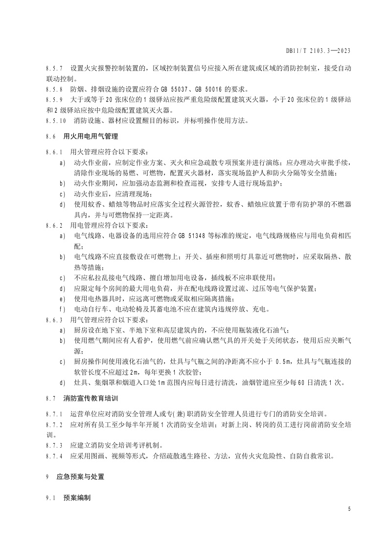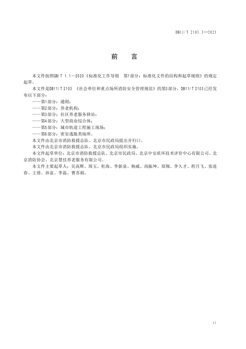 北京市《社会单位和重点场所消防安全管理规范 第3部分:社区养老服务驿站》(DB11/T 2103.3-2023)