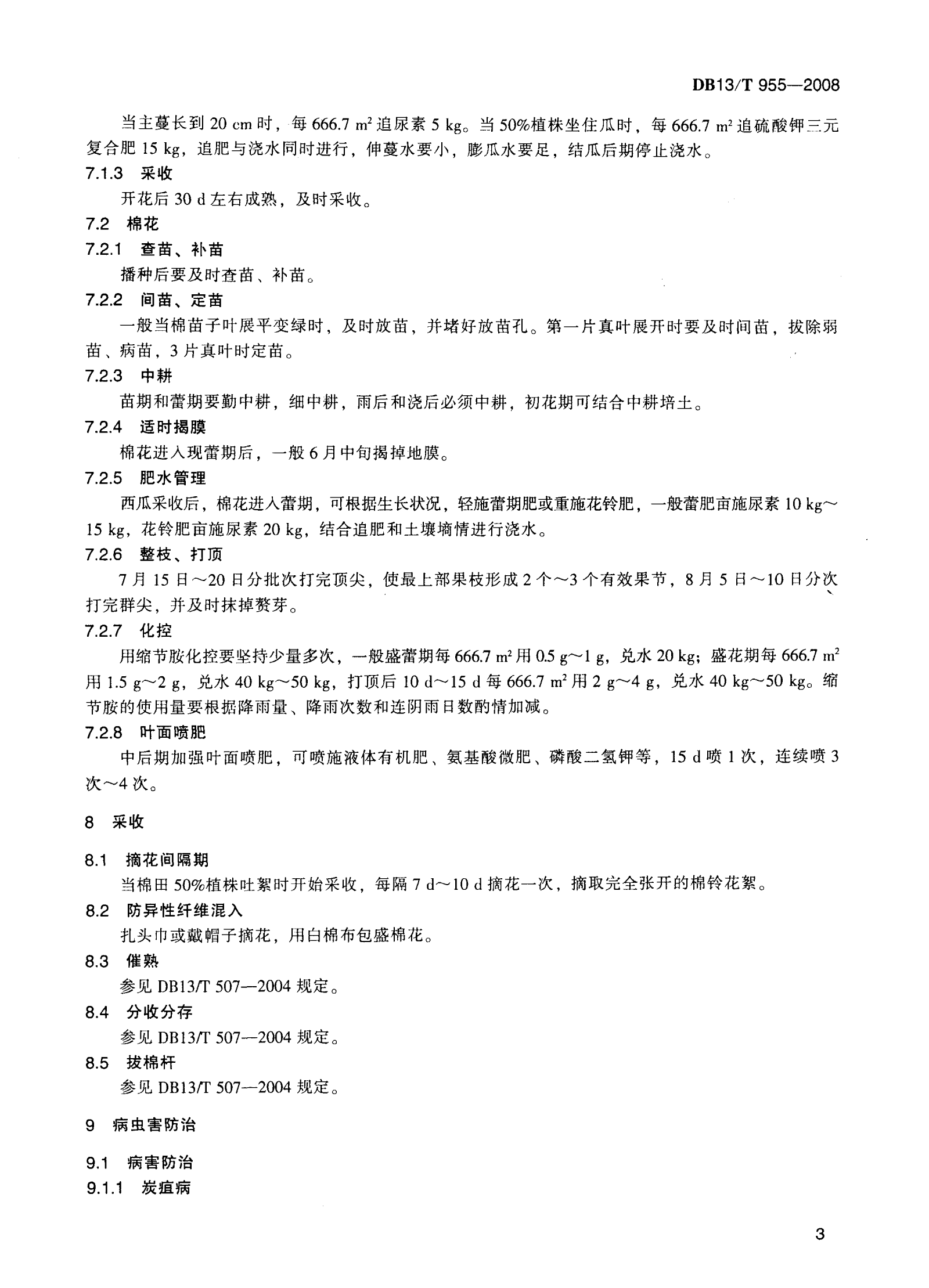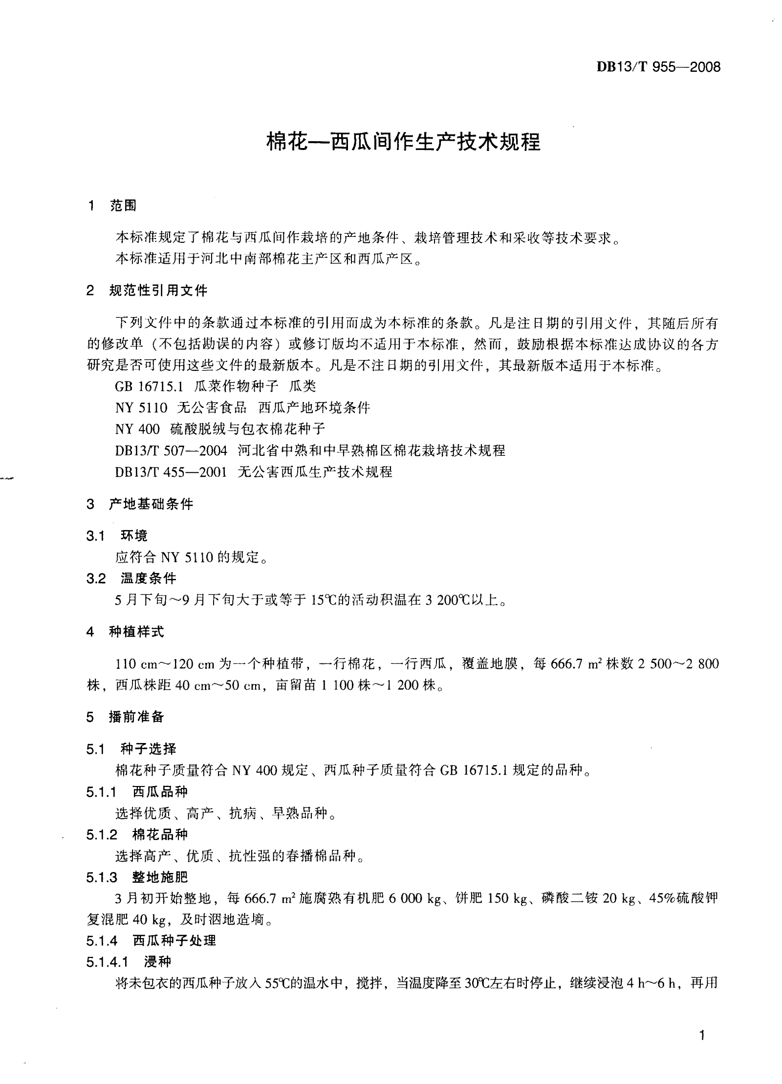 河北省棉花-西瓜间作生产技术规程