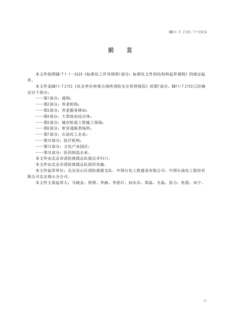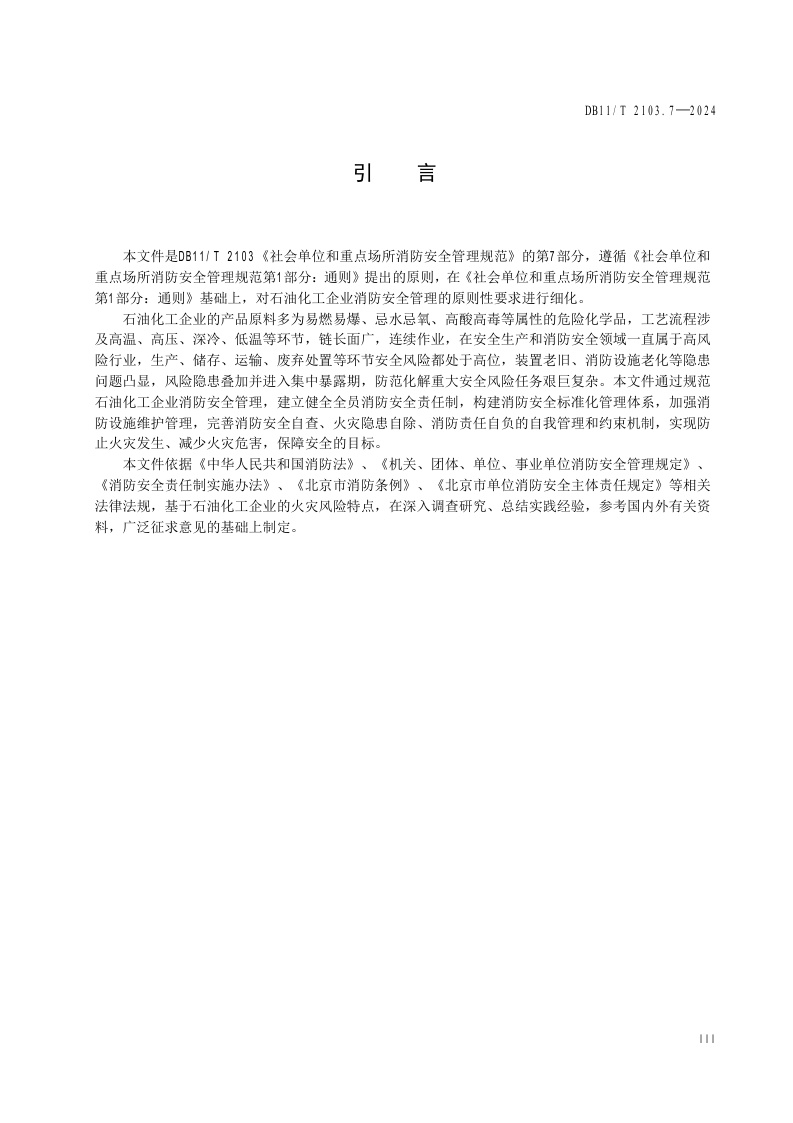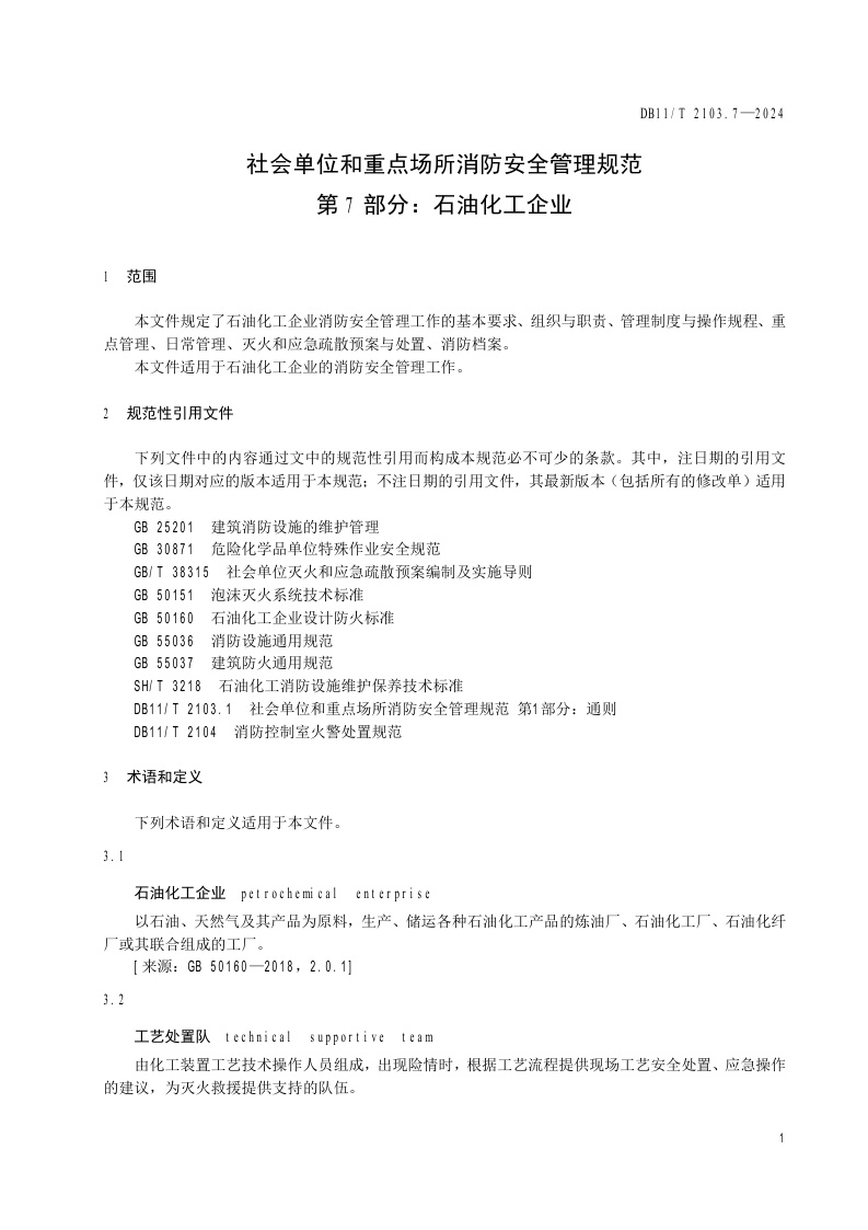 北京市《社会单位和重点场所消防安全管理规范 第7部分:石油化工企业》(DB11/T 2103.7-2024)