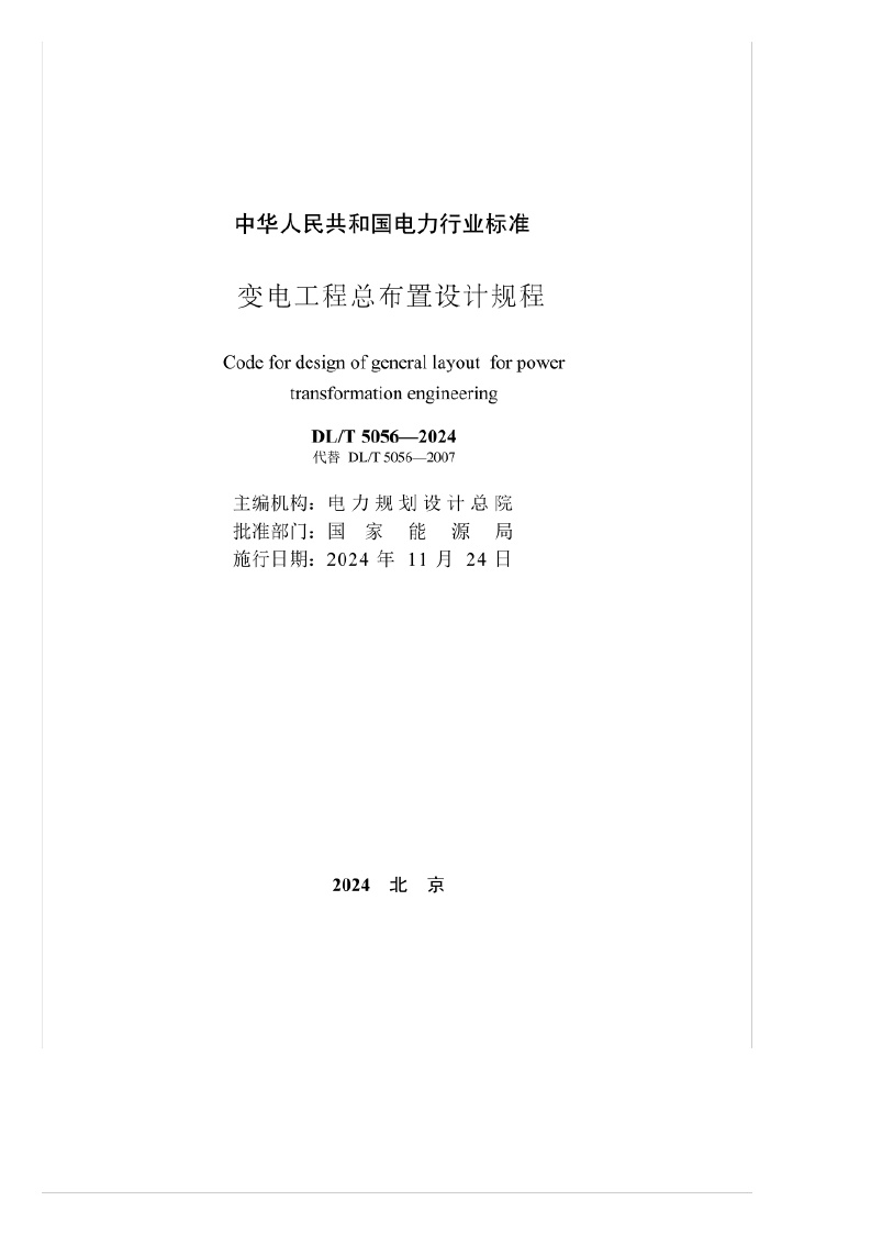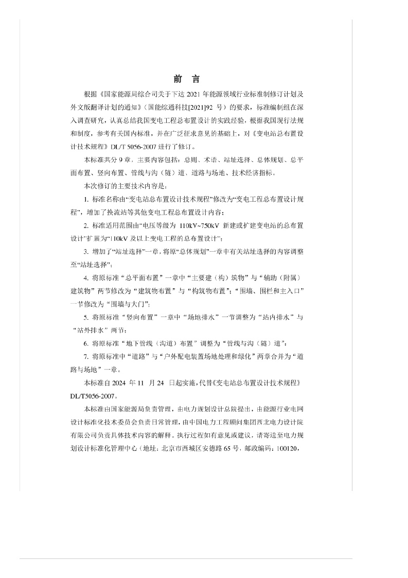 《变电站总布置设计技术规程》(DL/T11543-2024)