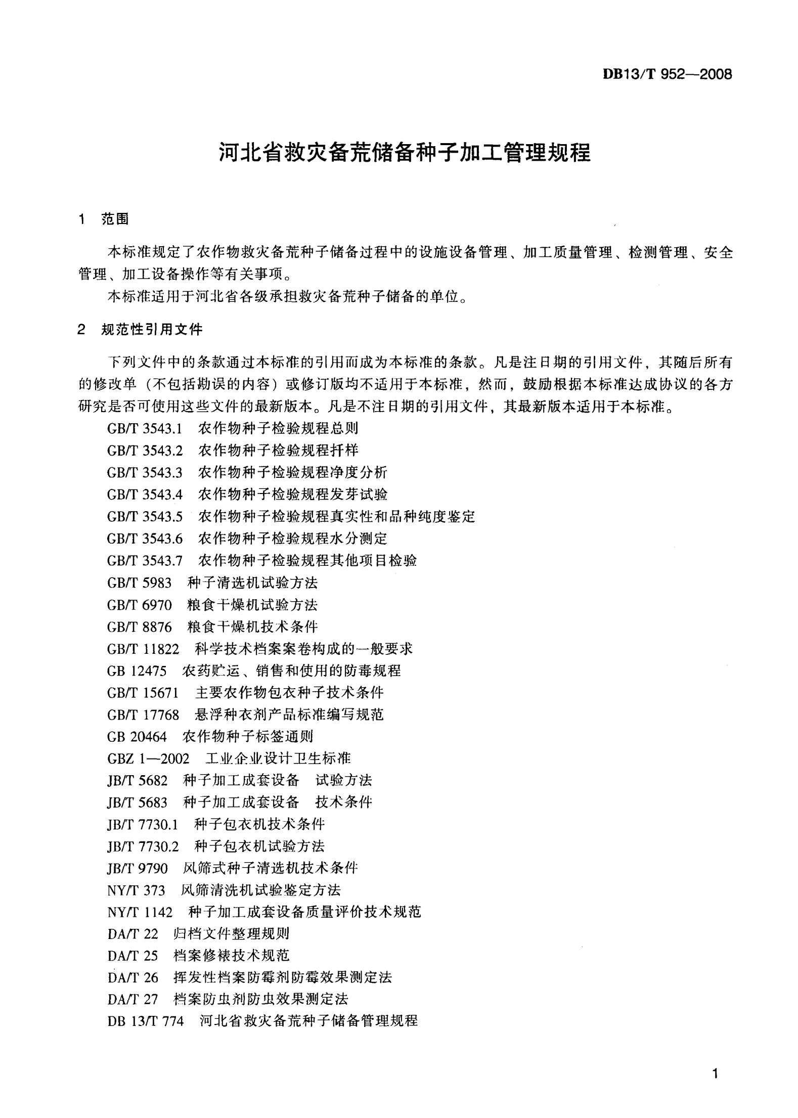 河北省救灾备荒储备种子加工管理规程