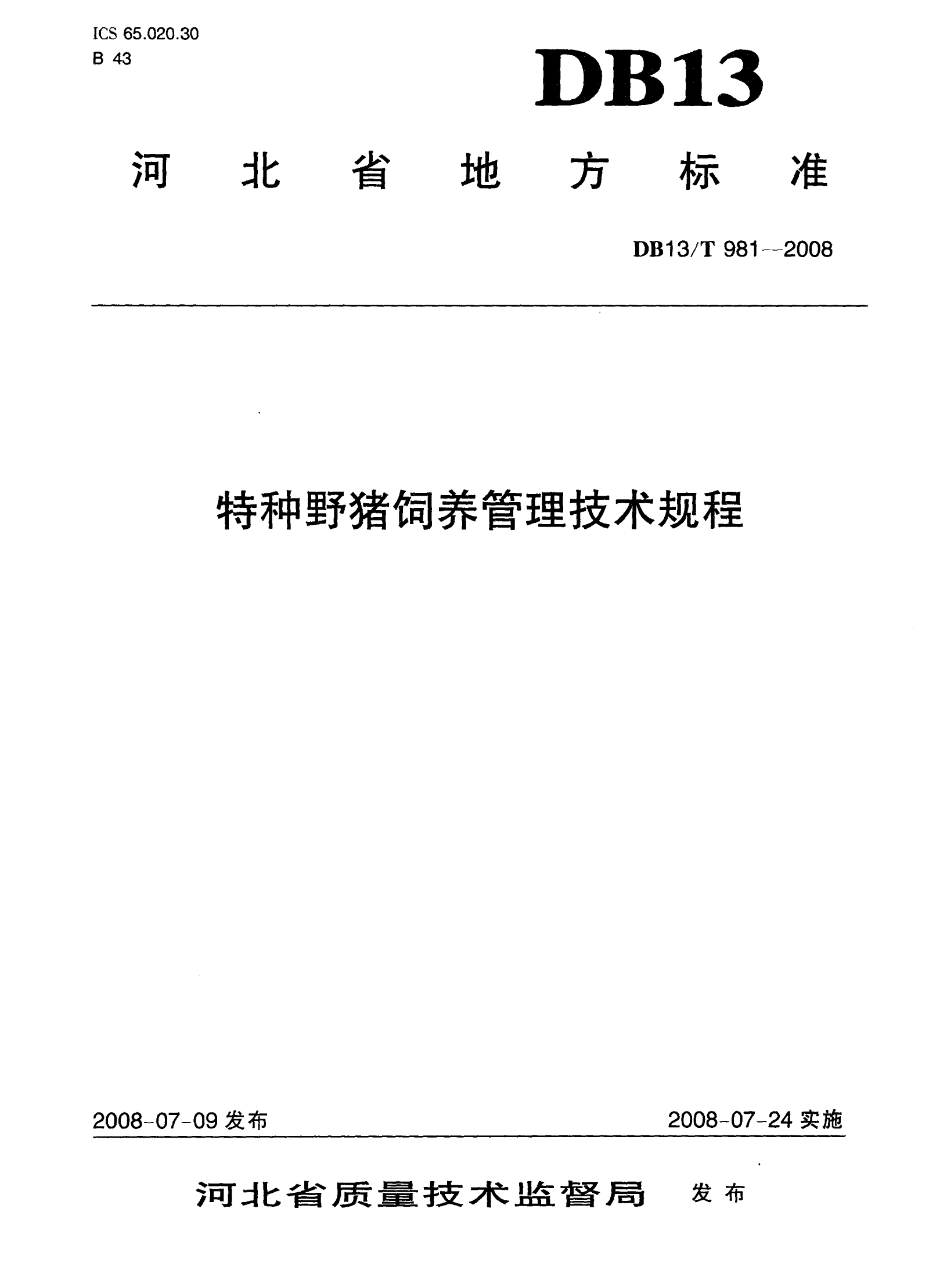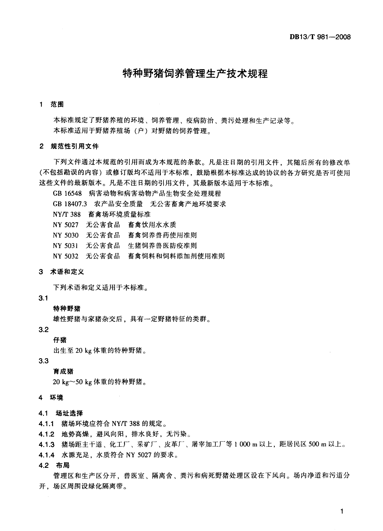 河北省特种野猪饲养管理技术规程