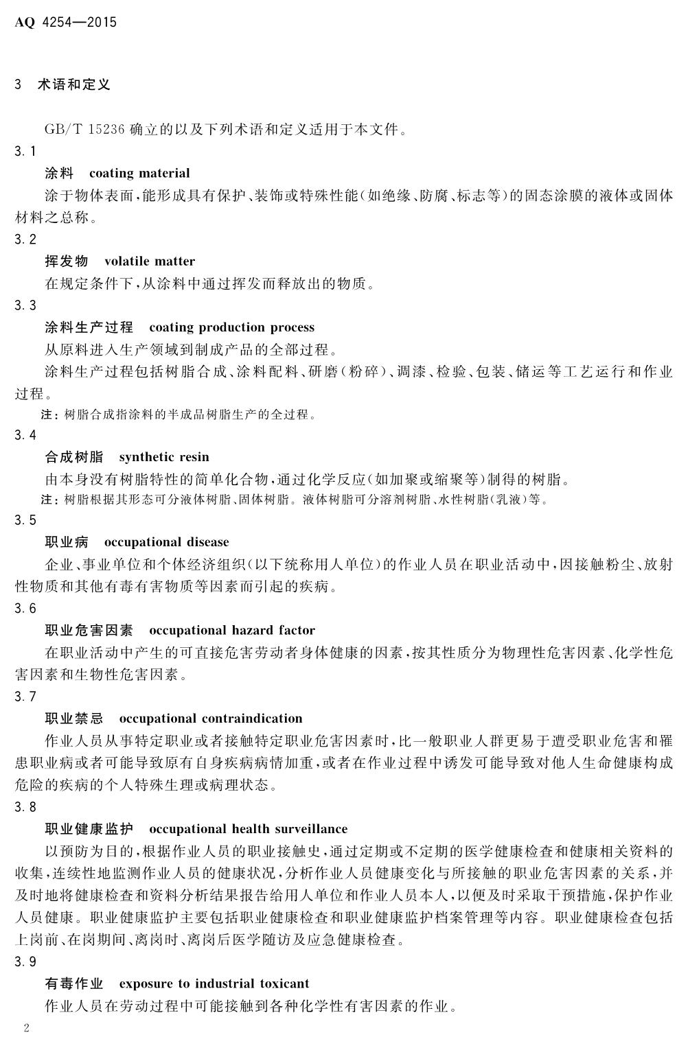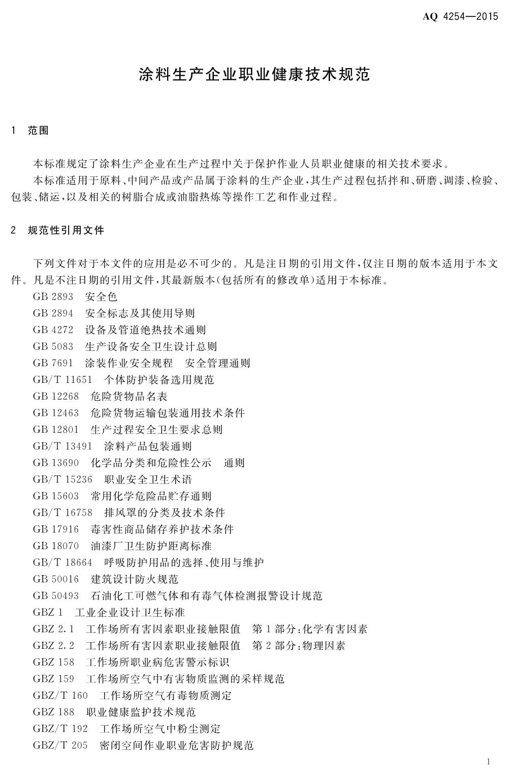 《涂料生产企业职业健康技术规范》(WS722-2015)