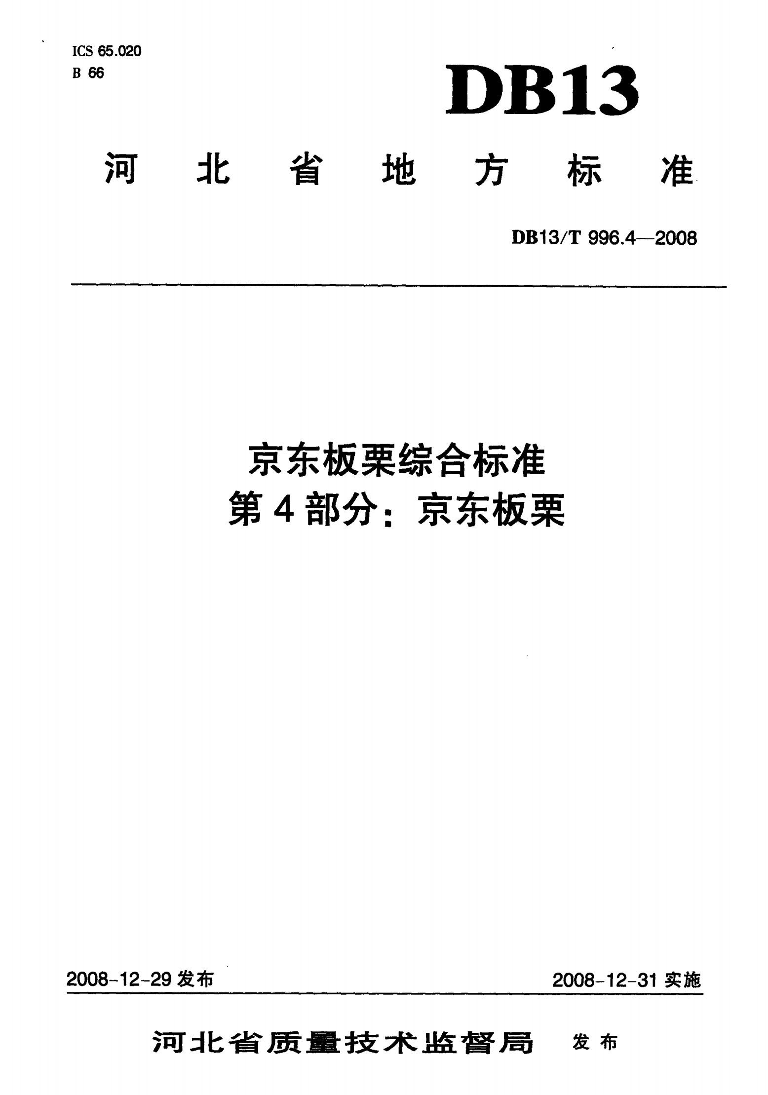 河北省京东板栗综合标准 第4部分: 京东板栗