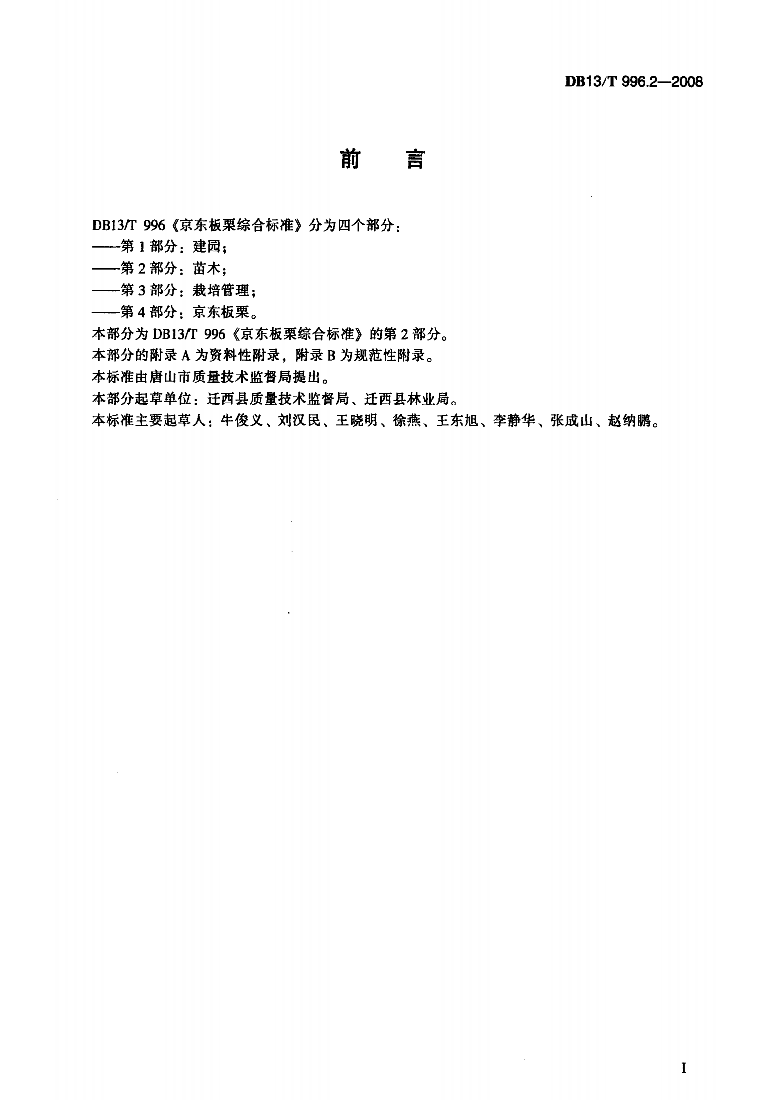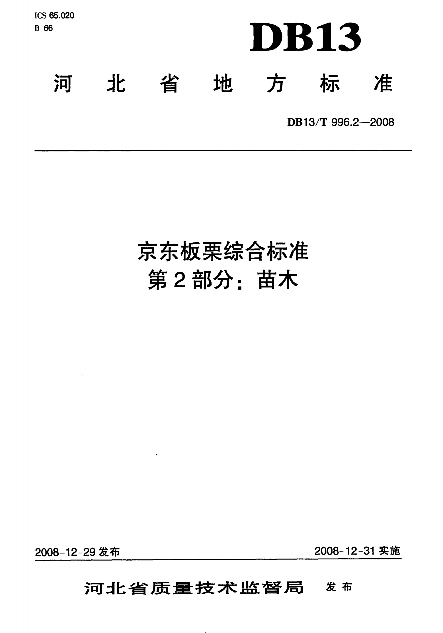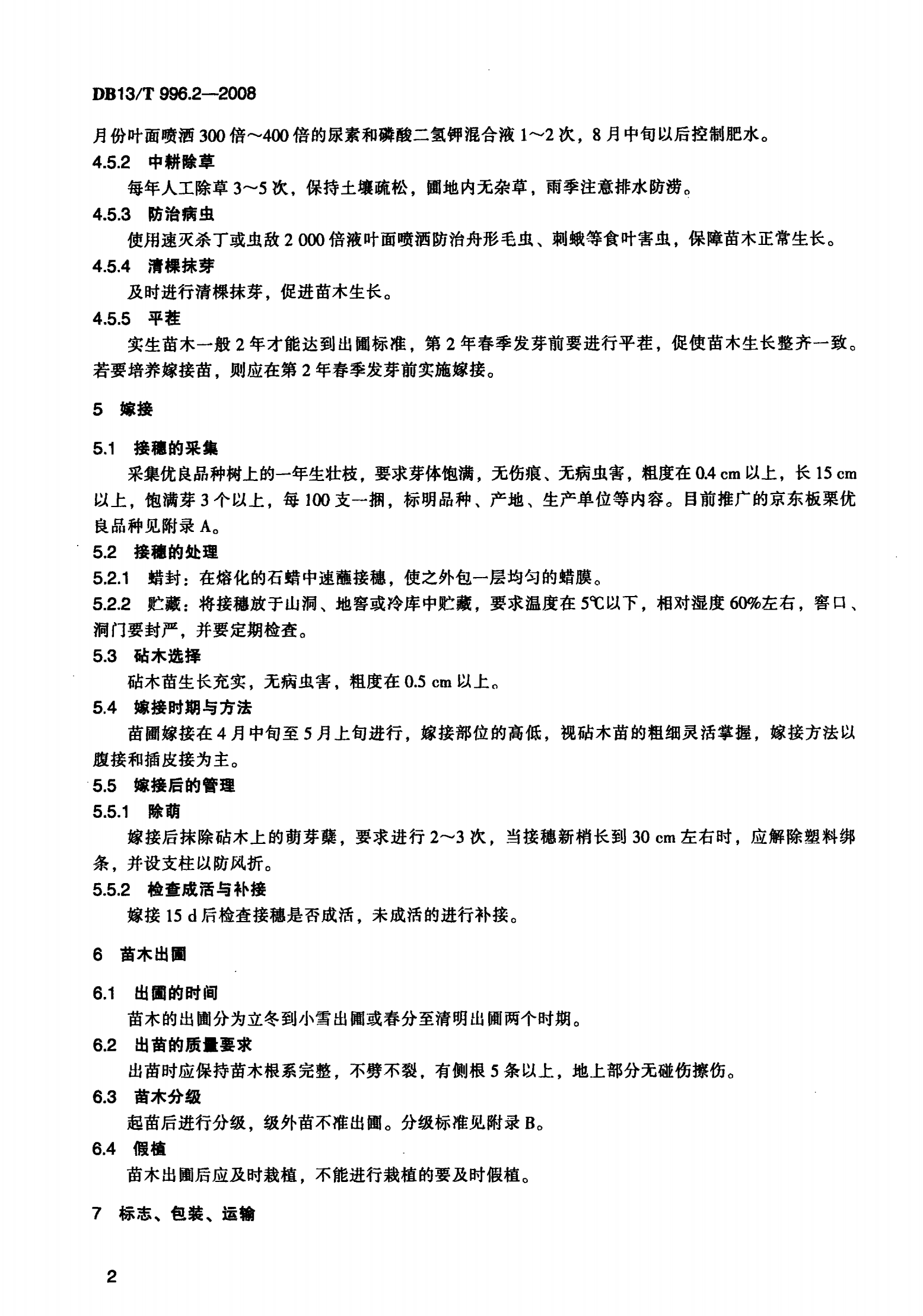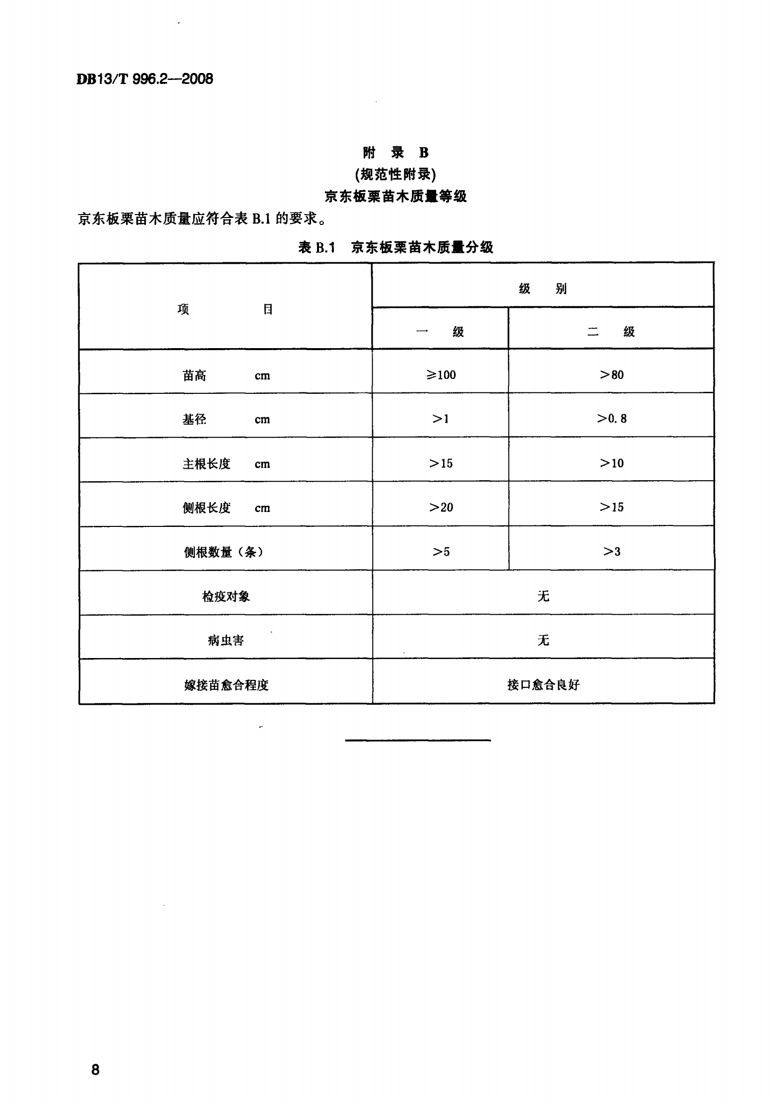 河北省京东板栗综合标准 第2部分: 苗木