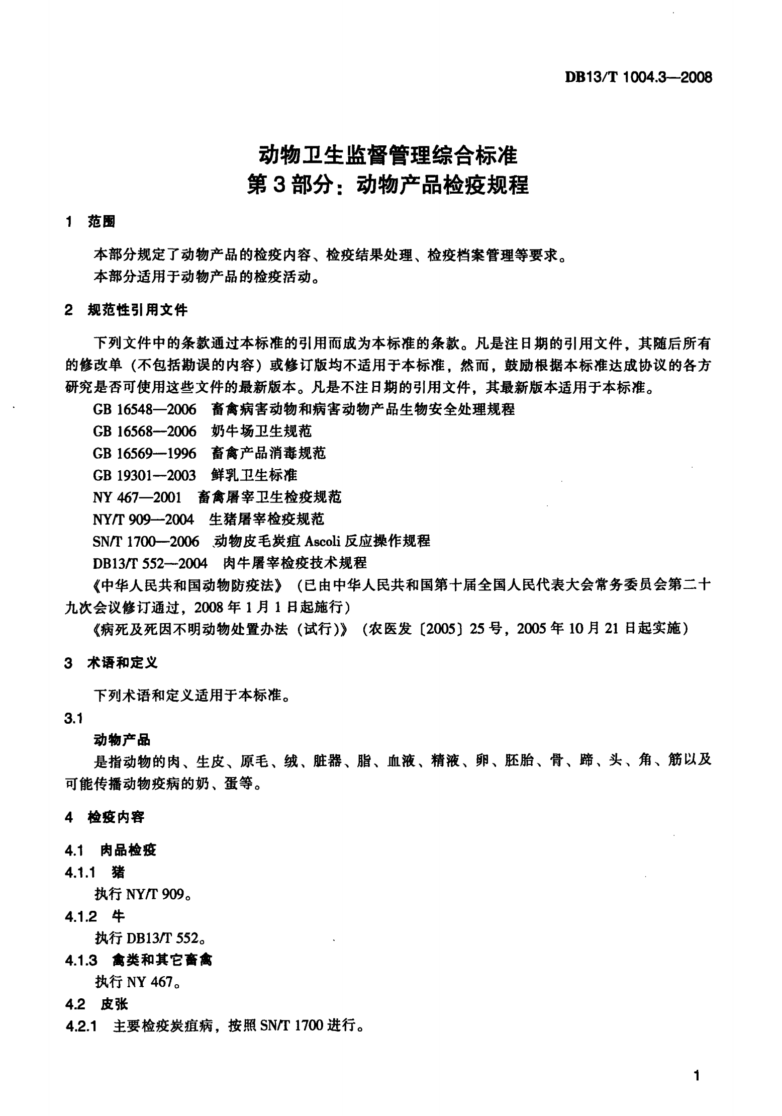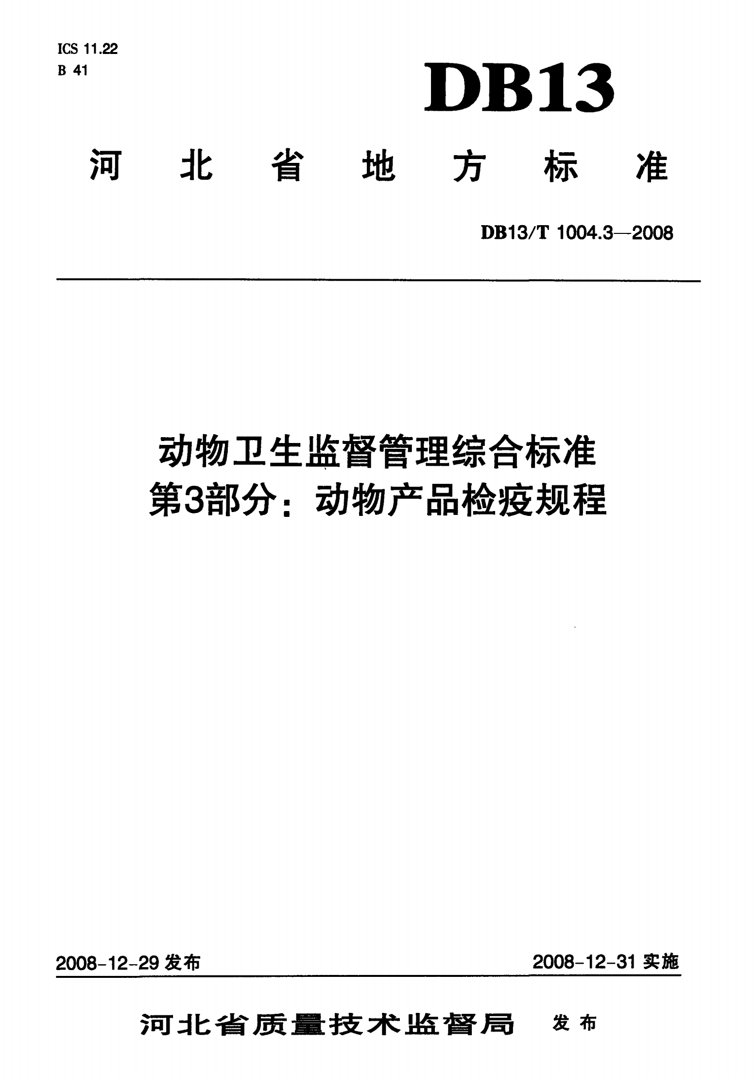 河北省动物卫生监督管理综合标准 第3部分: 动物产品检疫规程