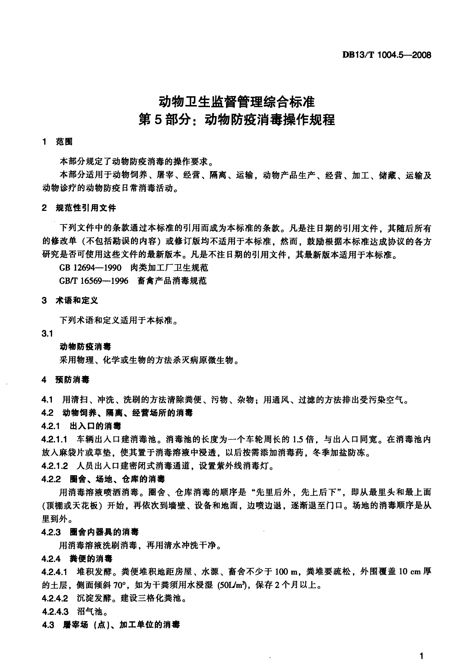 河北省动物卫生监督管理综合标准 第5部分: 动物防疫消毒操作规程