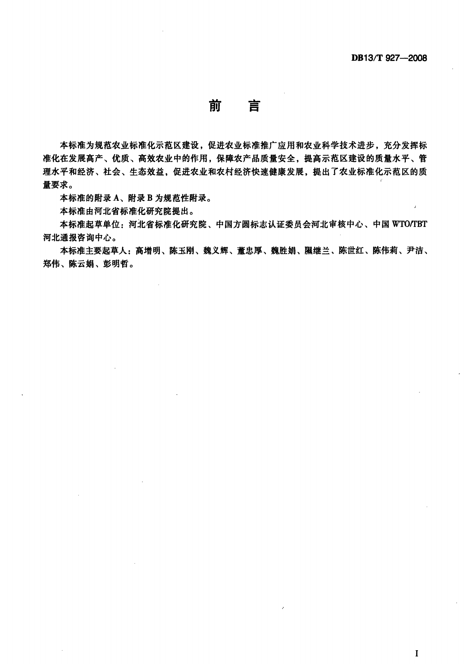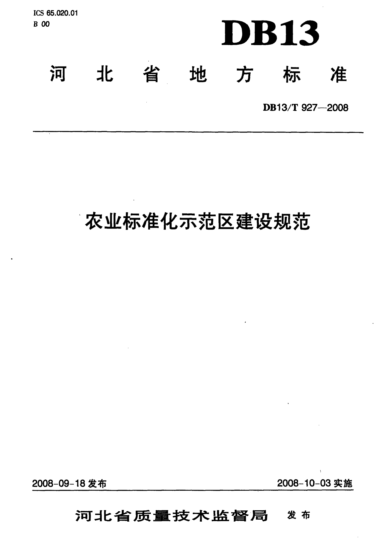 河北省农业标准化示范区建设规范