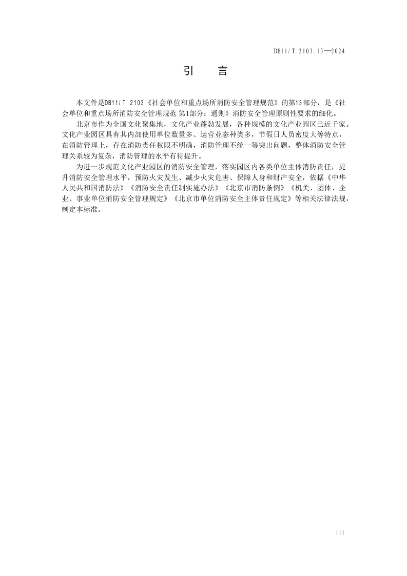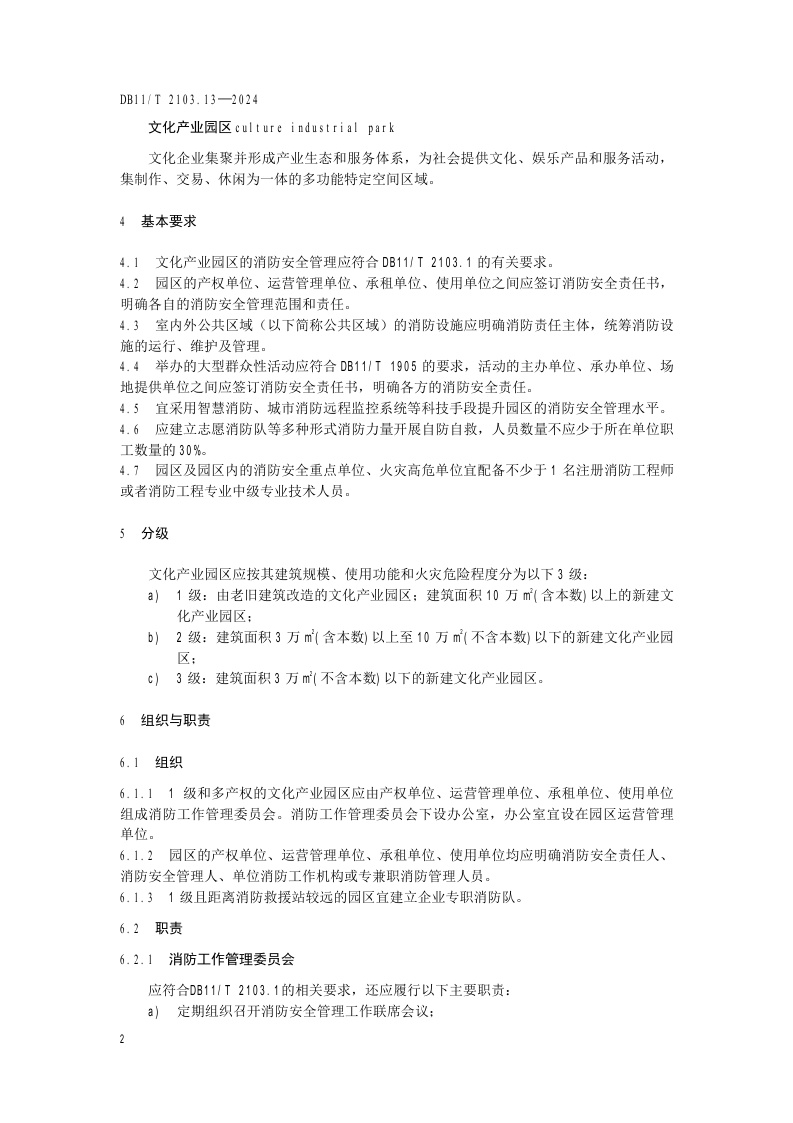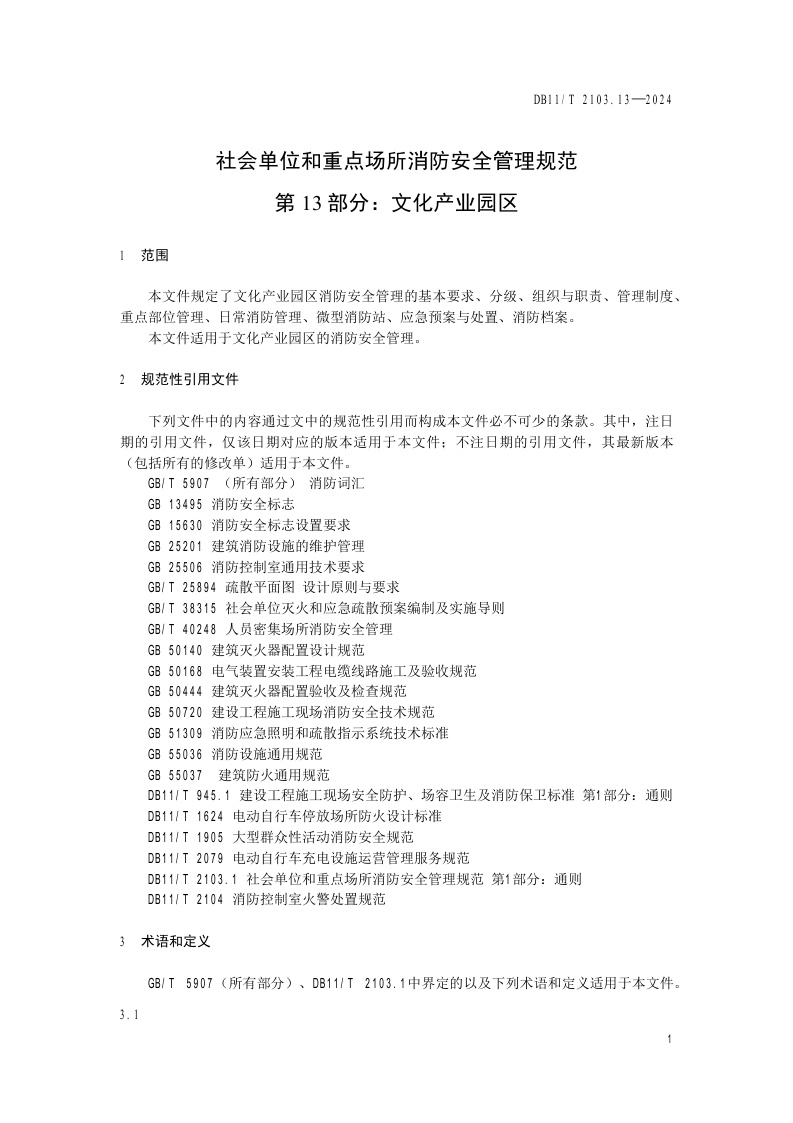 北京市《社会单位和重点场所消防安全管理规范 第13部分:文化产业园区》(DB11T 2103.13-2024)