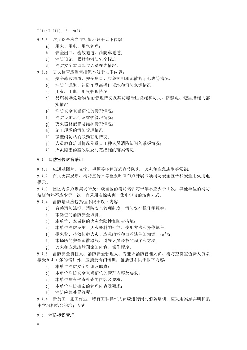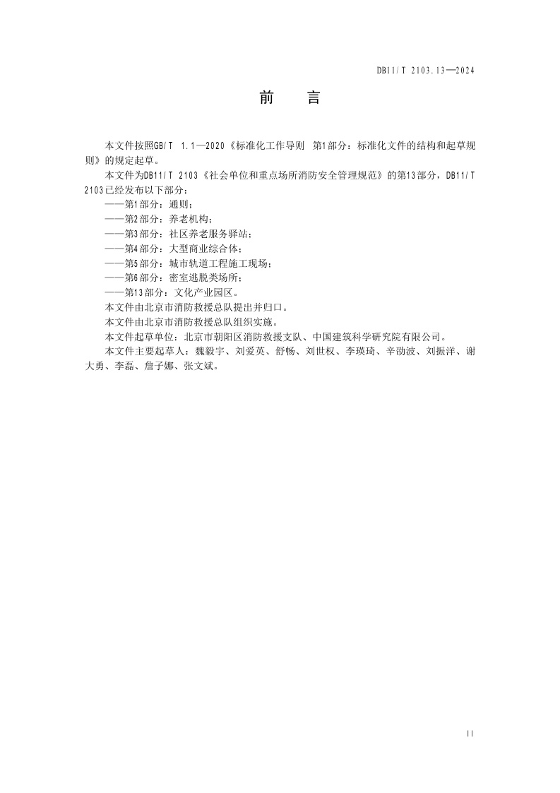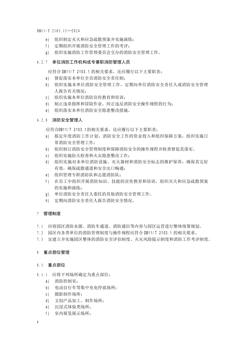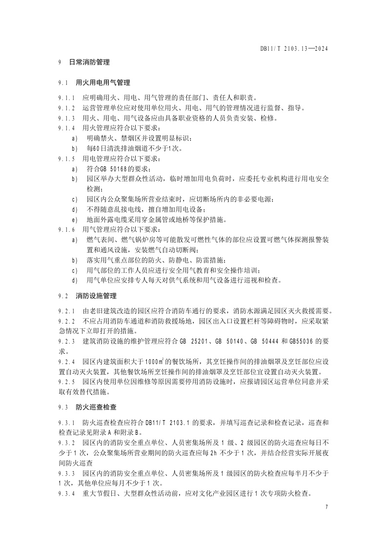 北京市《社会单位和重点场所消防安全管理规范 第13部分:文化产业园区》(DB11T 2103.13-2024)