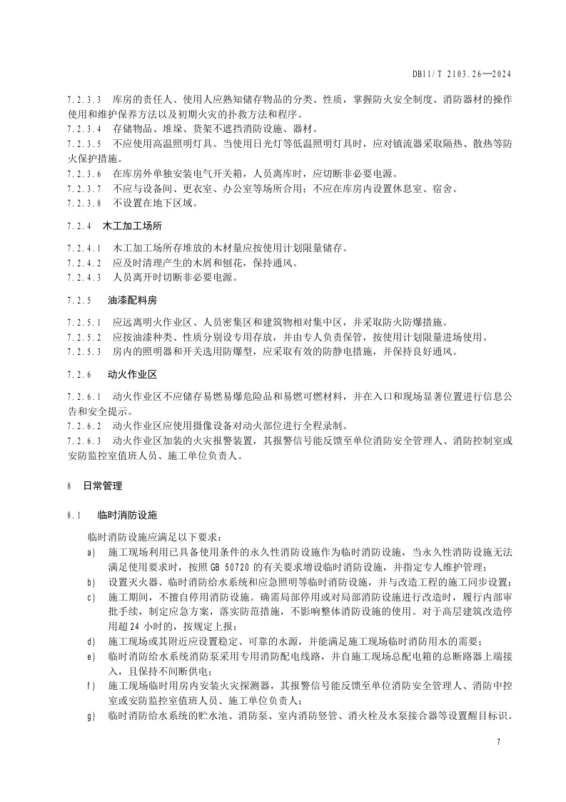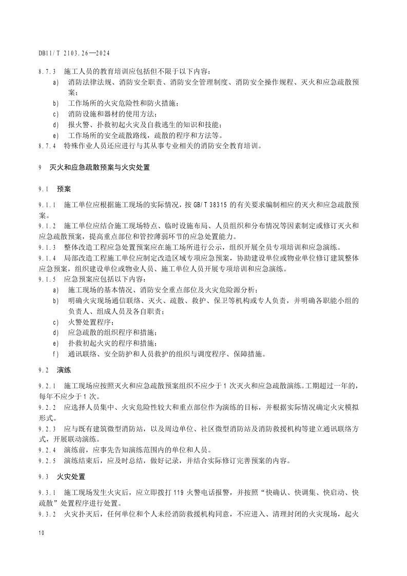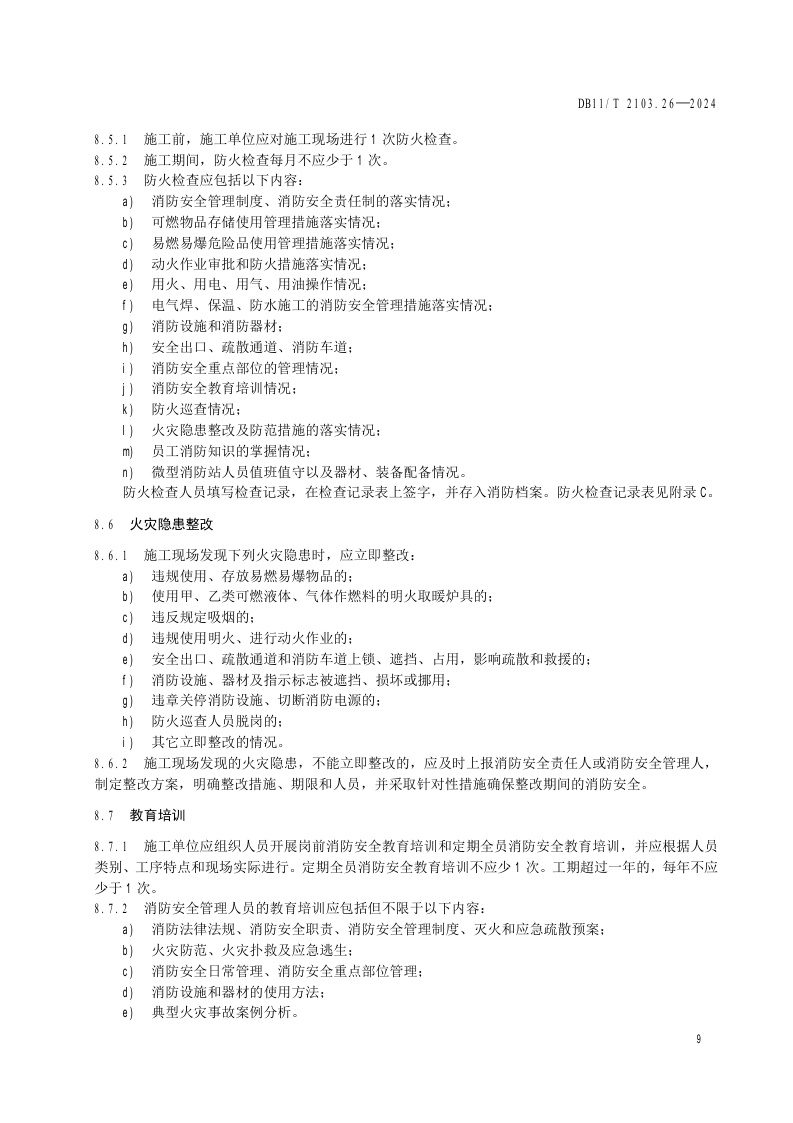 北京市《社会单位和重点场所消防安全管理规范 第26部分:既有公共建筑改造工程施工现场》(DB11/T 2103.26-2024)