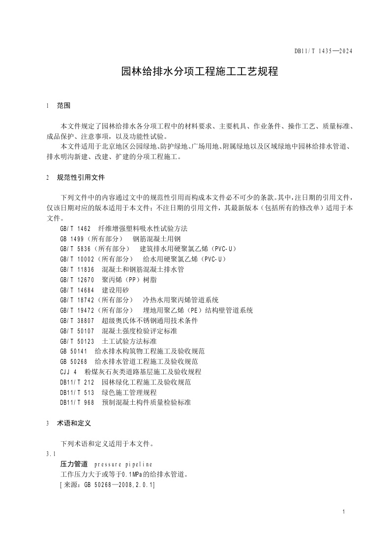 北京市《园林给排水分项工程施工工艺规程》(DB11/T 1435-2024)
