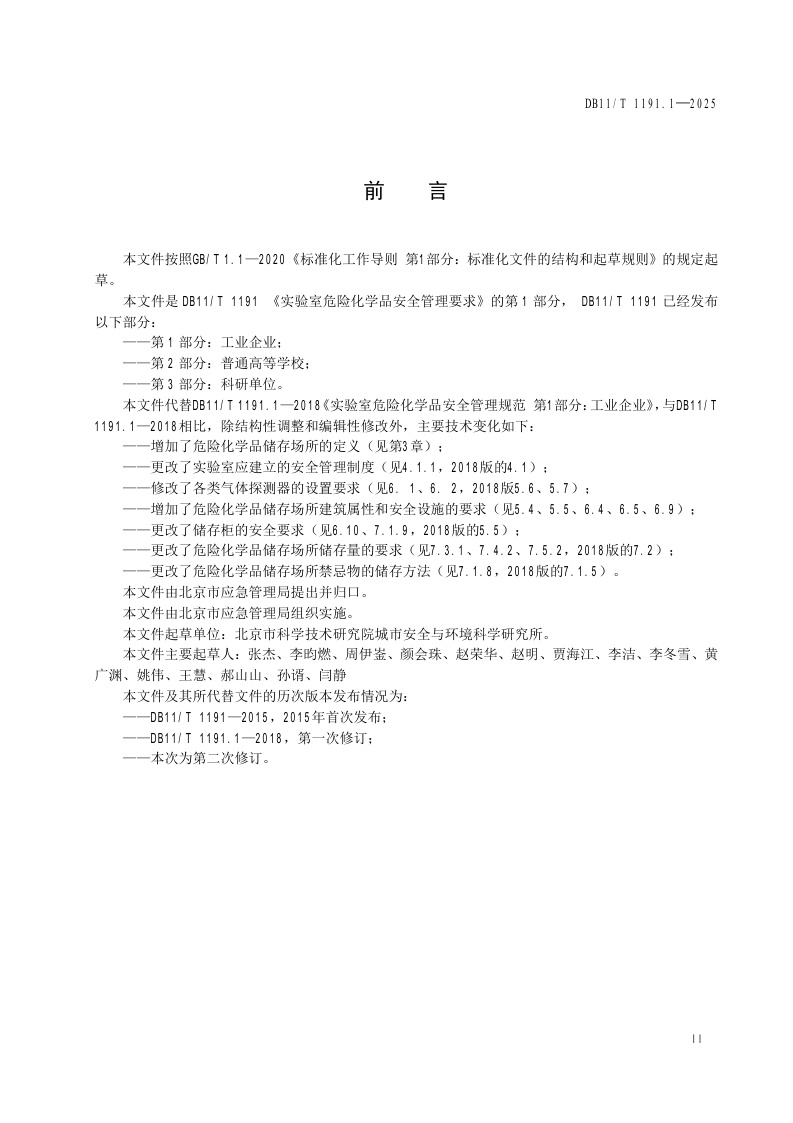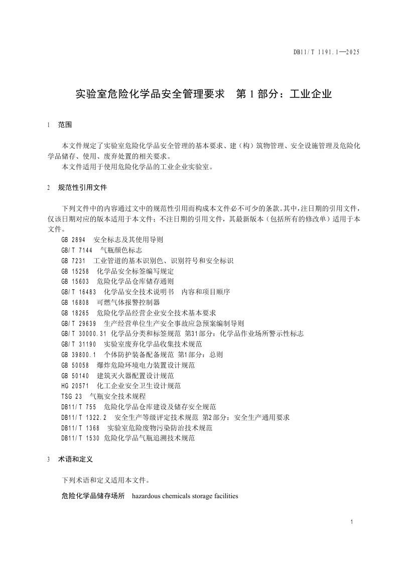 北京市《实验室危险化学品安全管理要求 第1部分:工业企业》(DB11/T 1191.1-2025)