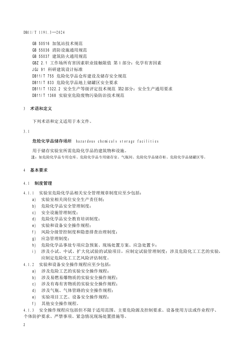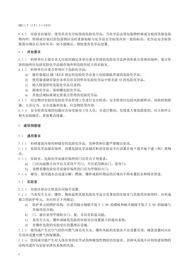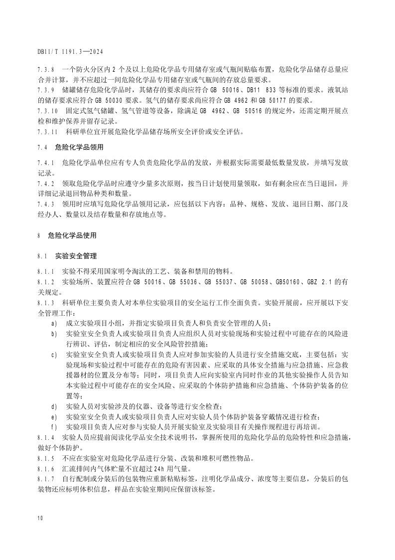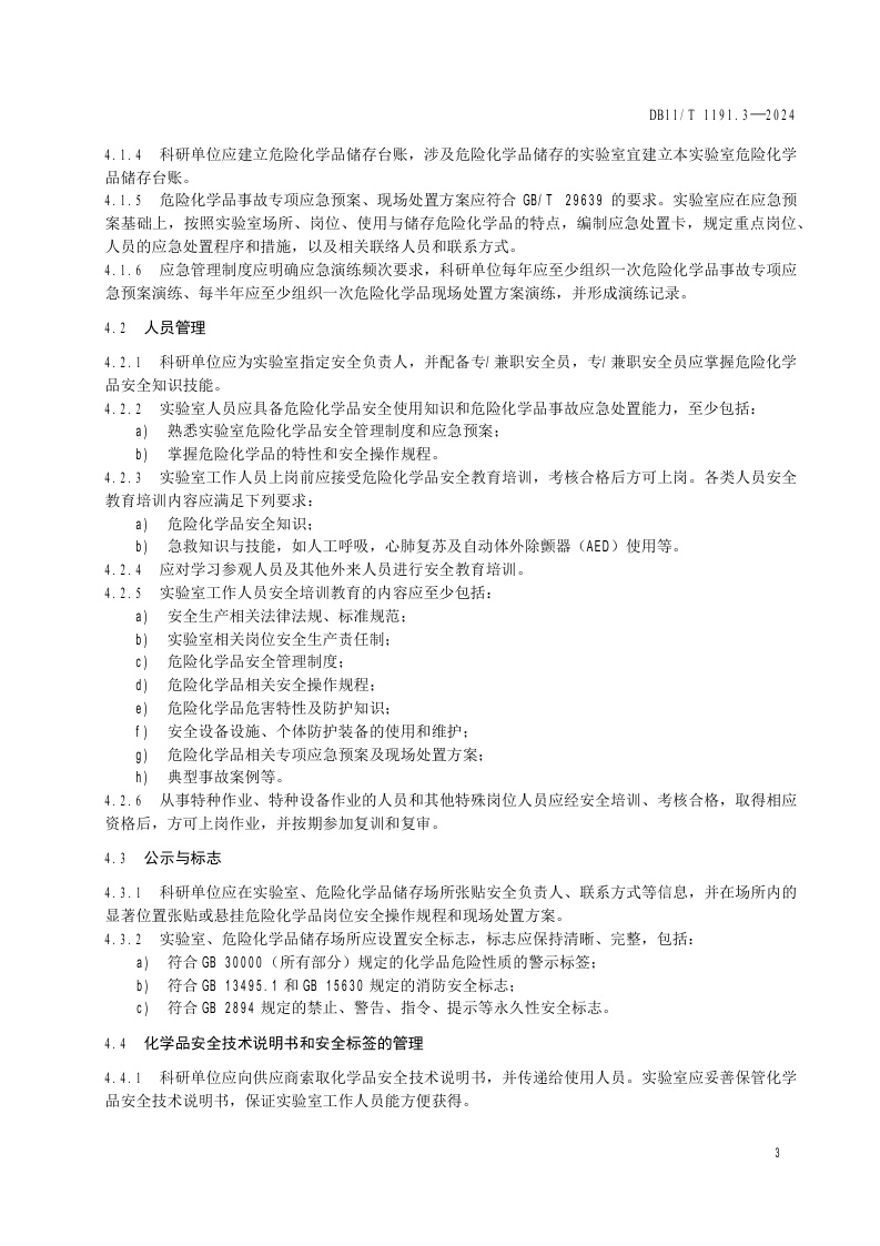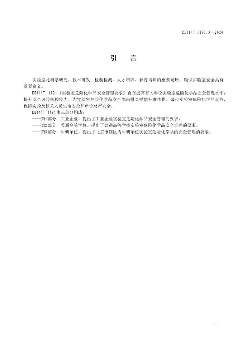 北京市《实验室危险化学品安全管理要求 第3部分:科研单位》(DB11/T 1191.3-2024)