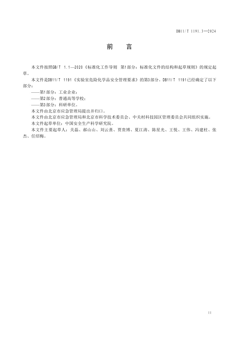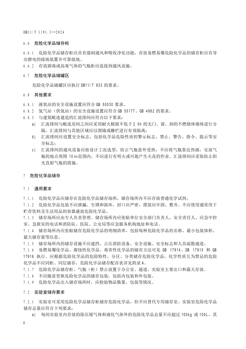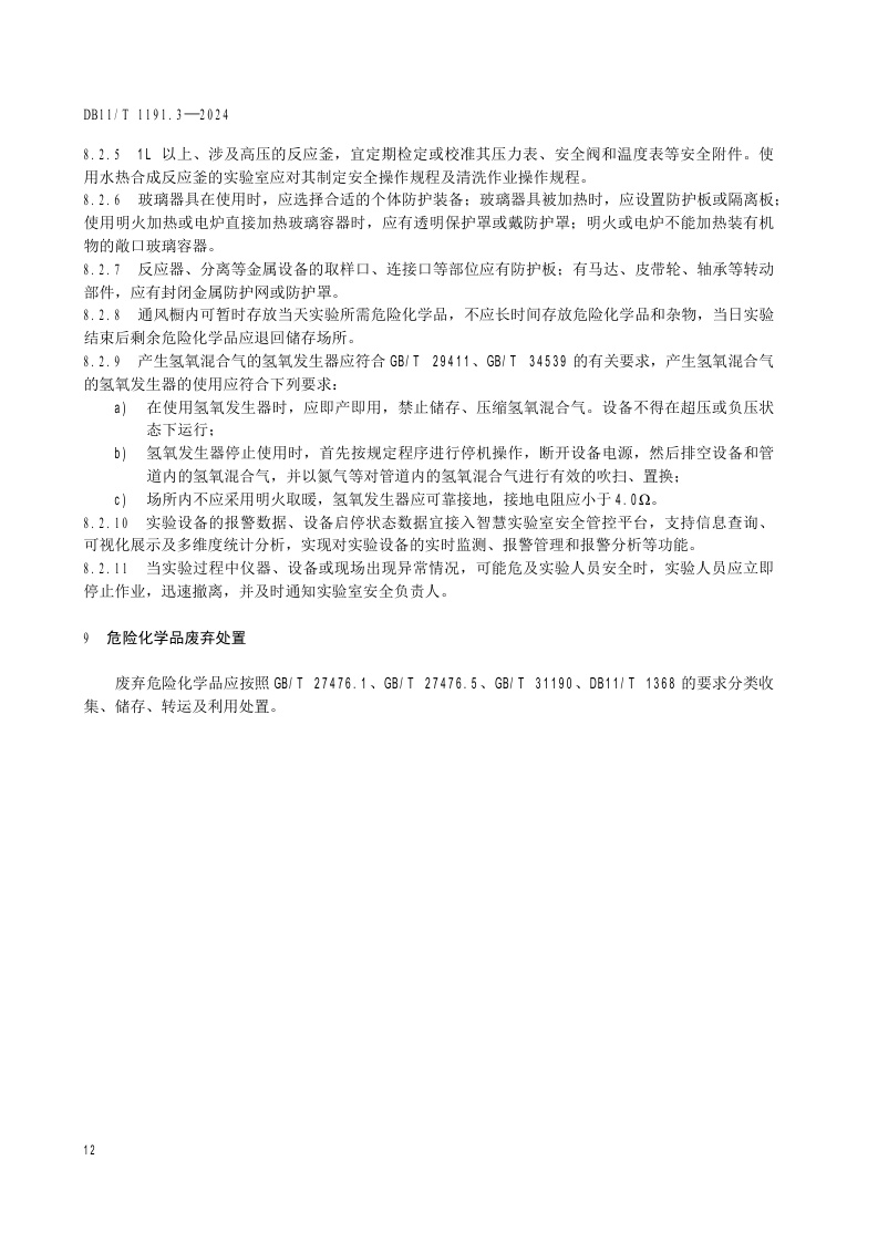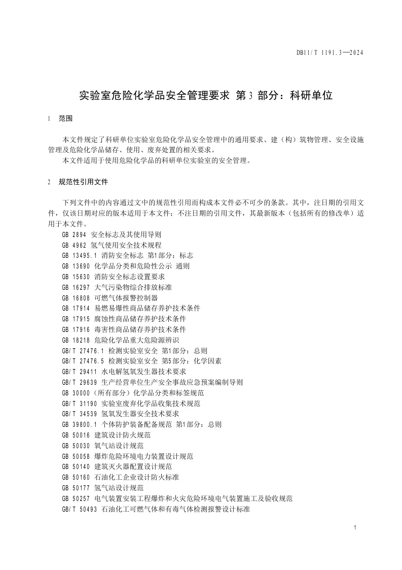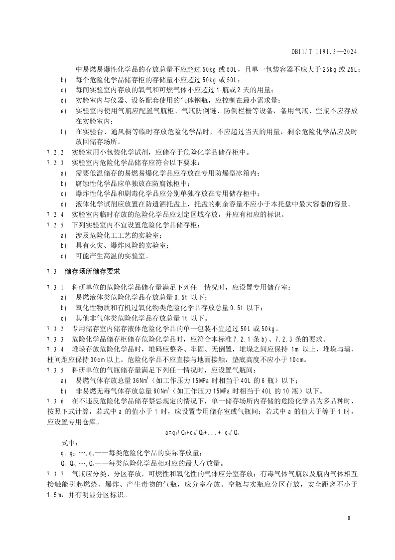 北京市《实验室危险化学品安全管理要求 第3部分:科研单位》(DB11/T 1191.3-2024)