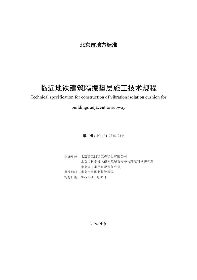 北京市《临近地铁建筑隔振垫层施工技术规程》(DB11/T 2336-2024)