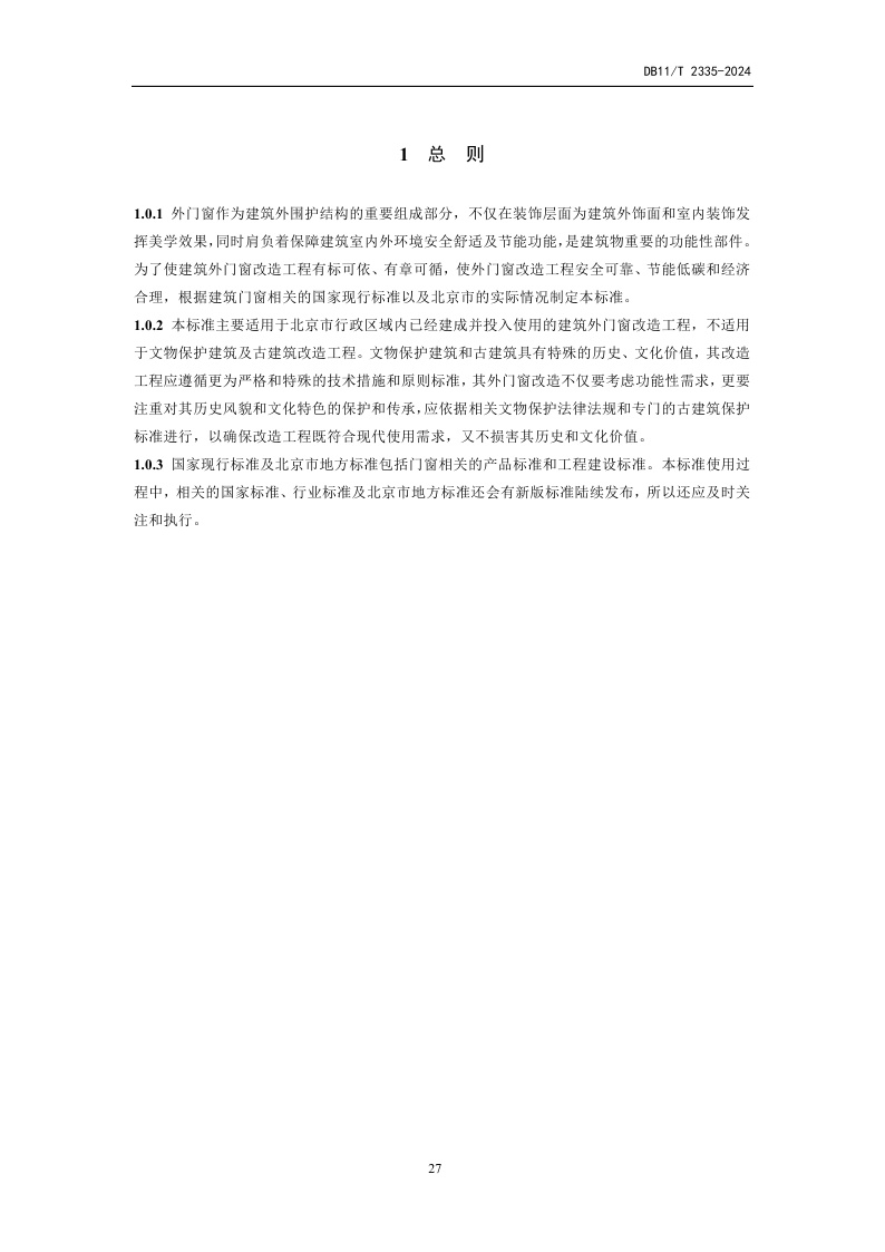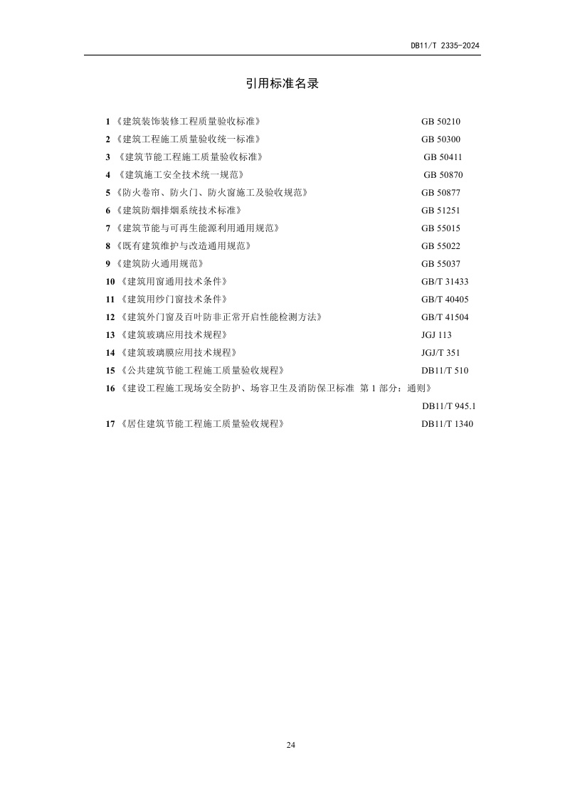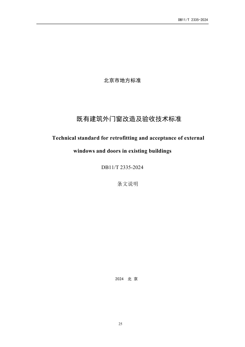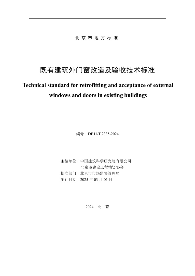 北京市《既有建筑外门窗改造及验收技术标准》(DB11/T 2335-2024)