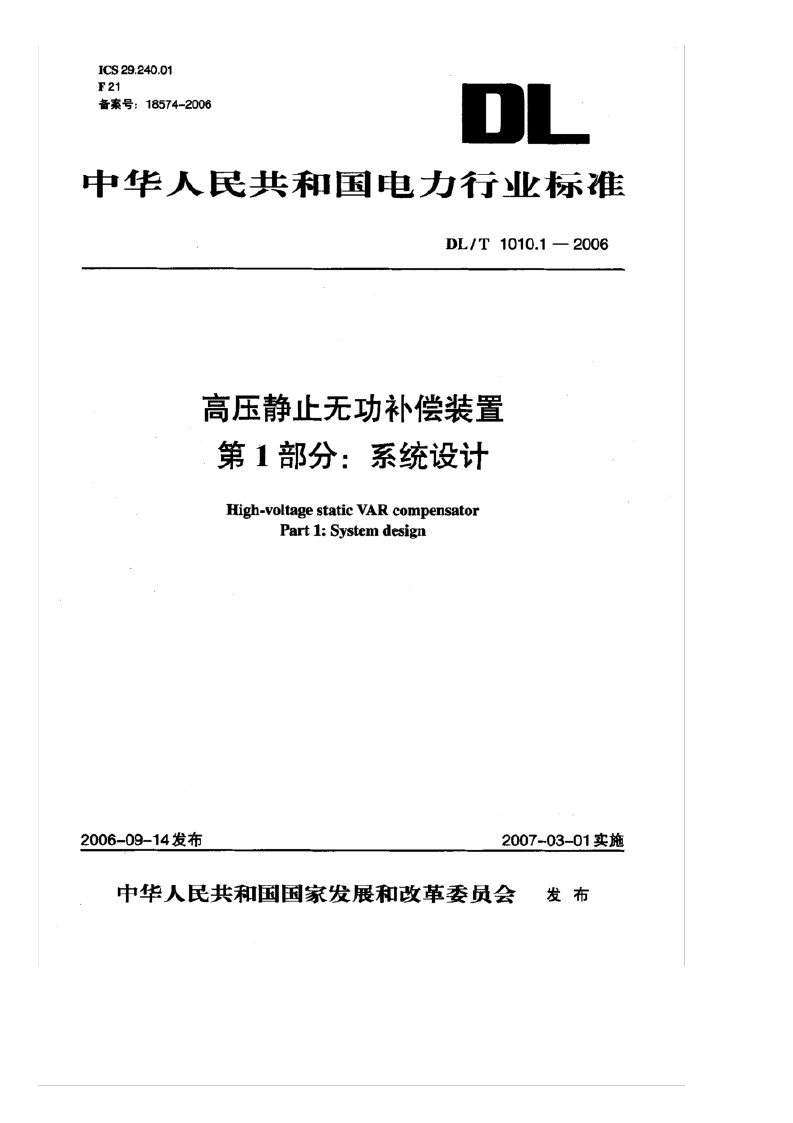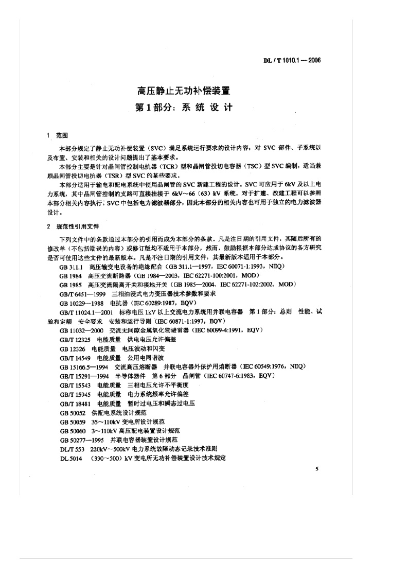 《高压静止无功补偿装置_第1部分:系统设计》(DL/T1010.1-2006)