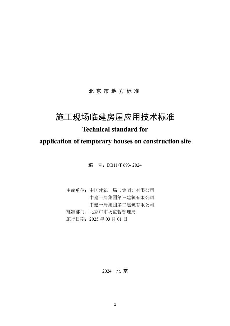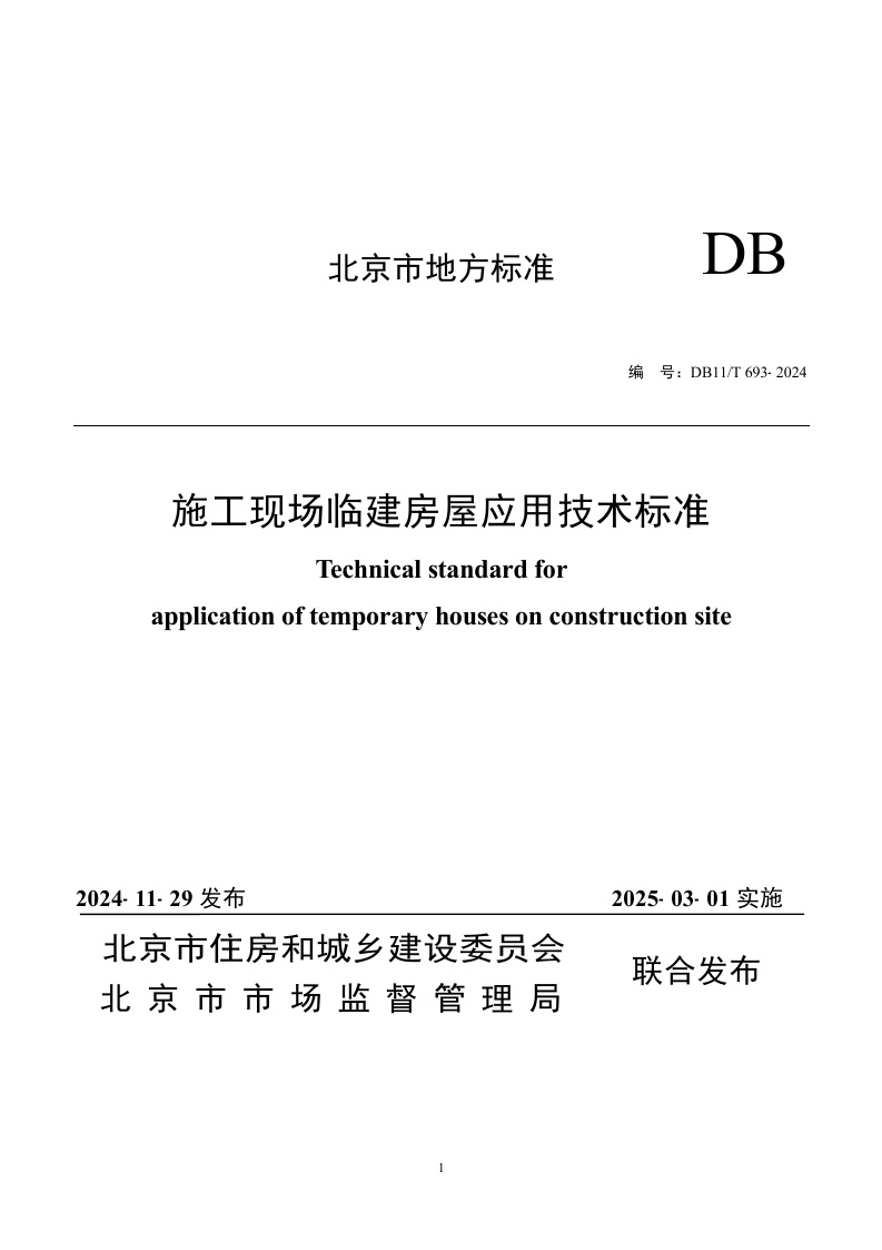 北京市《施工现场临建房屋应用技术标准》(DB11/T 693-2024)