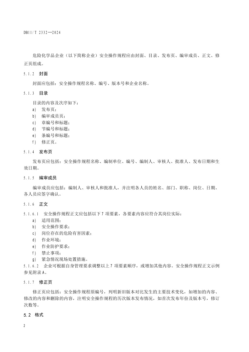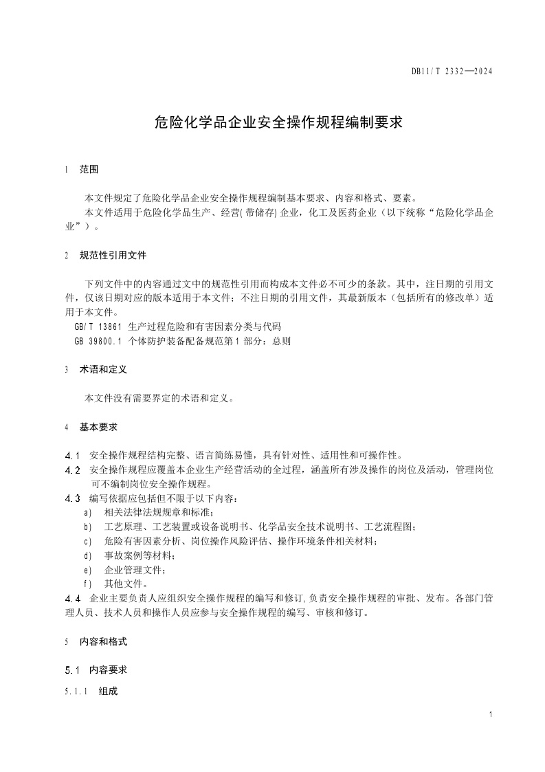 北京市《危险化学品企业安全操作规程编制要求》(DB11/T 2332-2024)