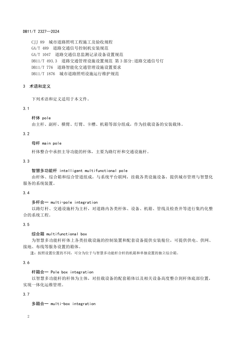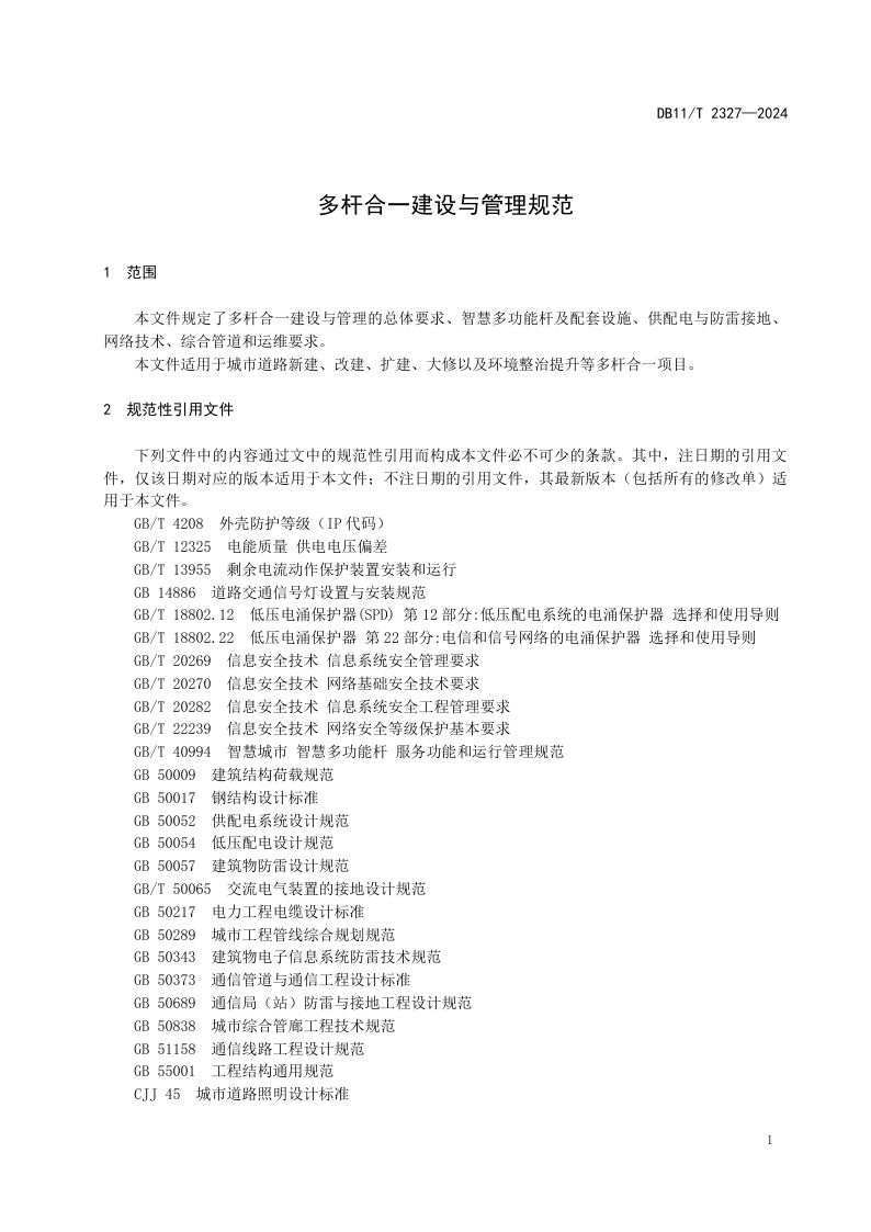 北京市《多杆合一建设与管理规范》(DB11/T 2327-2024)