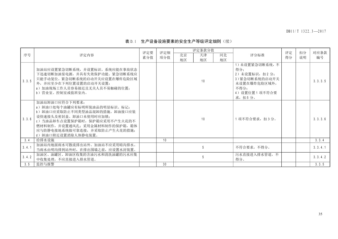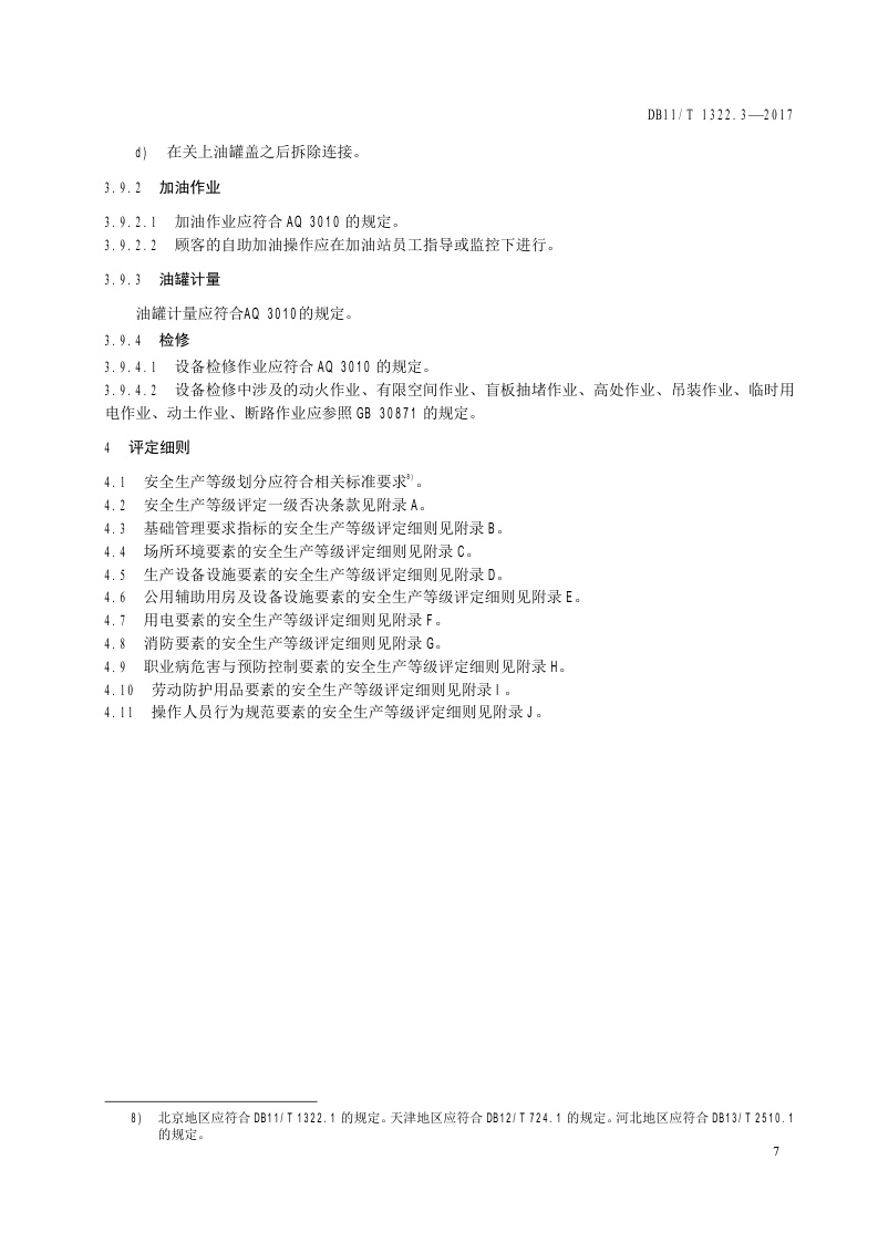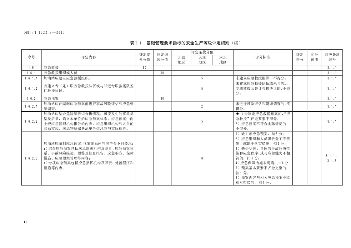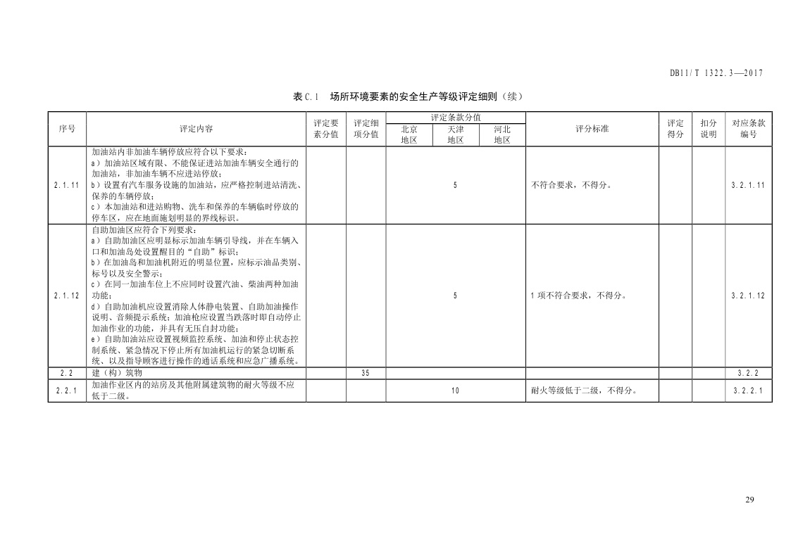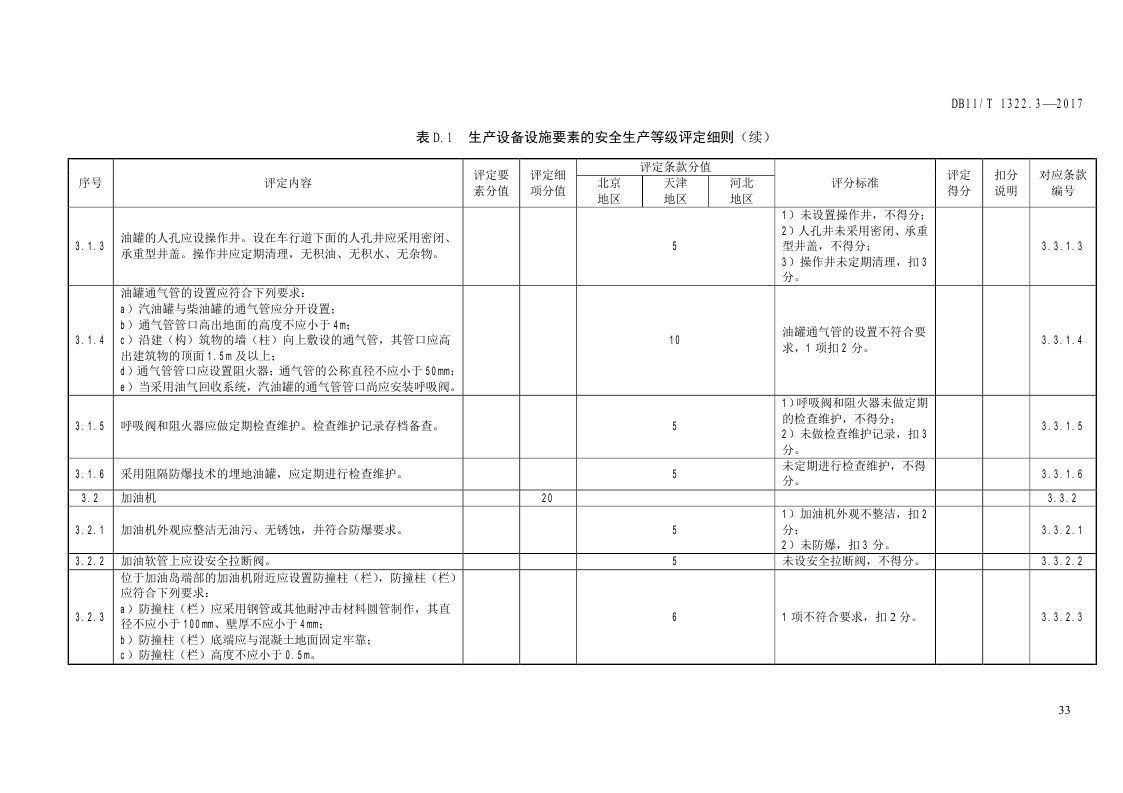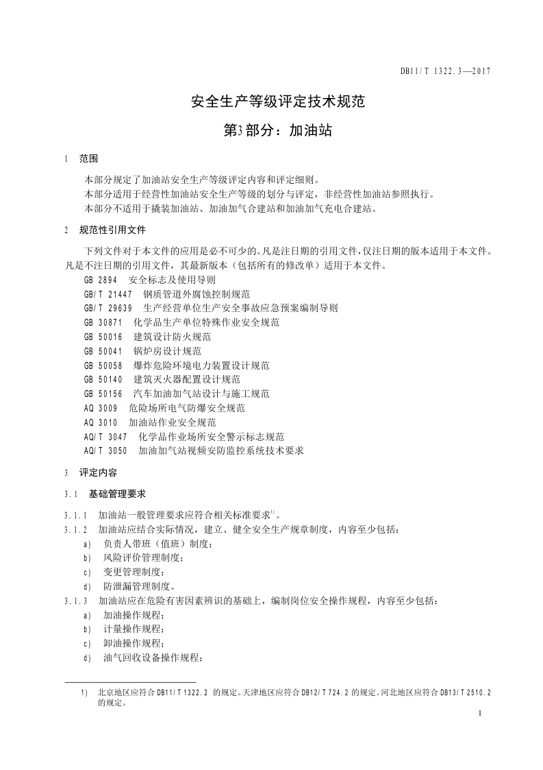 北京市《安全生产等级评定技术规范 第3部分:加油站》(DB11/T 1322.3-2017)