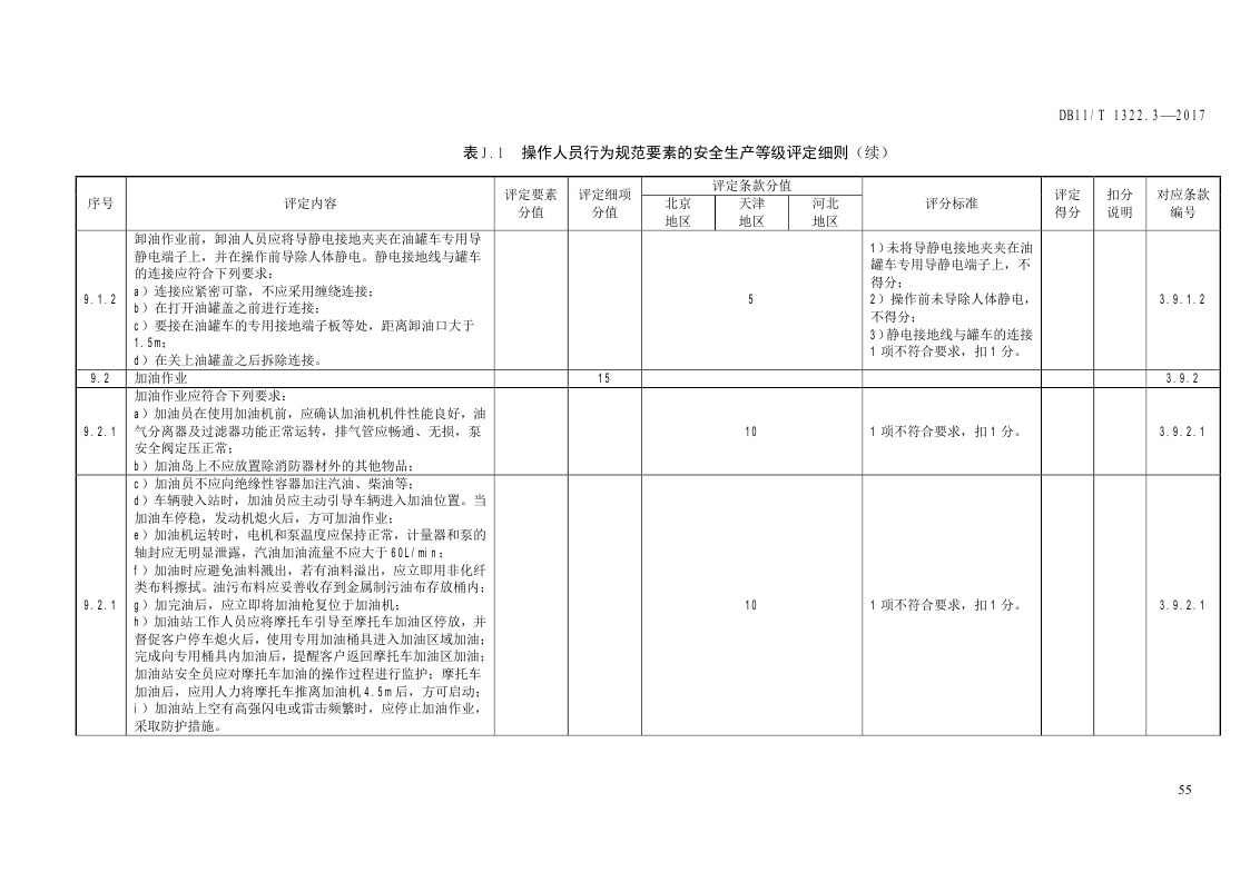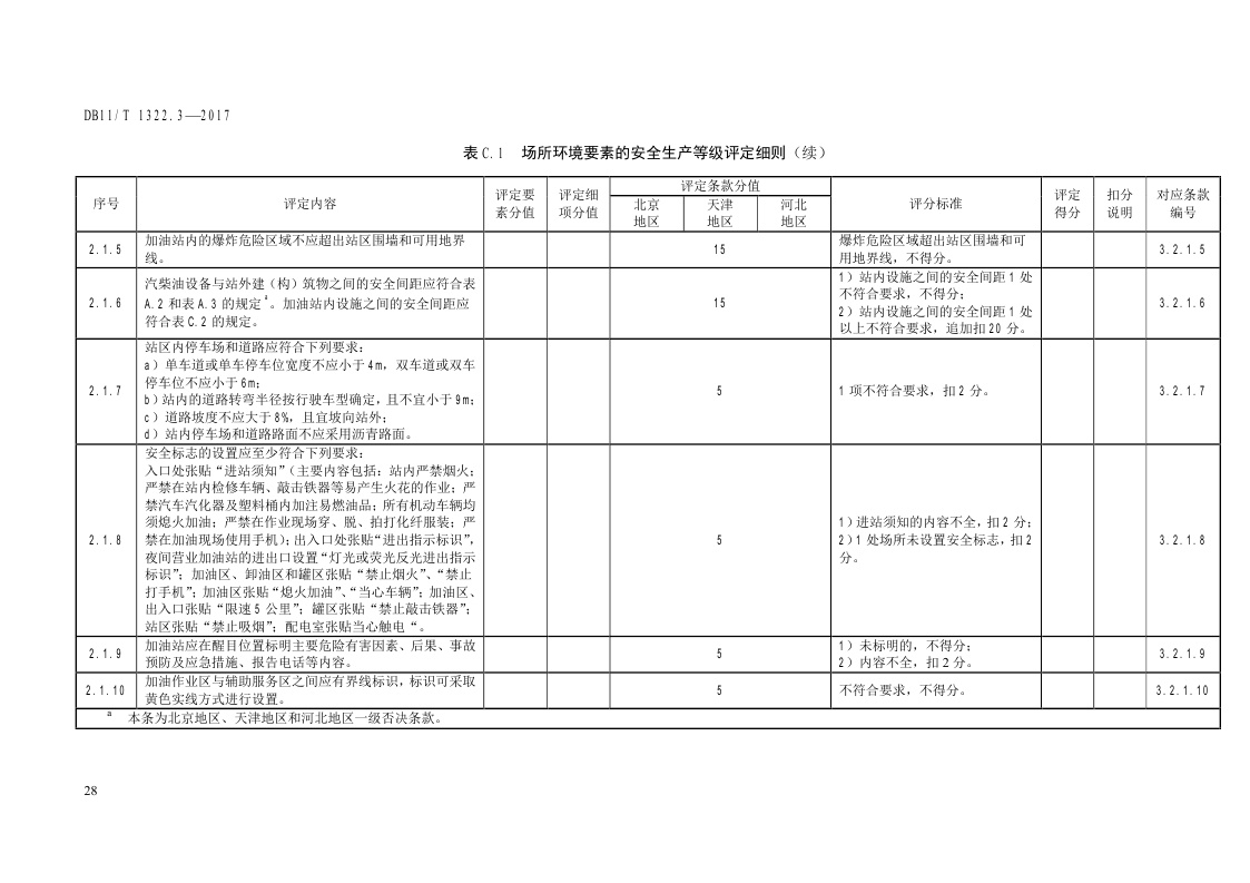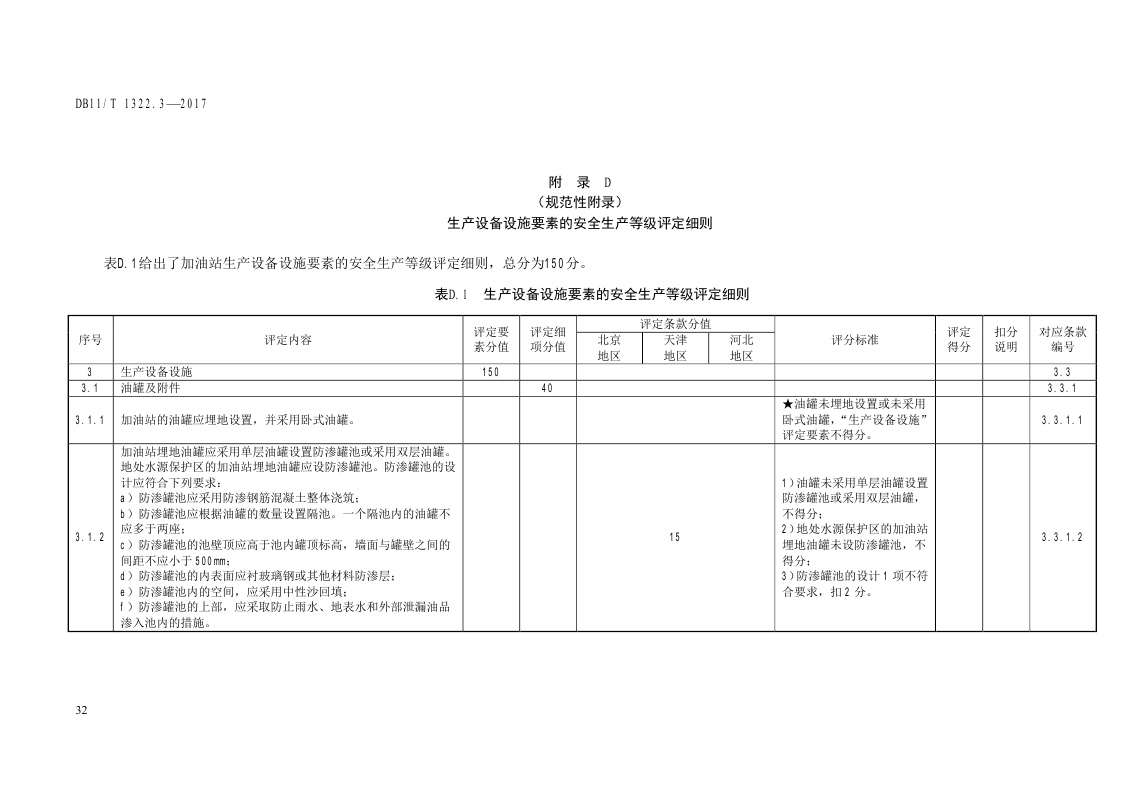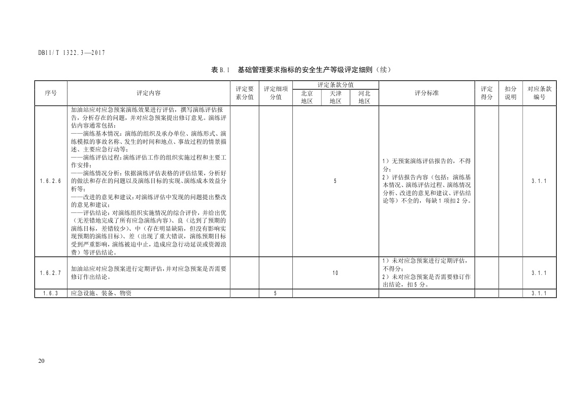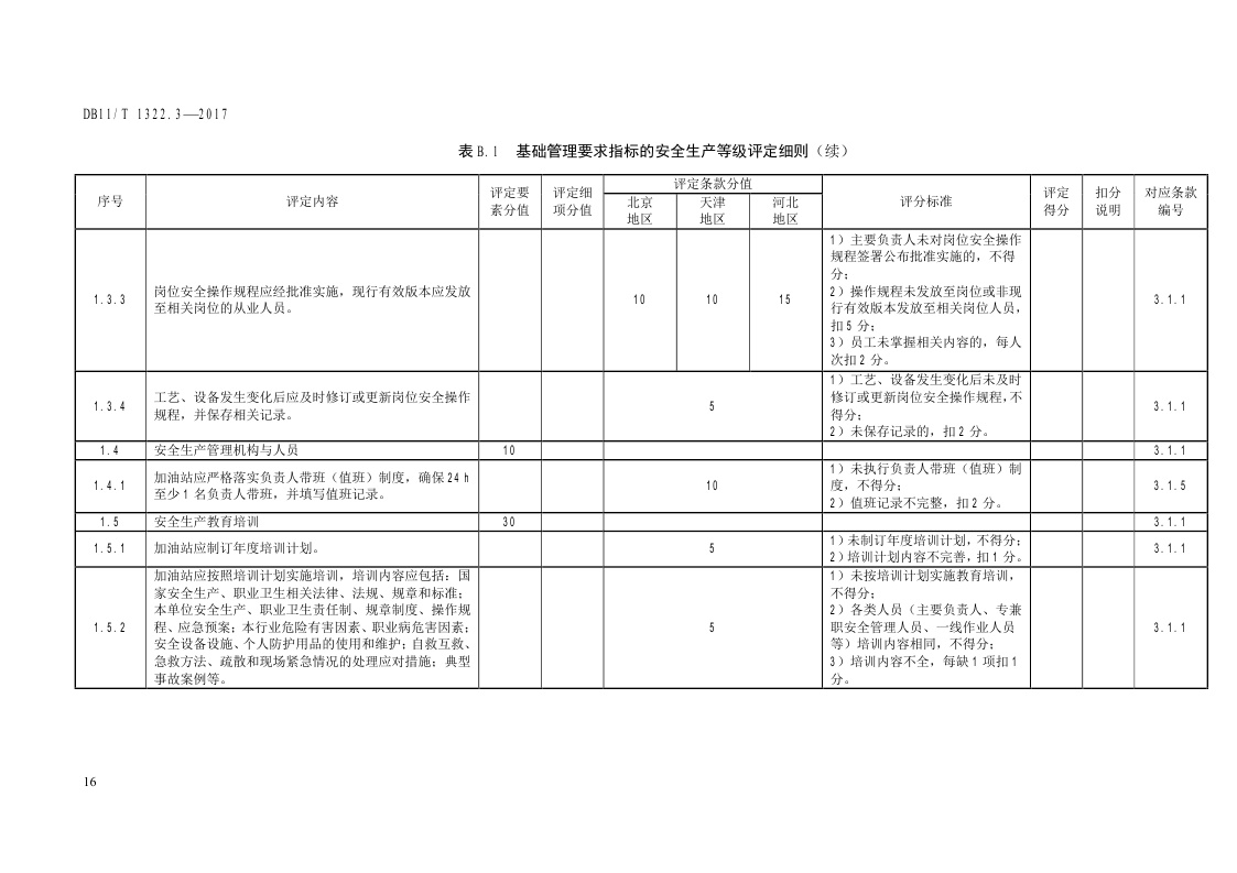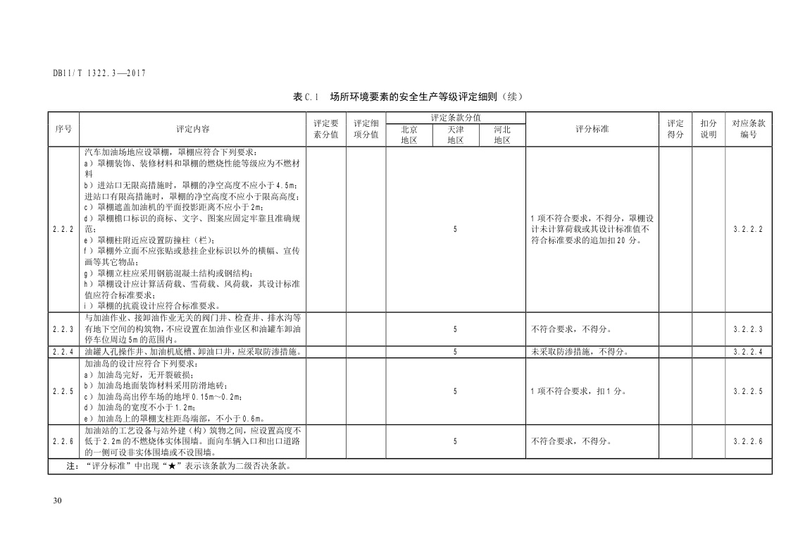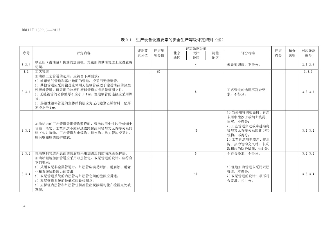 北京市《安全生产等级评定技术规范 第3部分:加油站》(DB11/T 1322.3-2017)