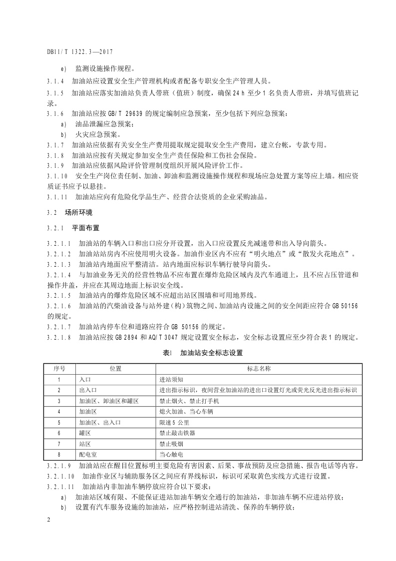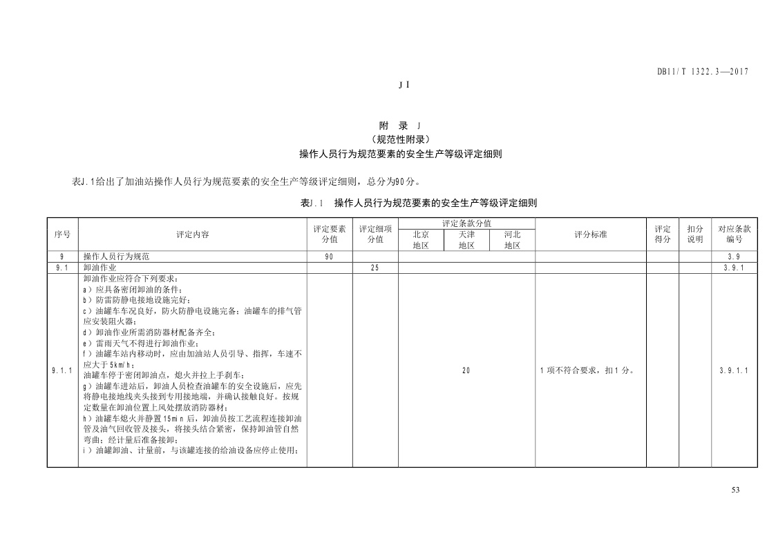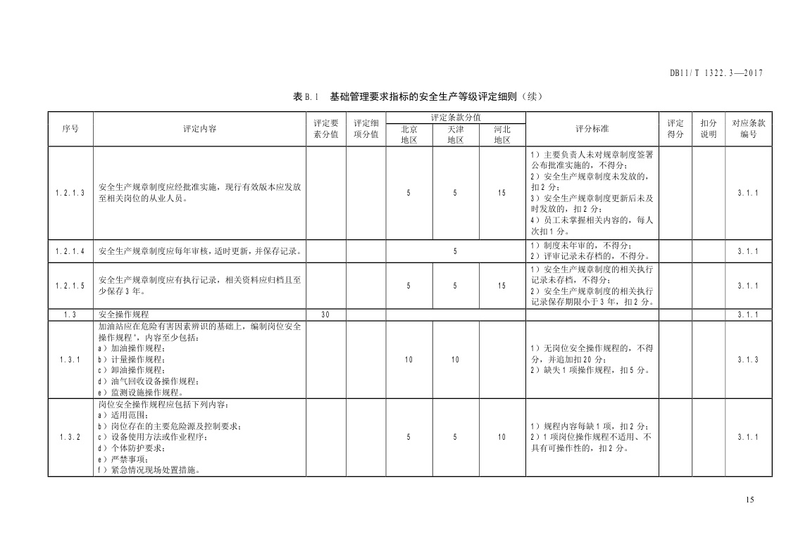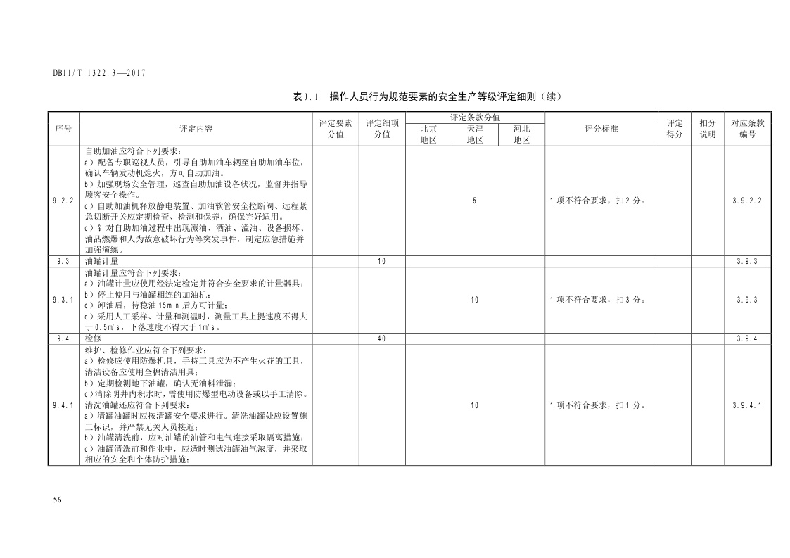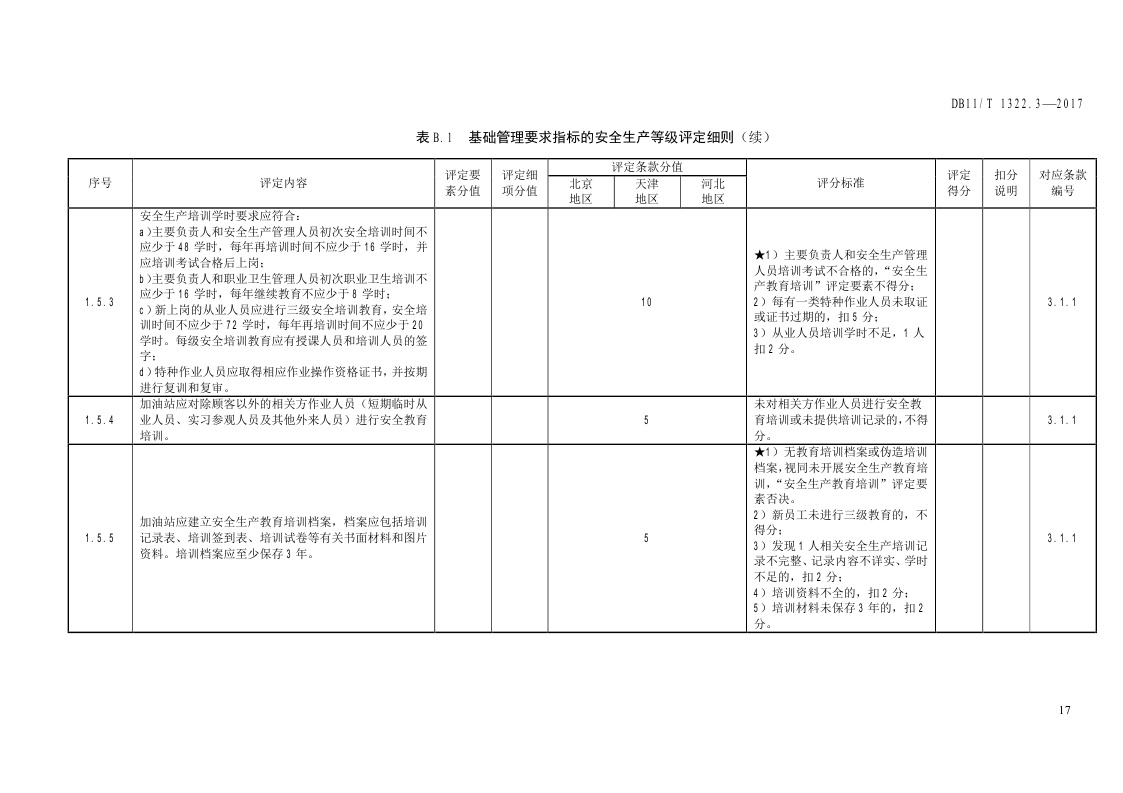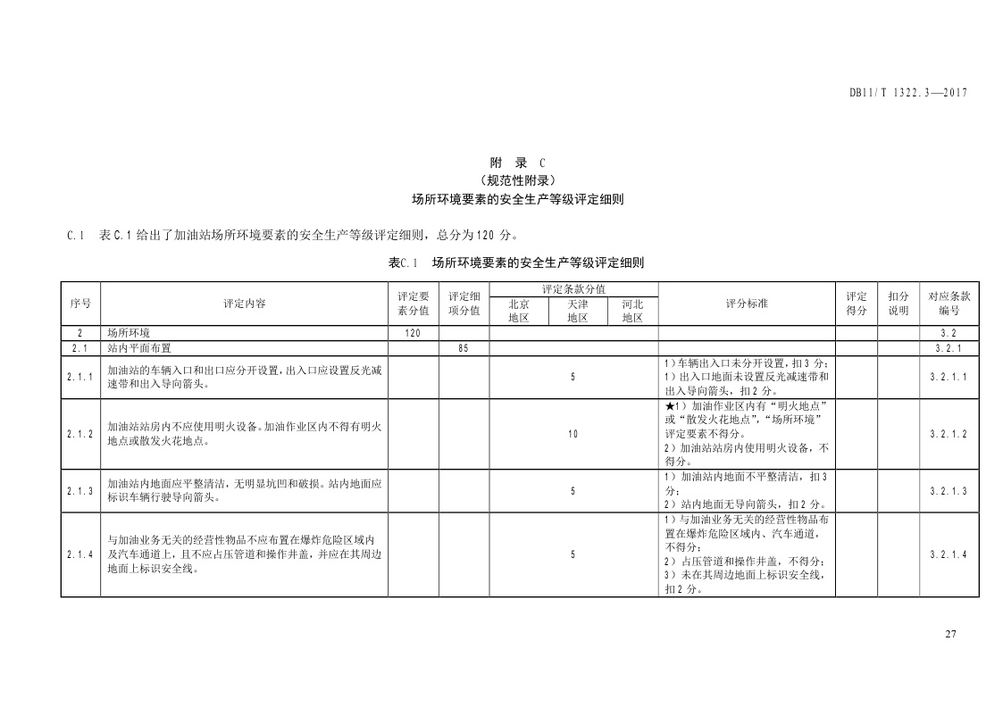北京市《安全生产等级评定技术规范 第3部分:加油站》(DB11/T 1322.3-2017)