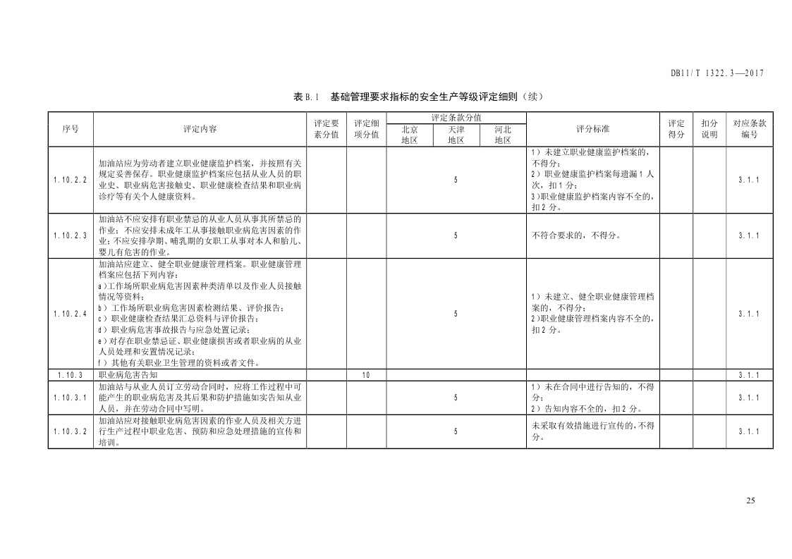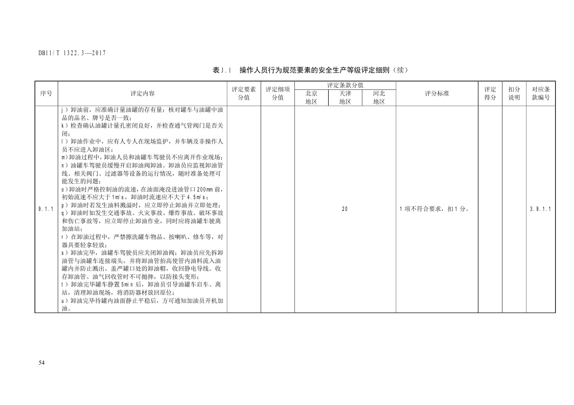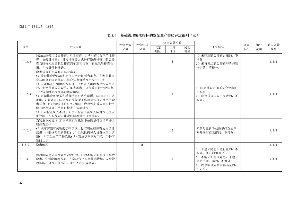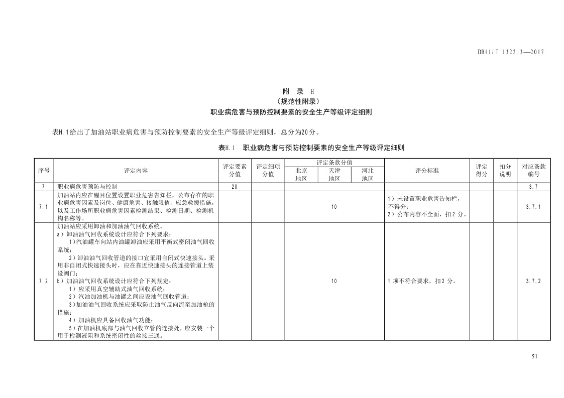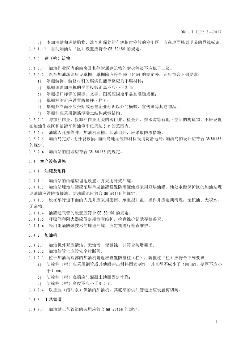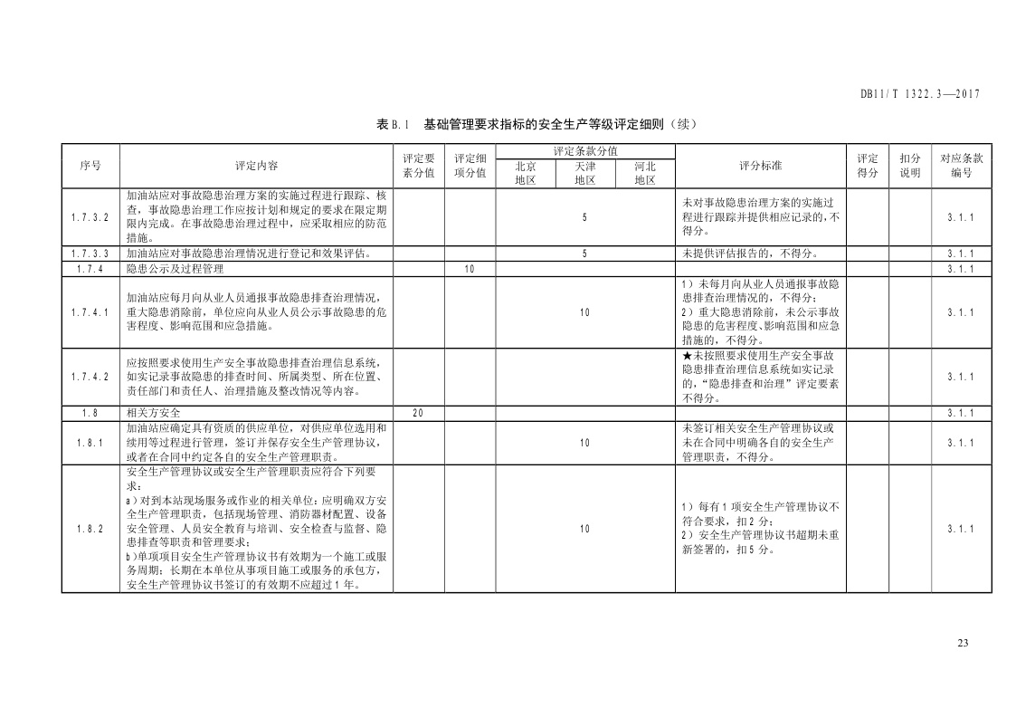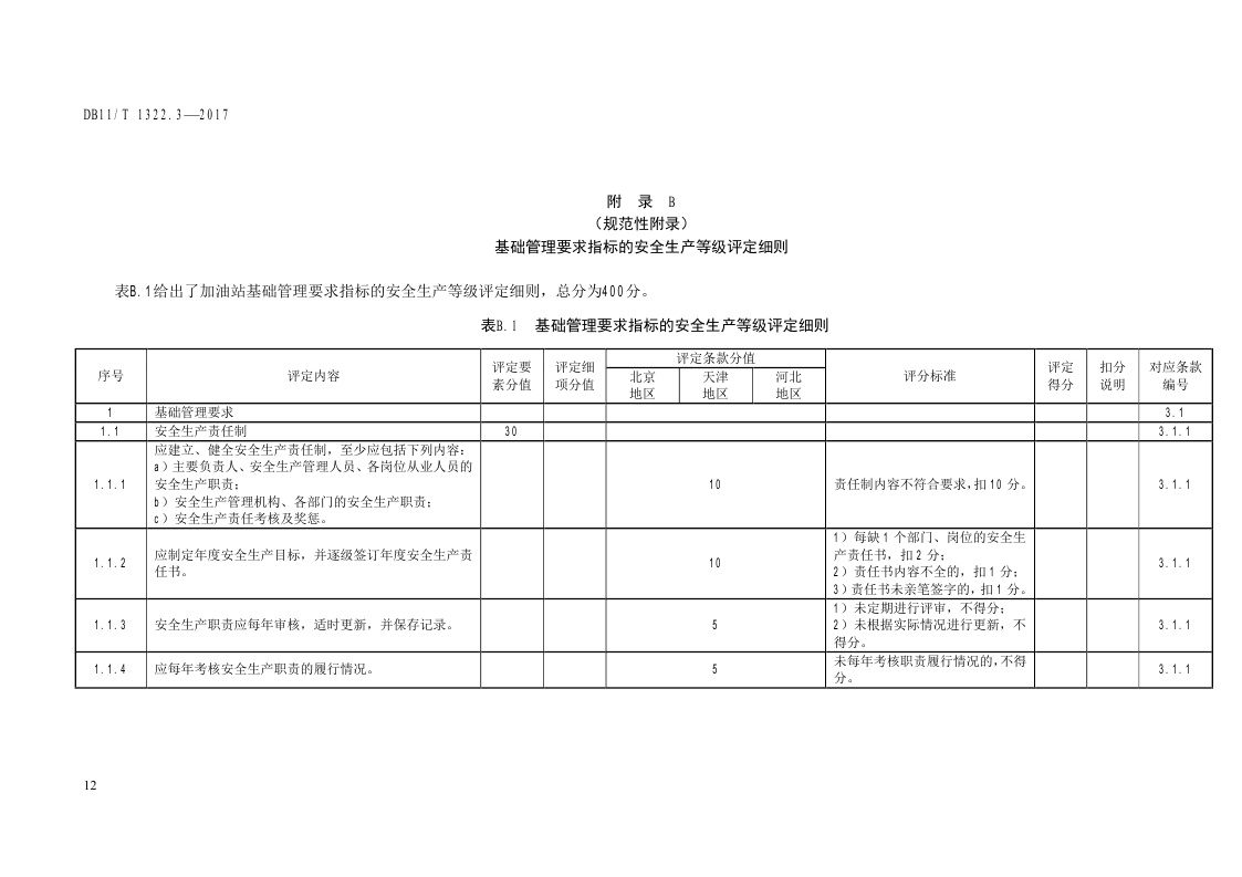 北京市《安全生产等级评定技术规范 第3部分:加油站》(DB11/T 1322.3-2017)