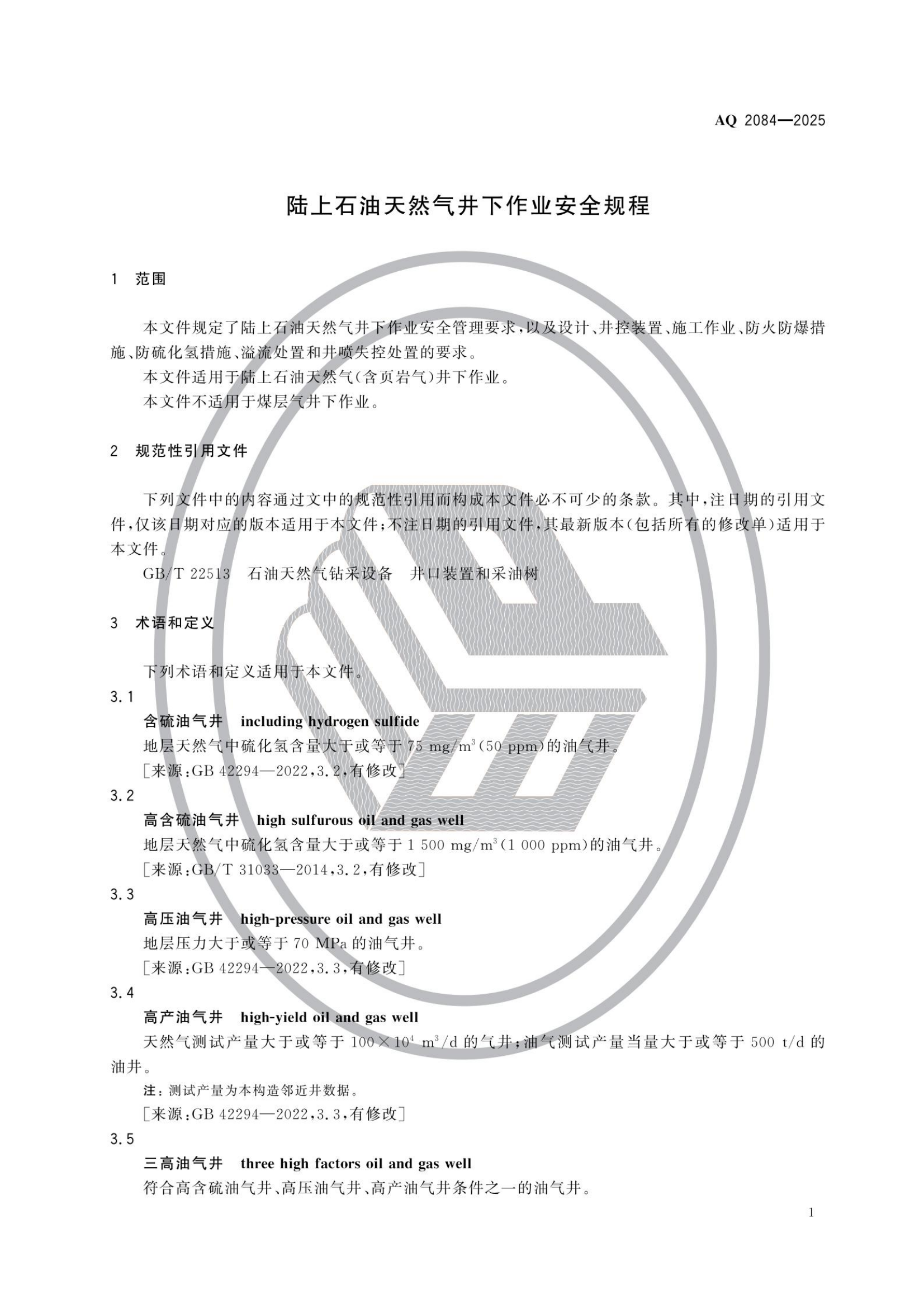 陆上石油天然气井下作业安全规范