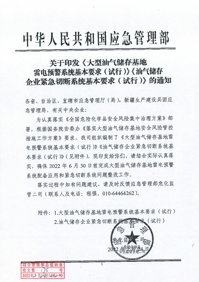 大型油气储存基地雷电预警系统基本要求