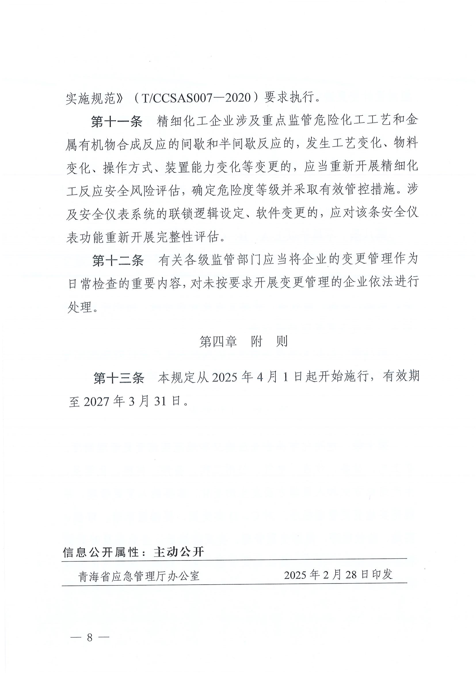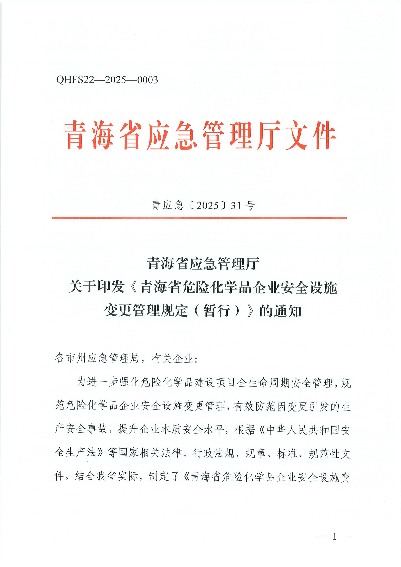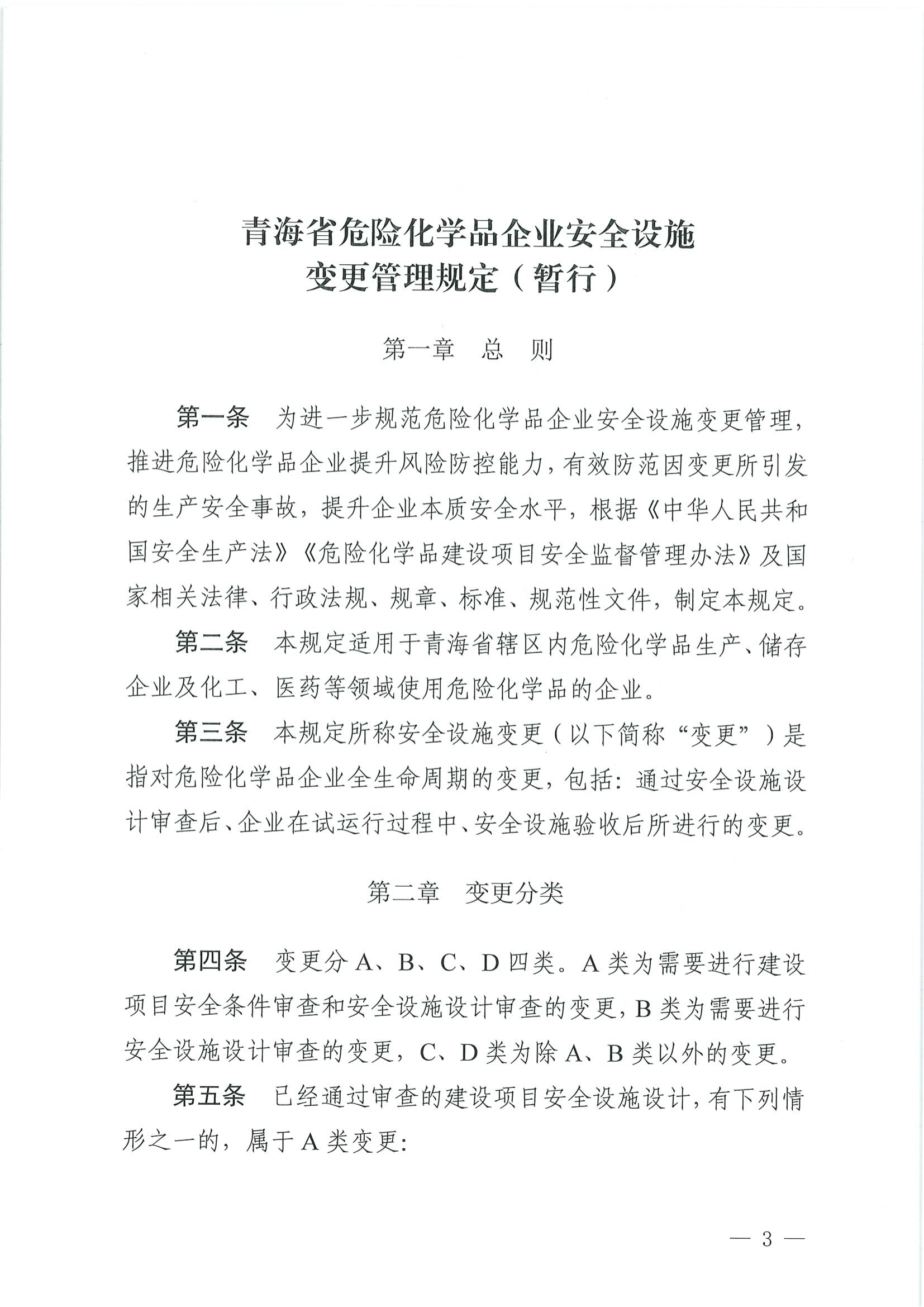 青海省危险化学品企业安全设施变更管理规定
