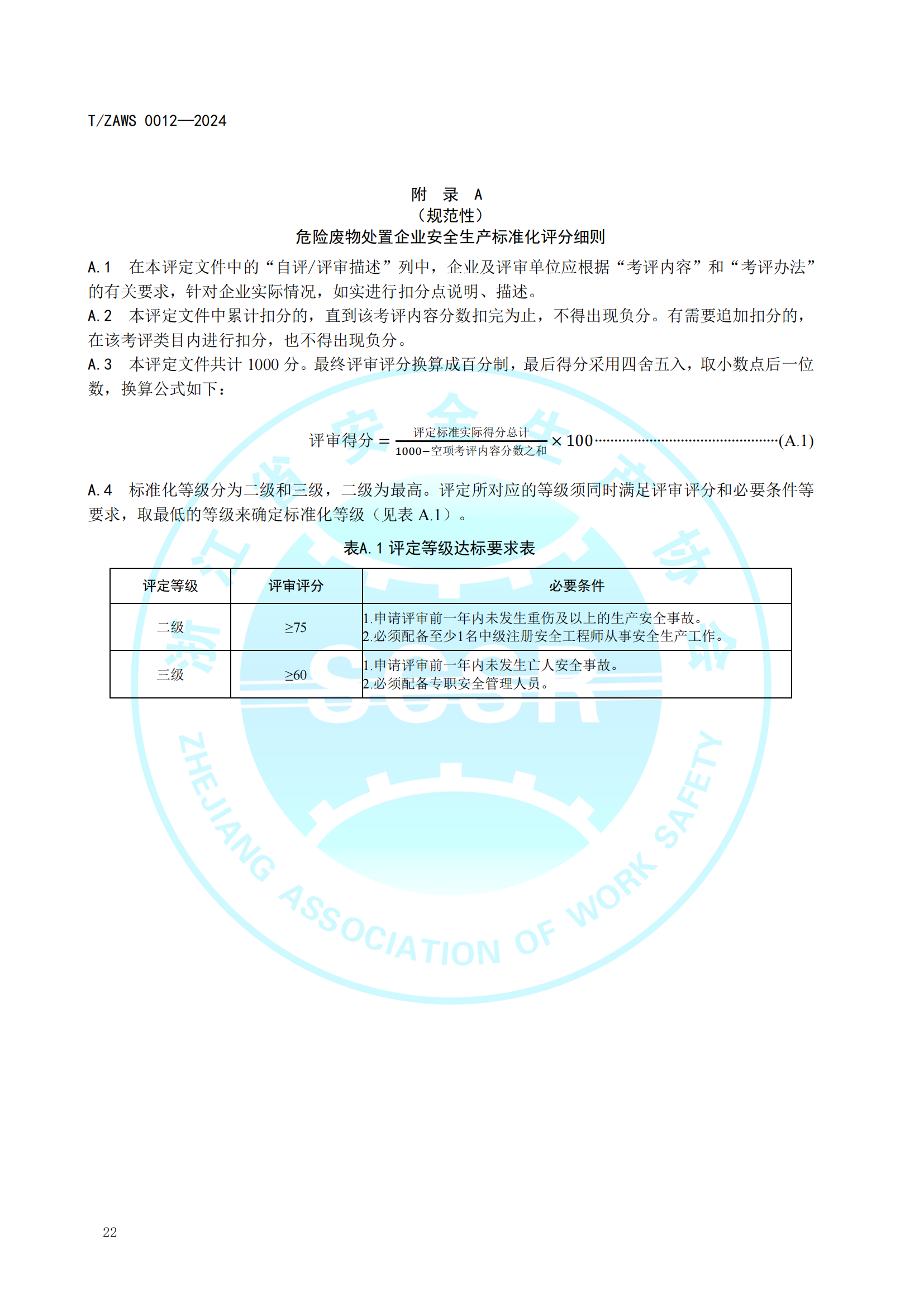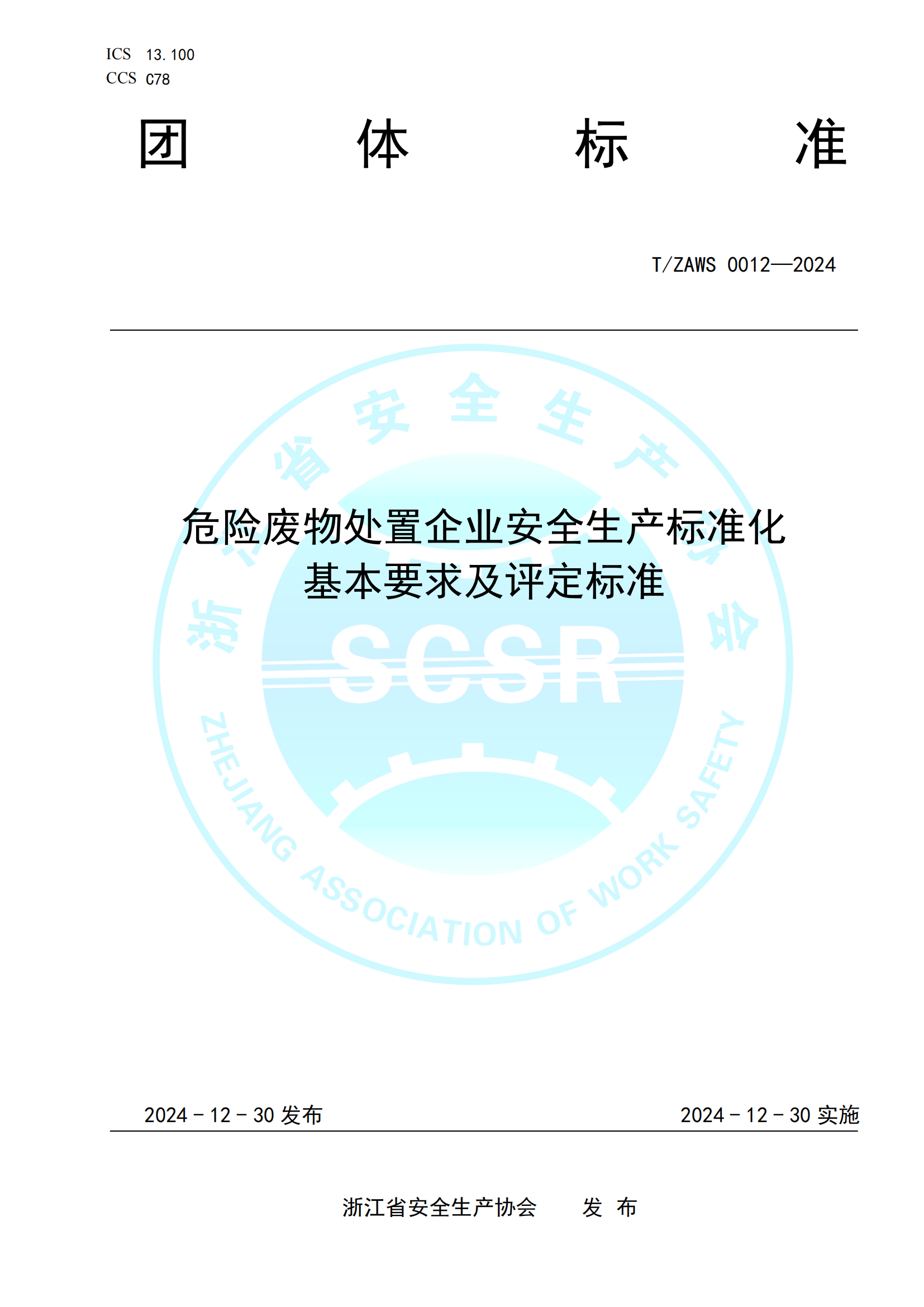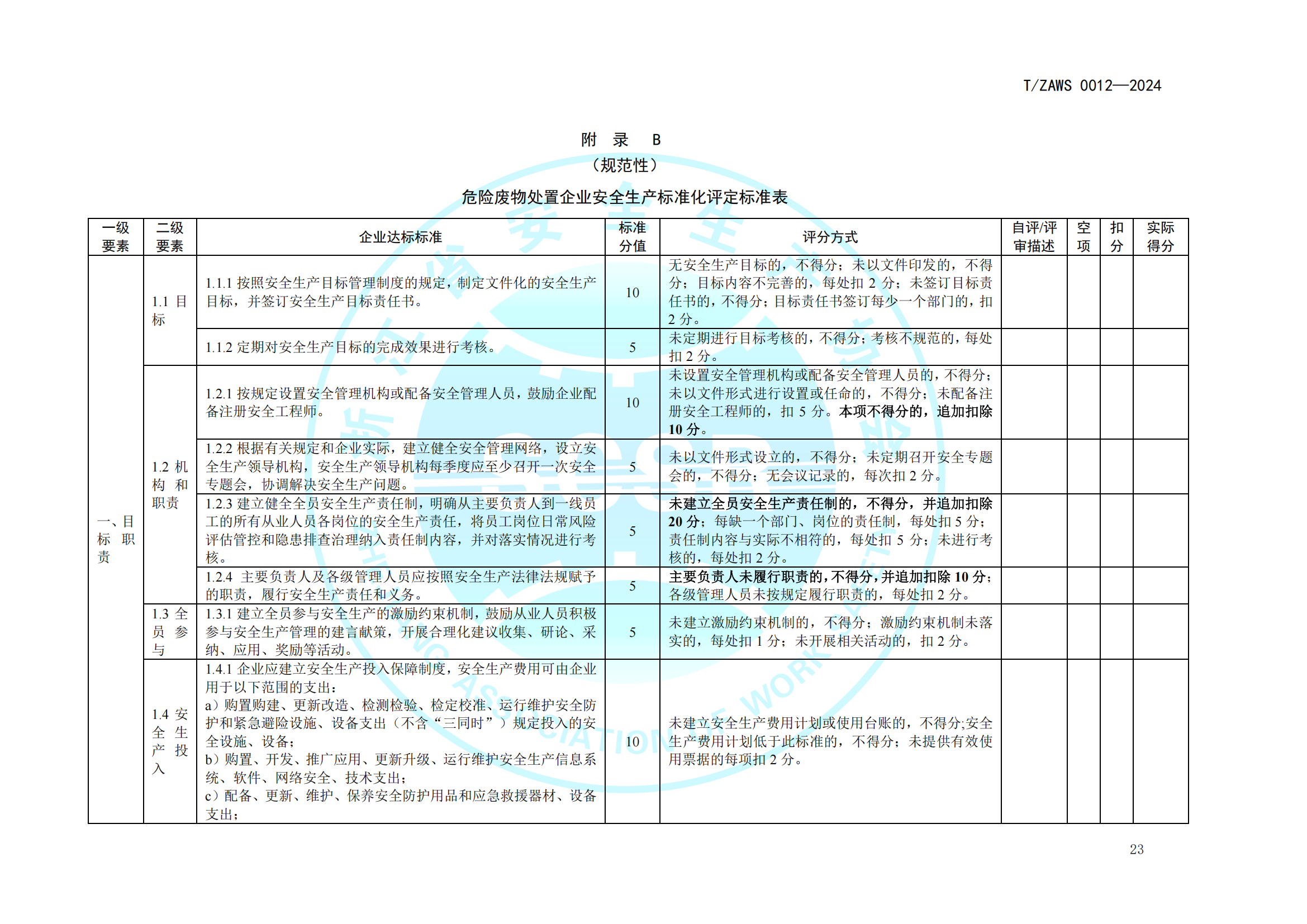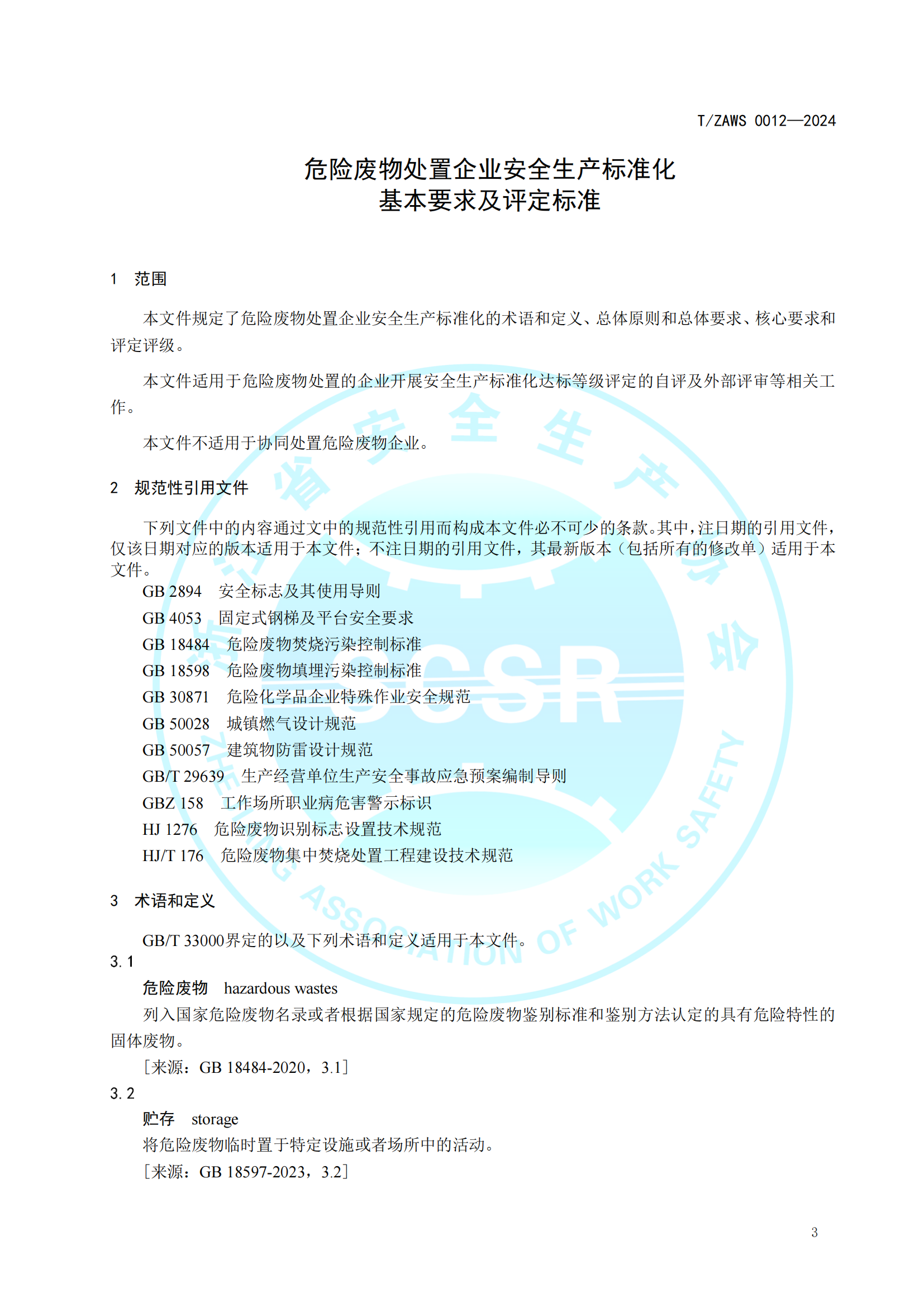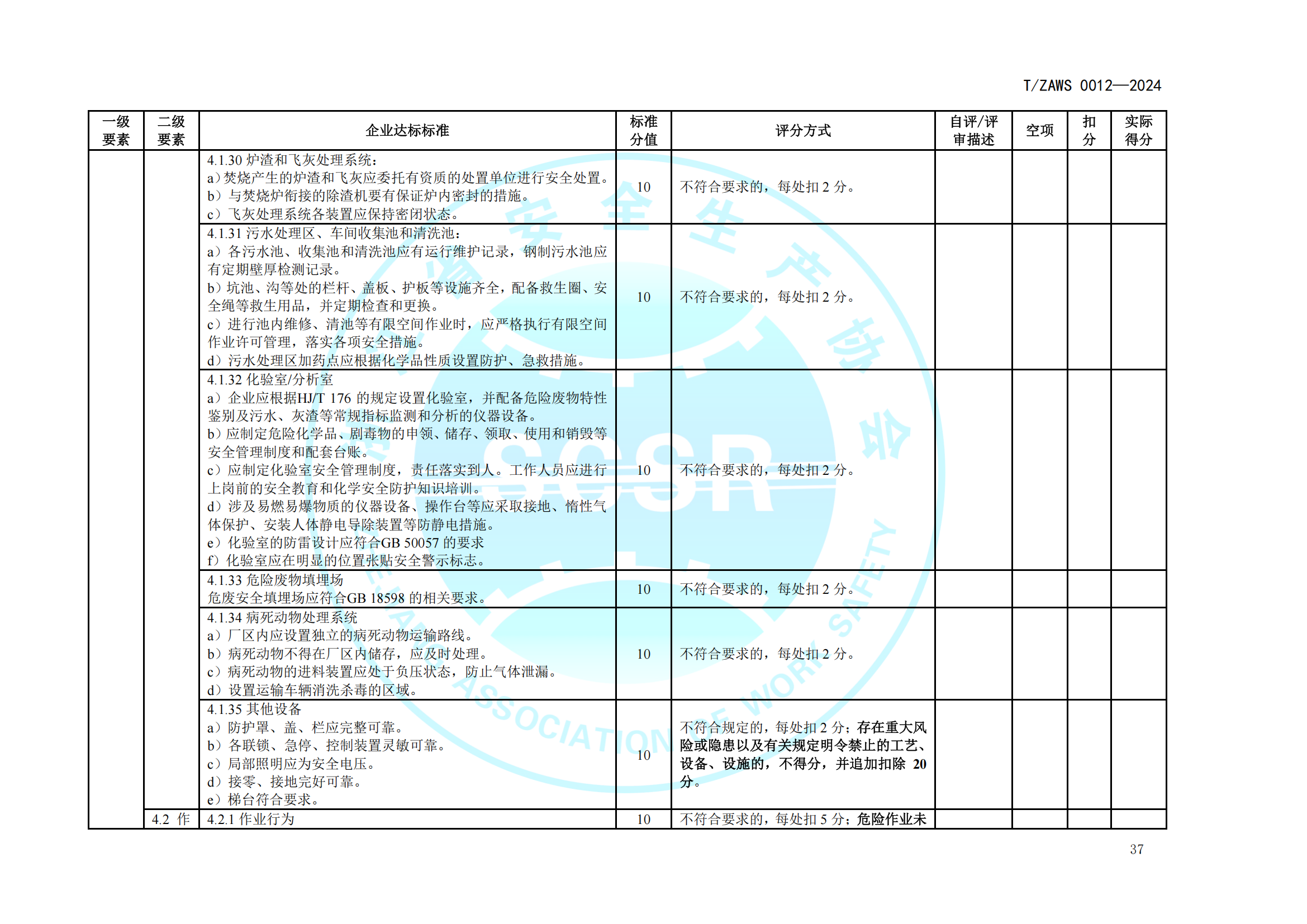 危险废物处置企业安全生产标准化基本要求及评定标准