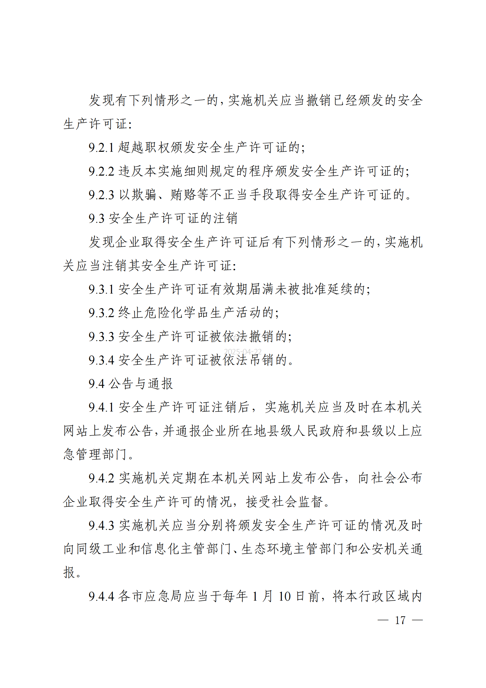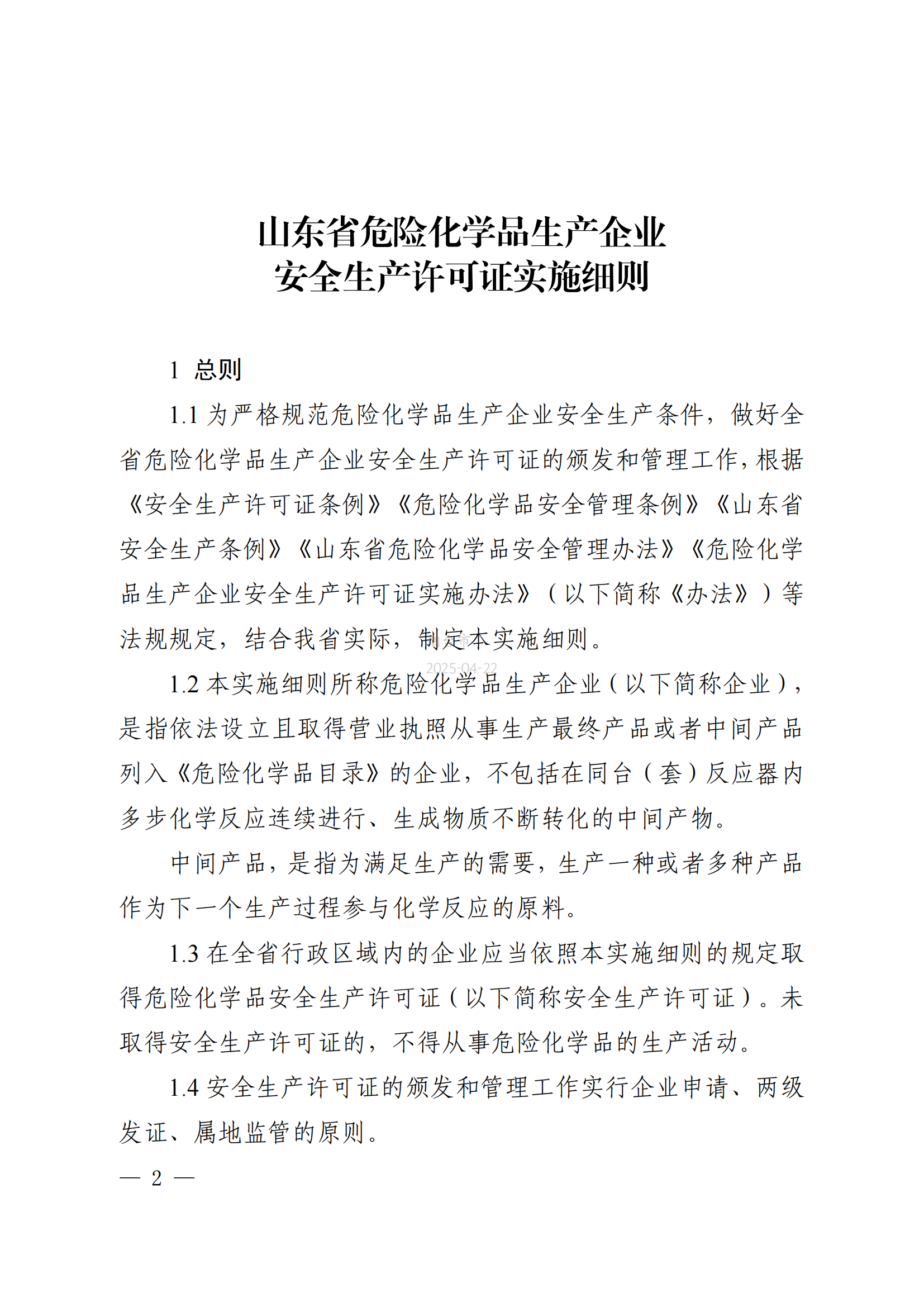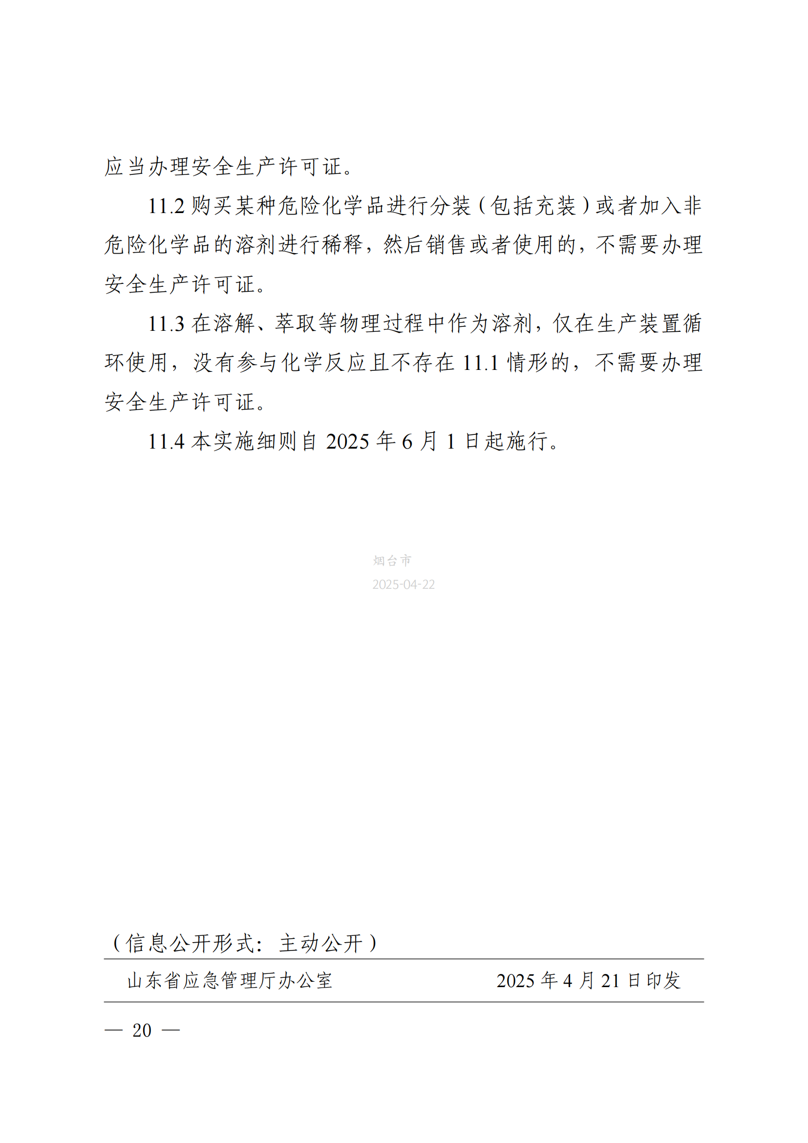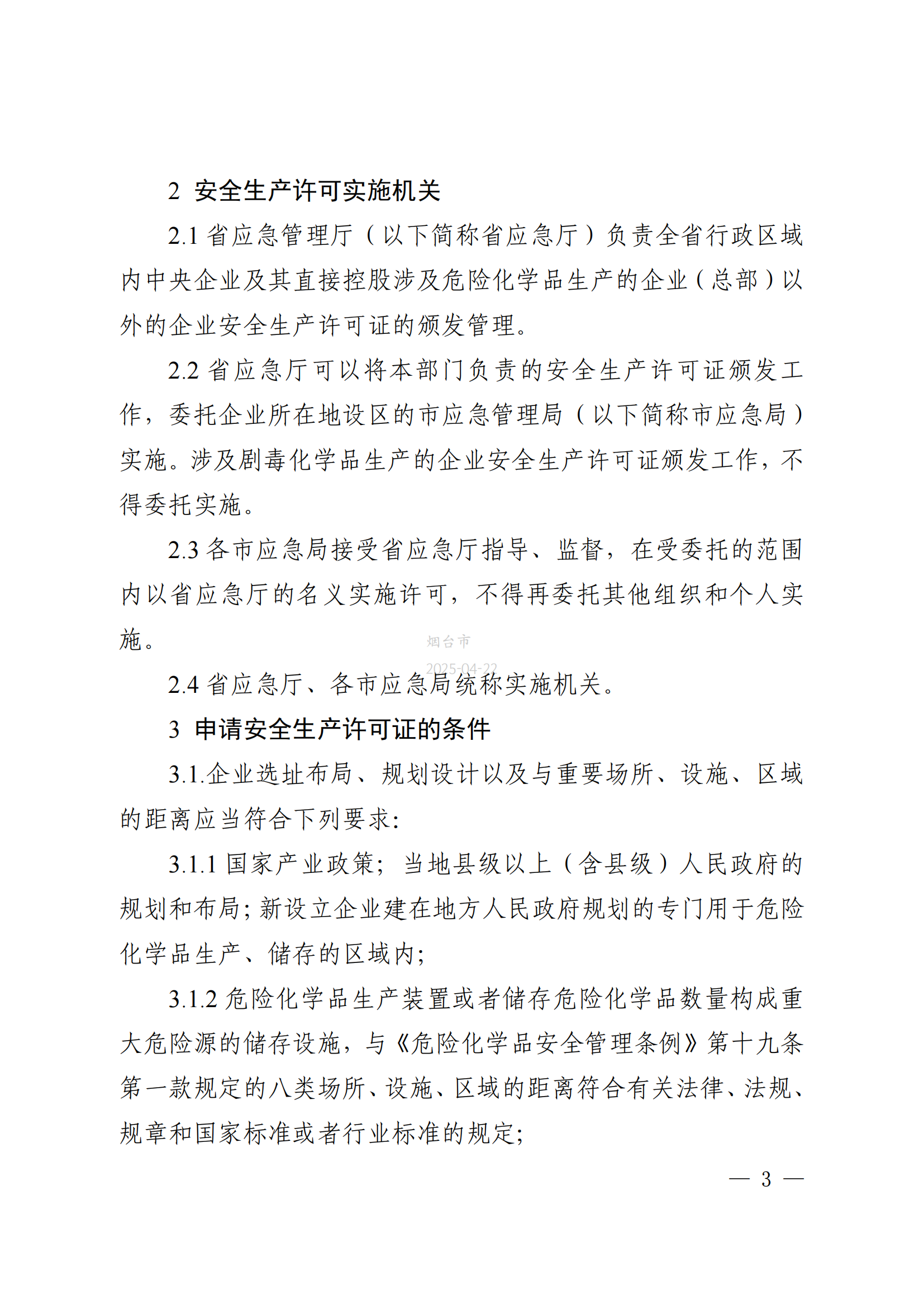 山东省应急管理厅关于印发《山东省危险化学品生产企业安全许可证实施细则》的通知