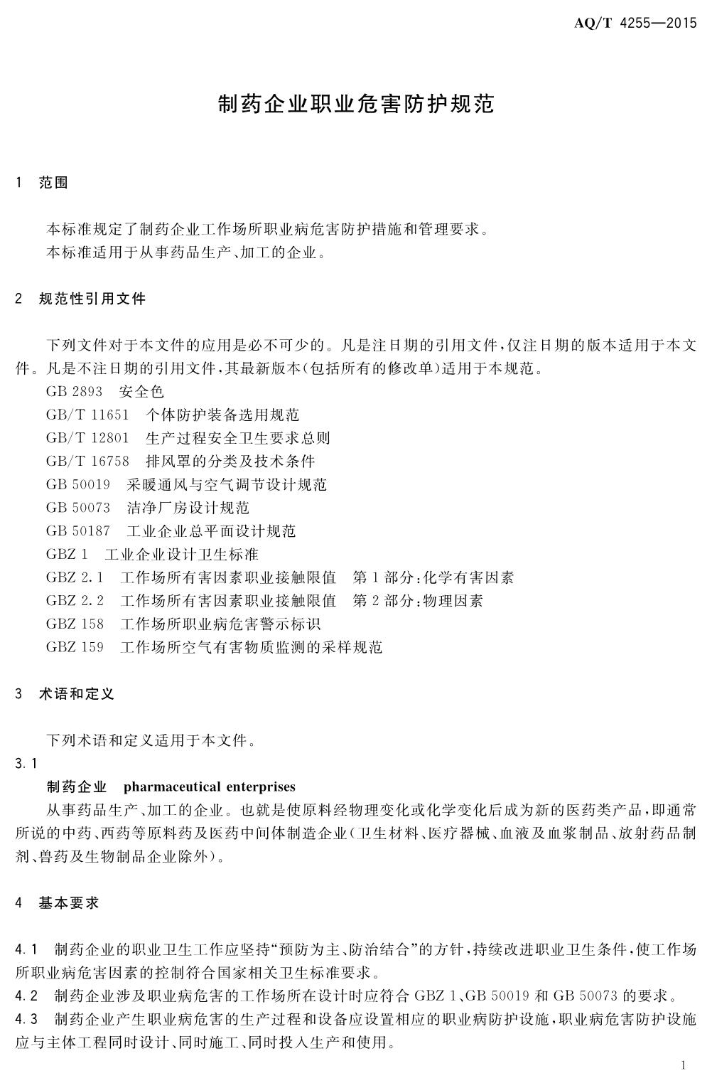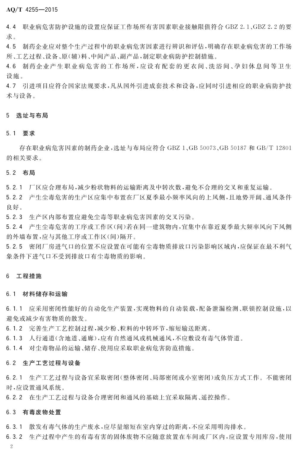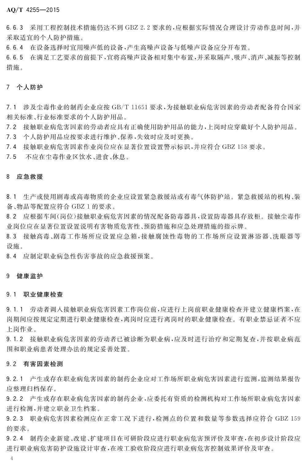 《制药企业职业危害防护规范》(WS-T738-2015)