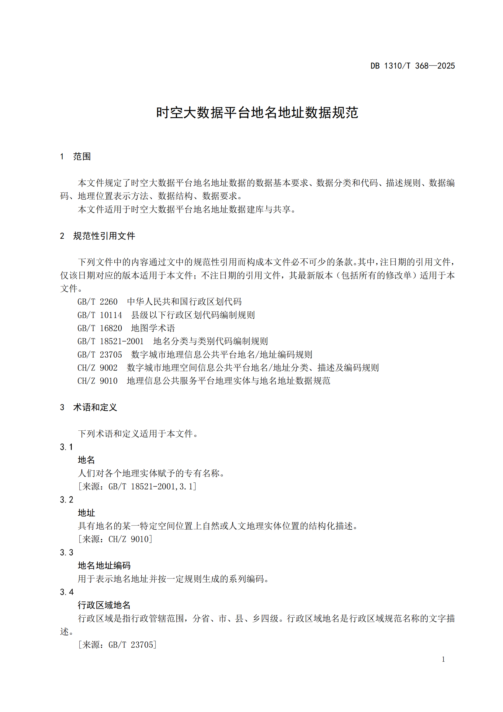 河北省时空大数据平台地名地址数据规范