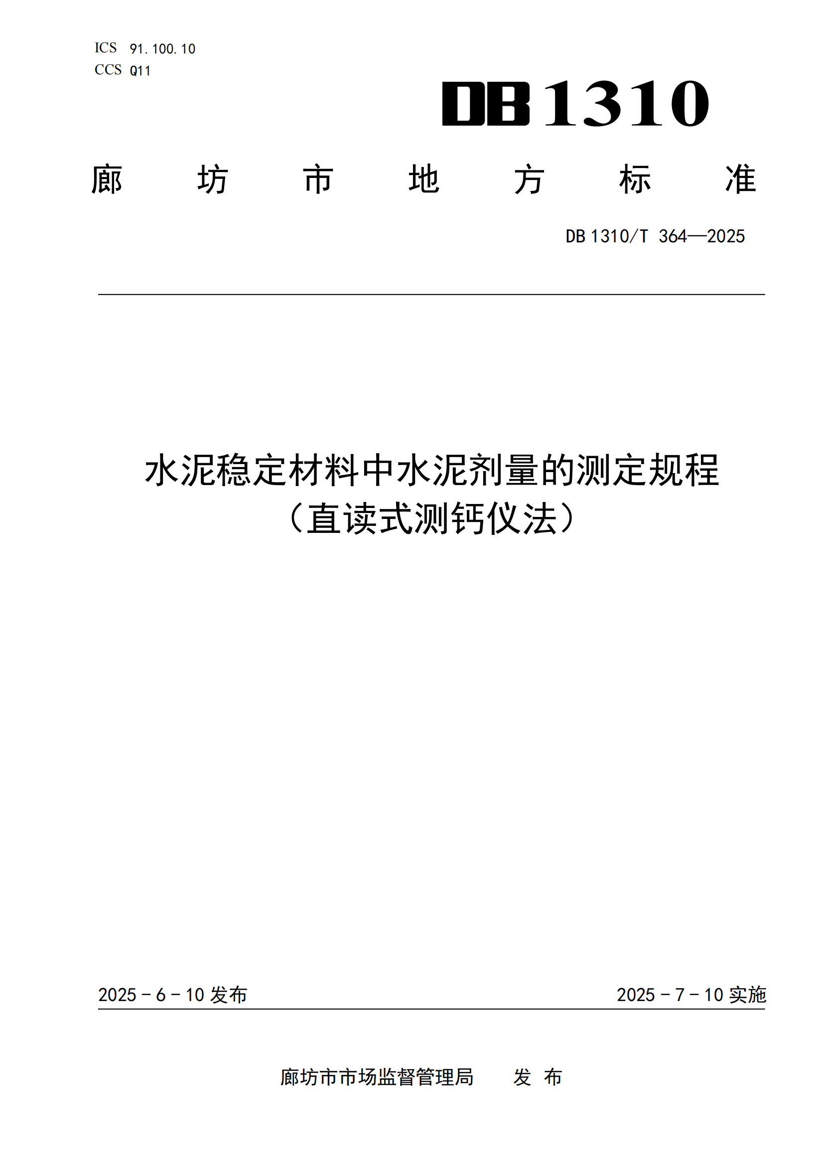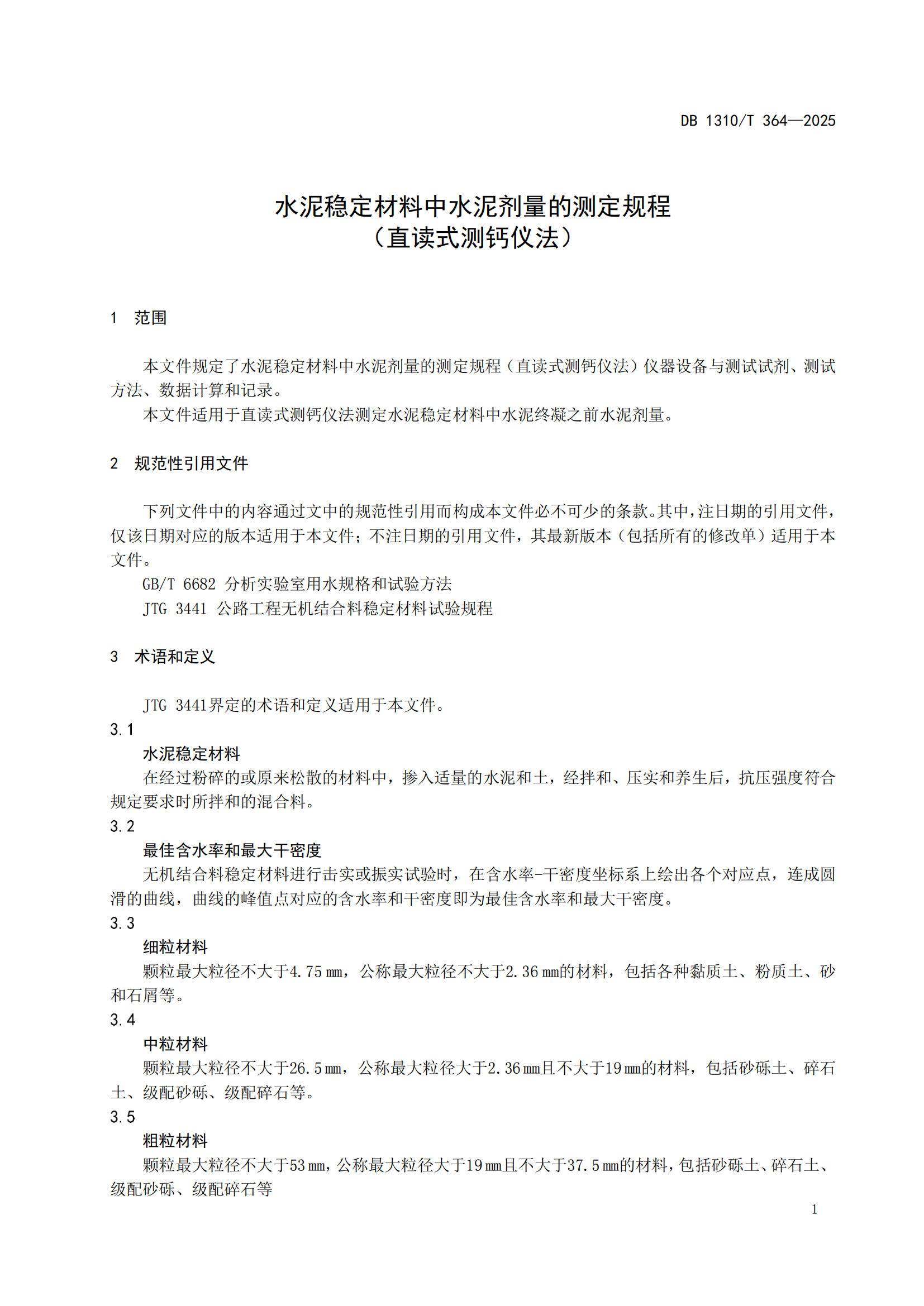 河北省水泥稳定材料中水泥剂量的测定规程(直读式测钙仪法)