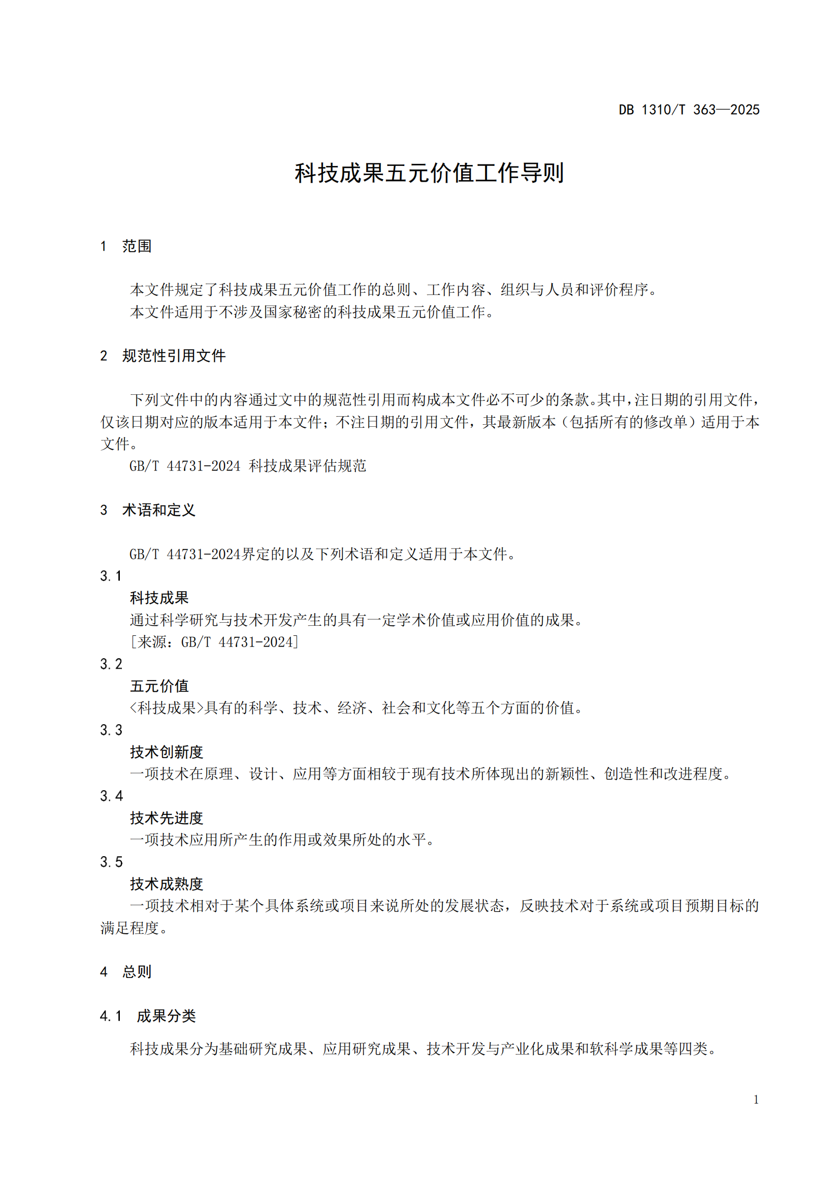 河北省科技成果五元价值工作导则