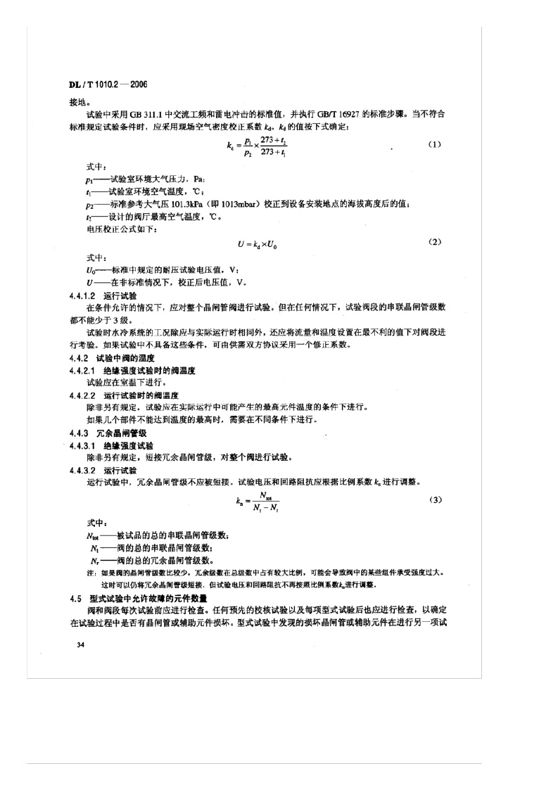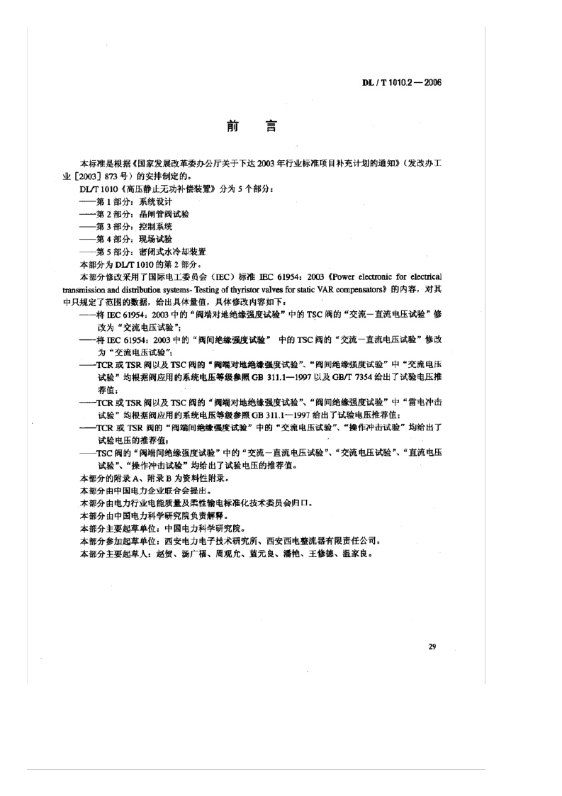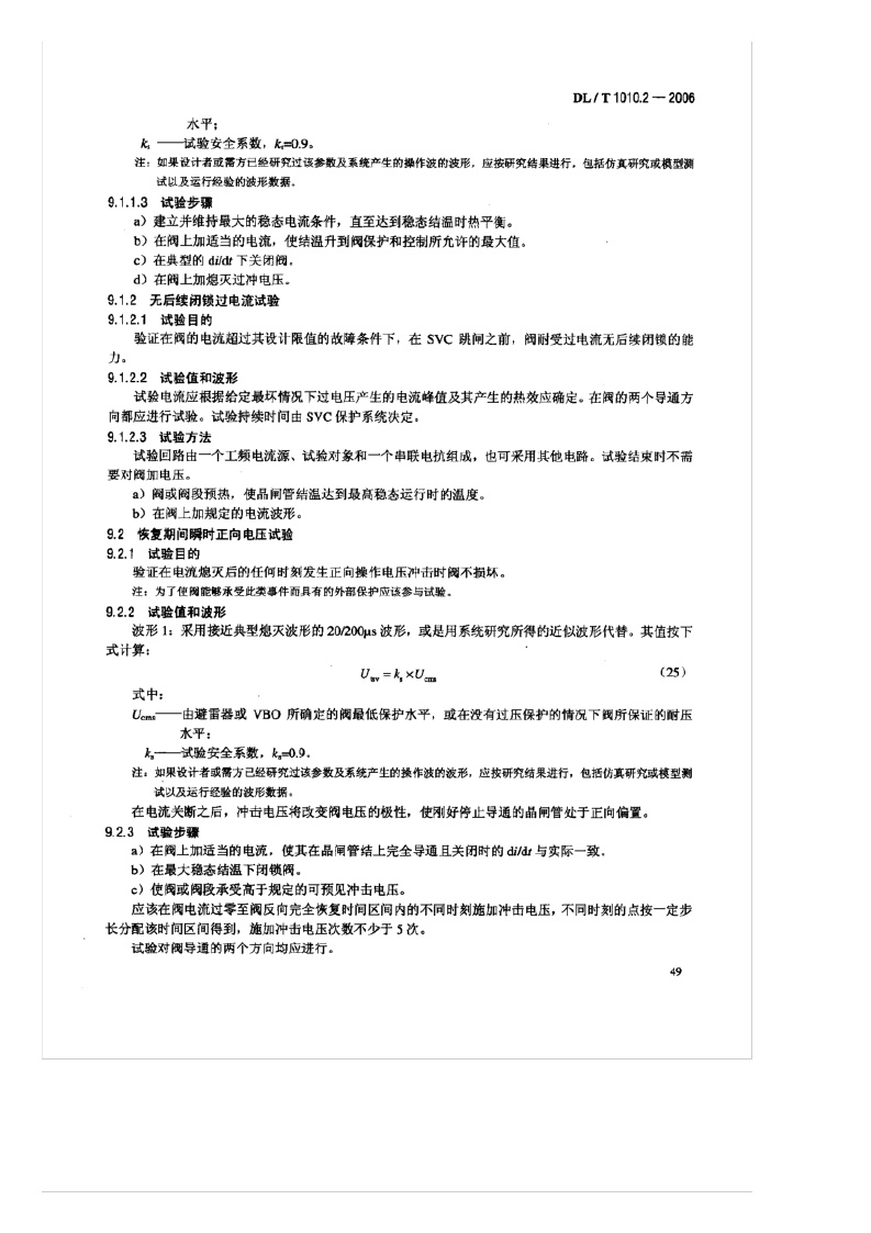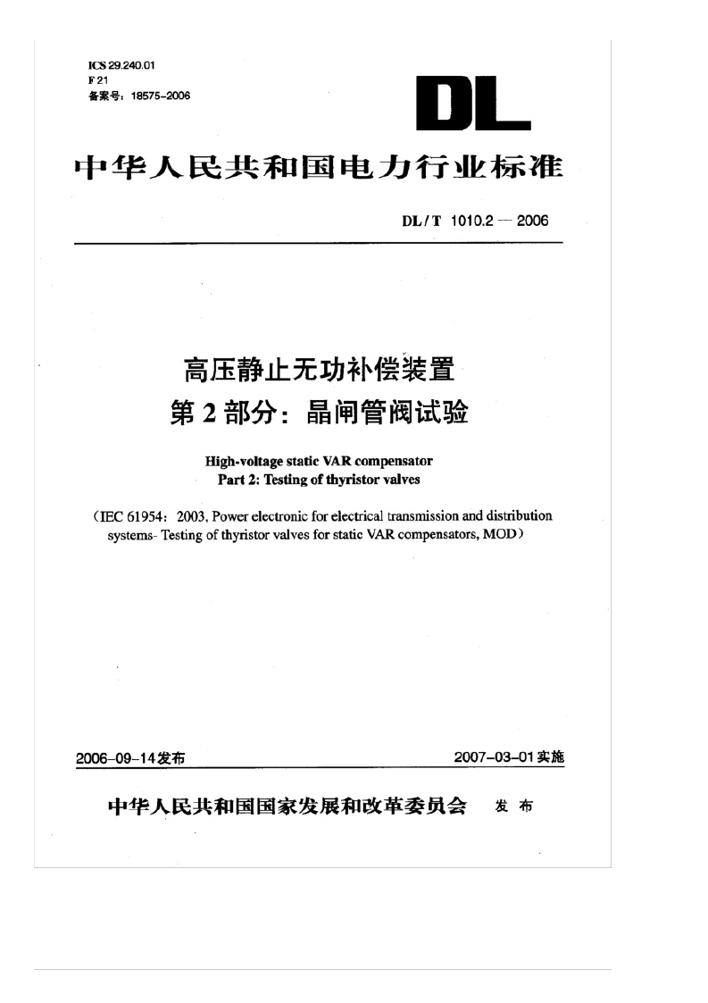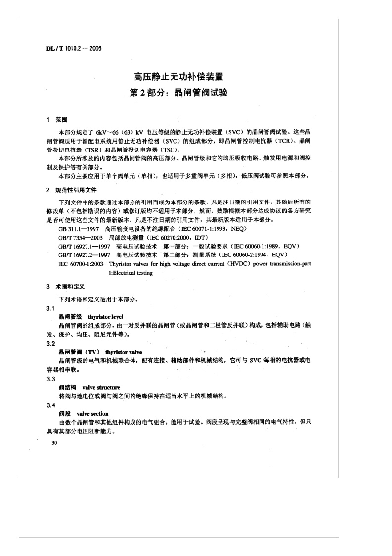《高压静止无功补偿装置_第2部分:晶闸管阀试验》(DL/T1010.2-2006)