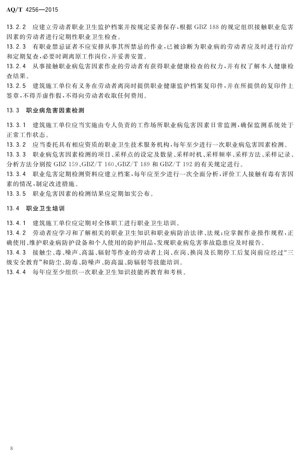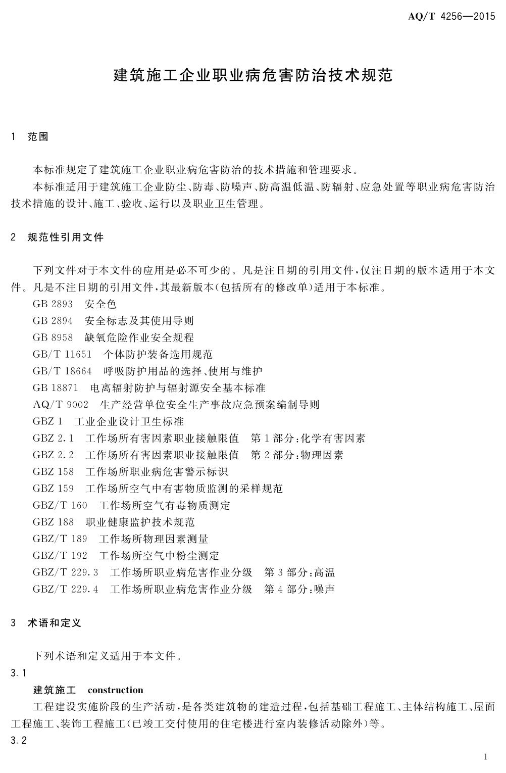 《建筑施工企业职业病危害防治技术规范》(WS-T770-2015)