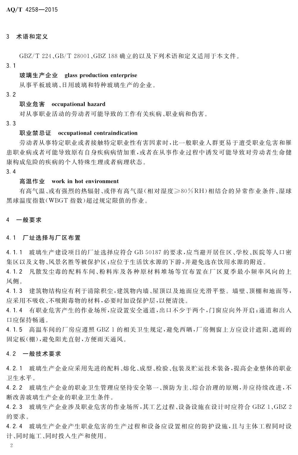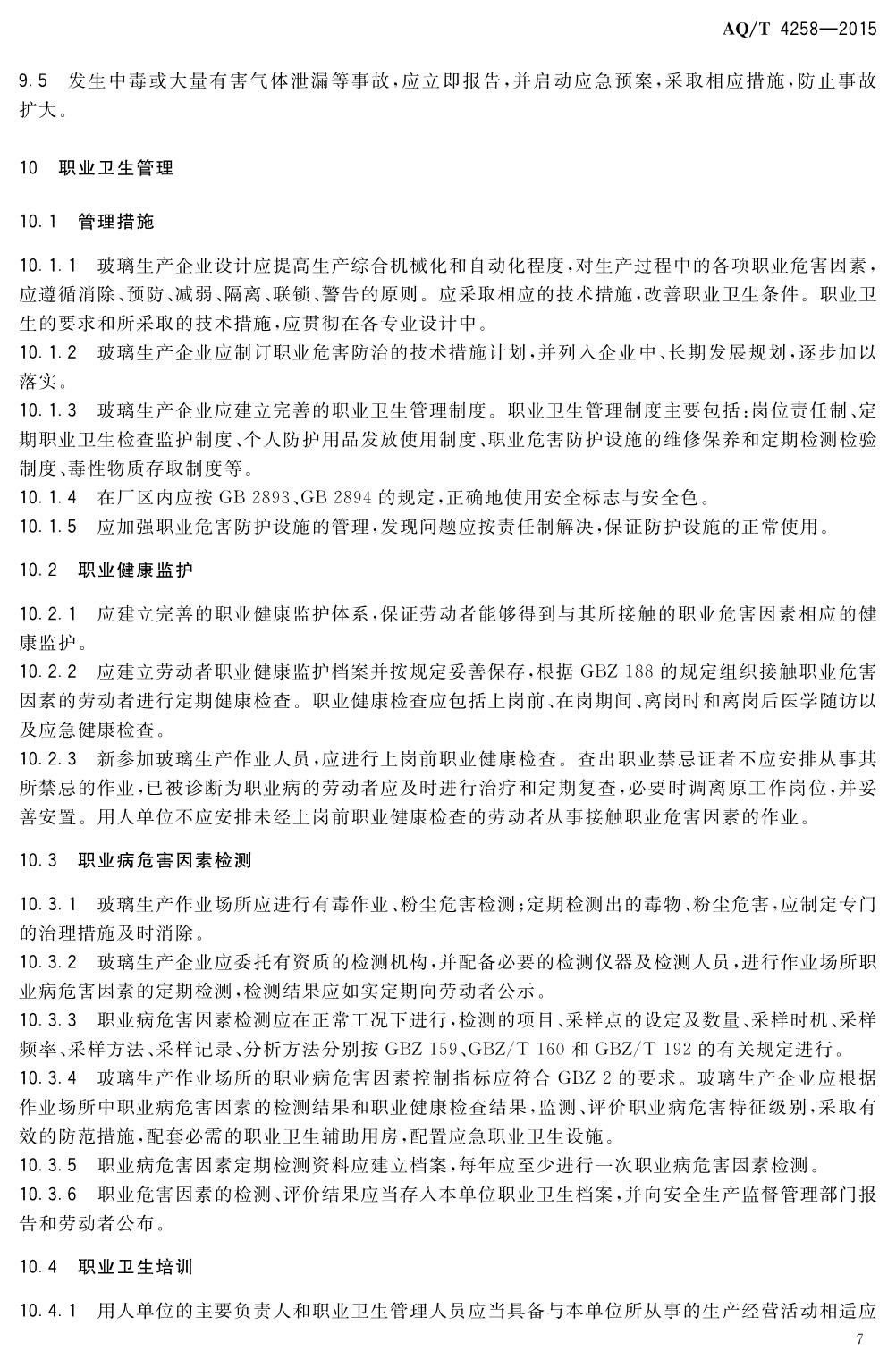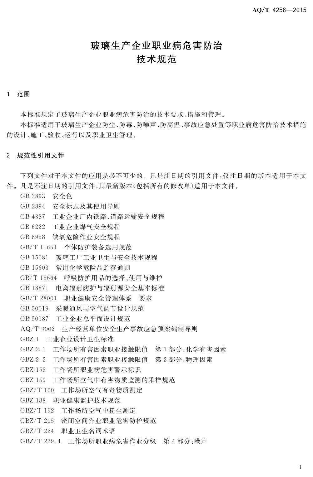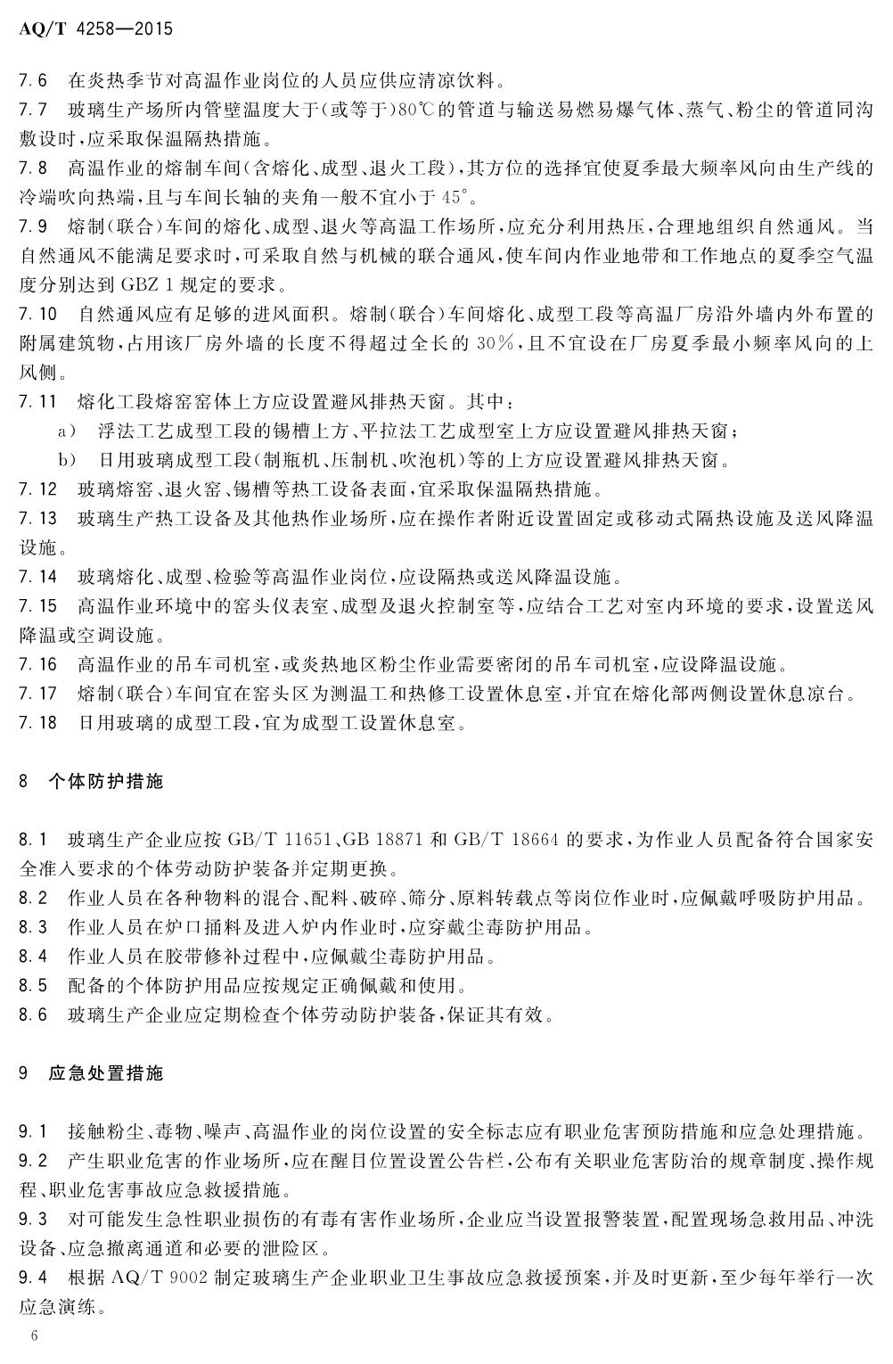 《玻璃生产企业职业病危害防治技术规范》(WS-T740-2015)