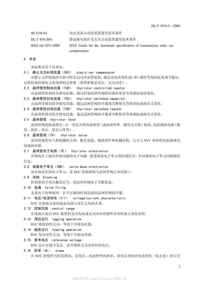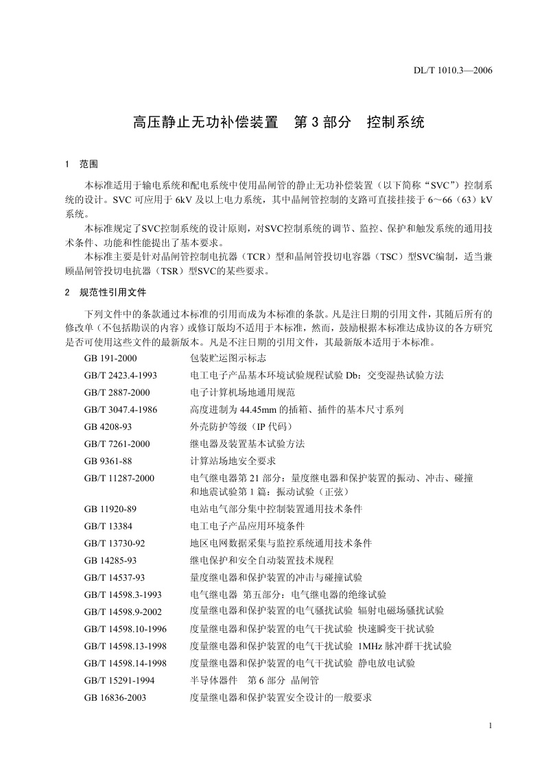 《高压静止无功补偿装置_第3部分:控制系统》(DL/T1010.4-2006)