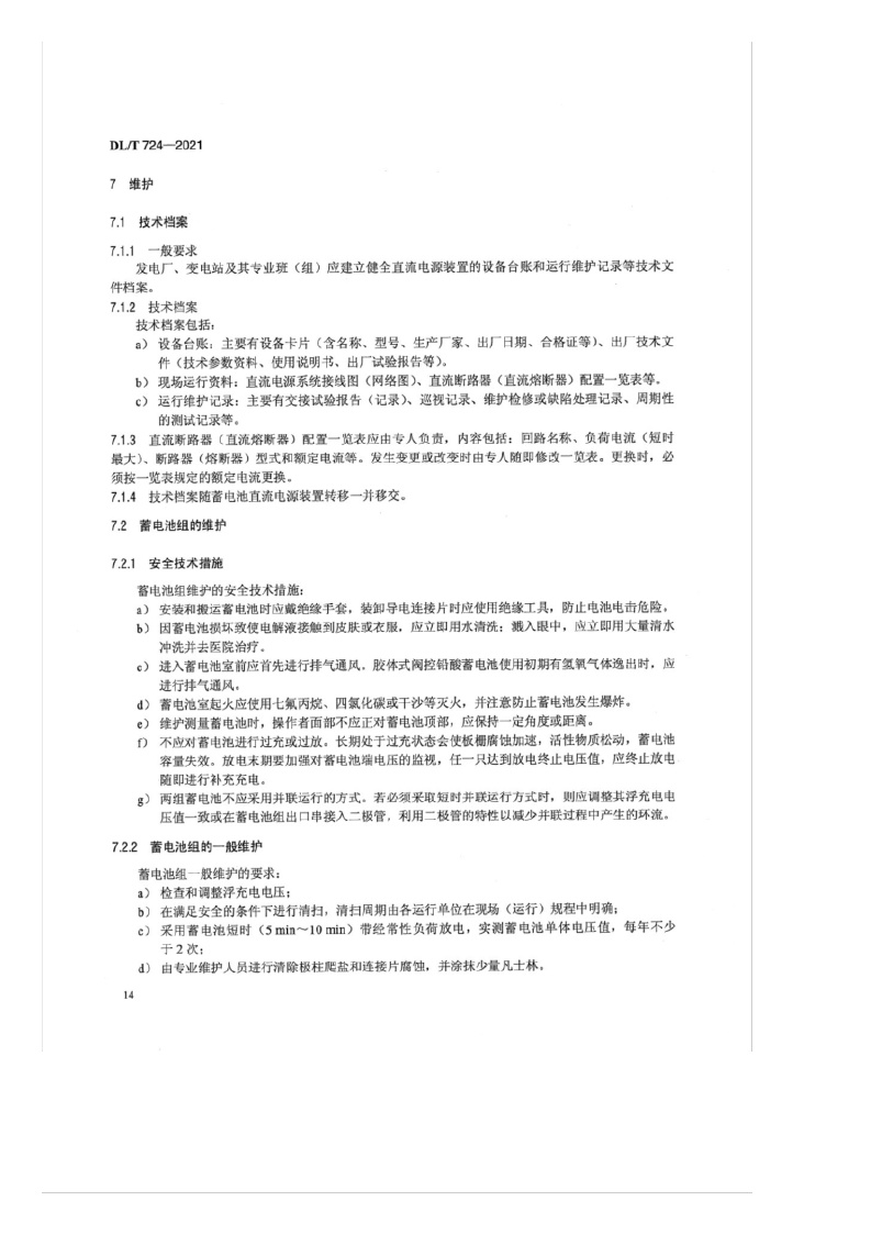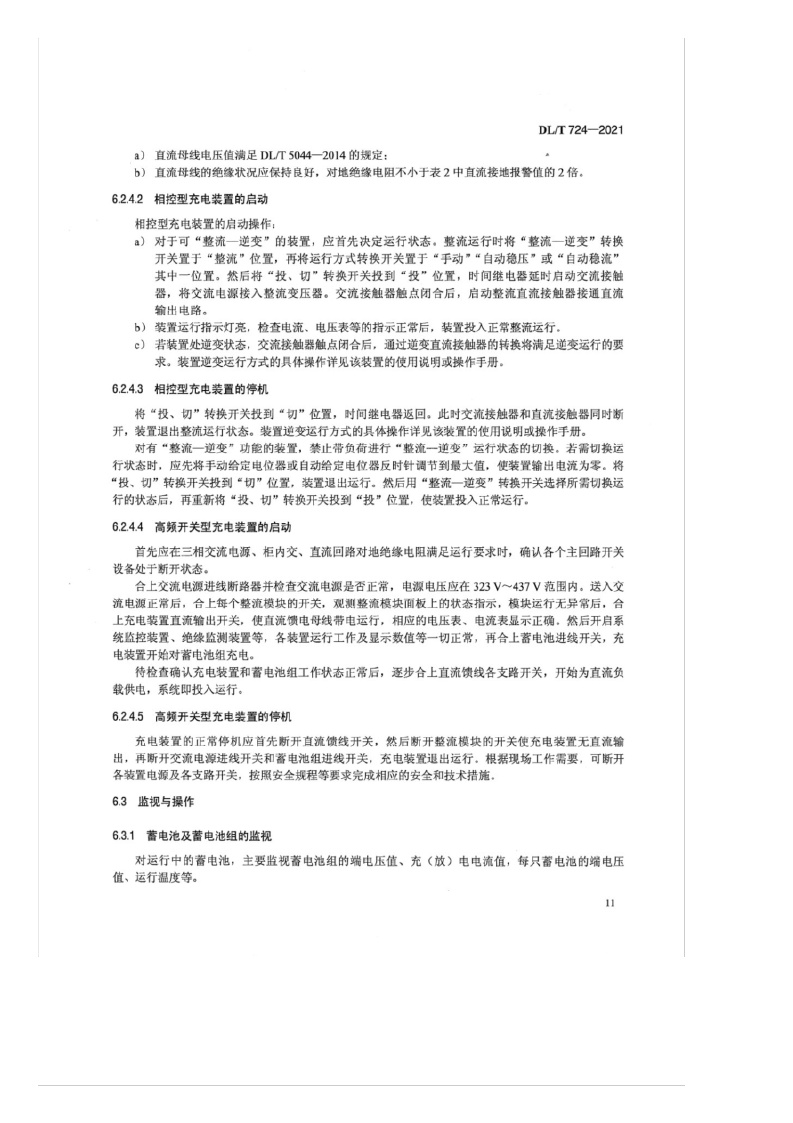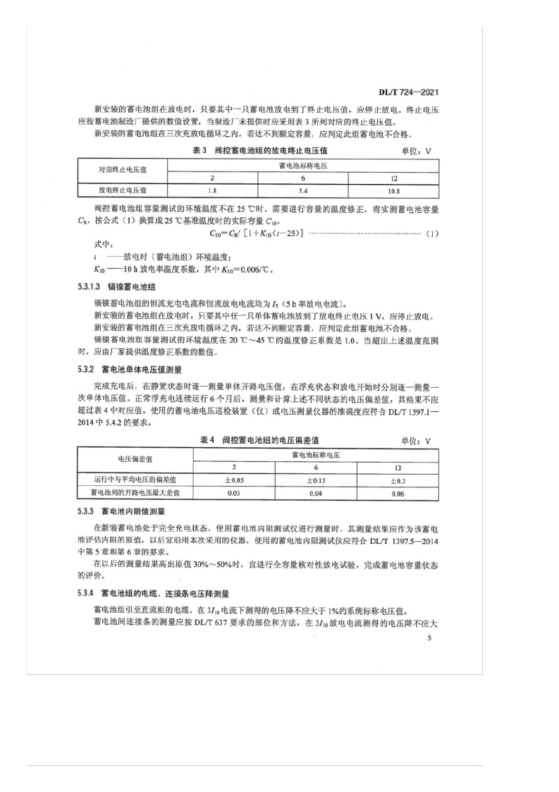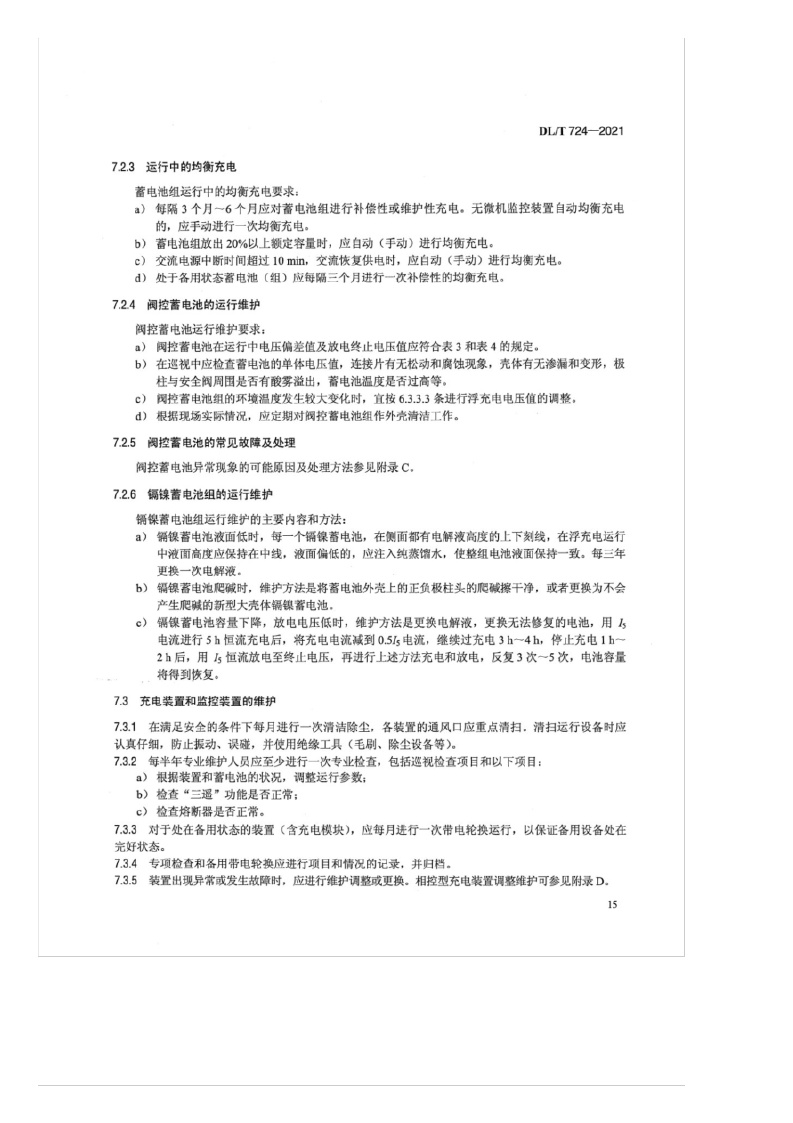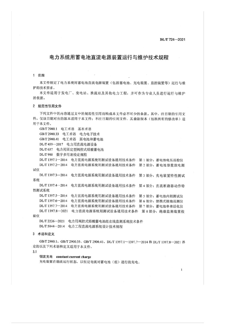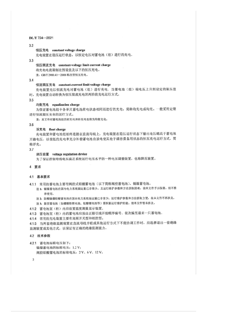 《电力系统用蓄电池直流电源装置运行与维护技术规程》(DL/T724-2021)