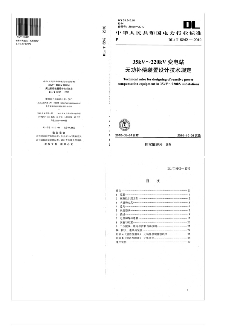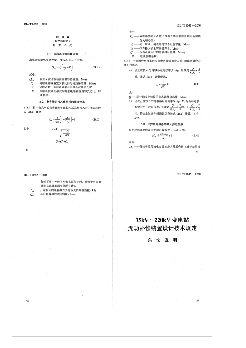 《35kV~220kV变电站无功补偿装置设计技术规定》(DL/T5242-2010)