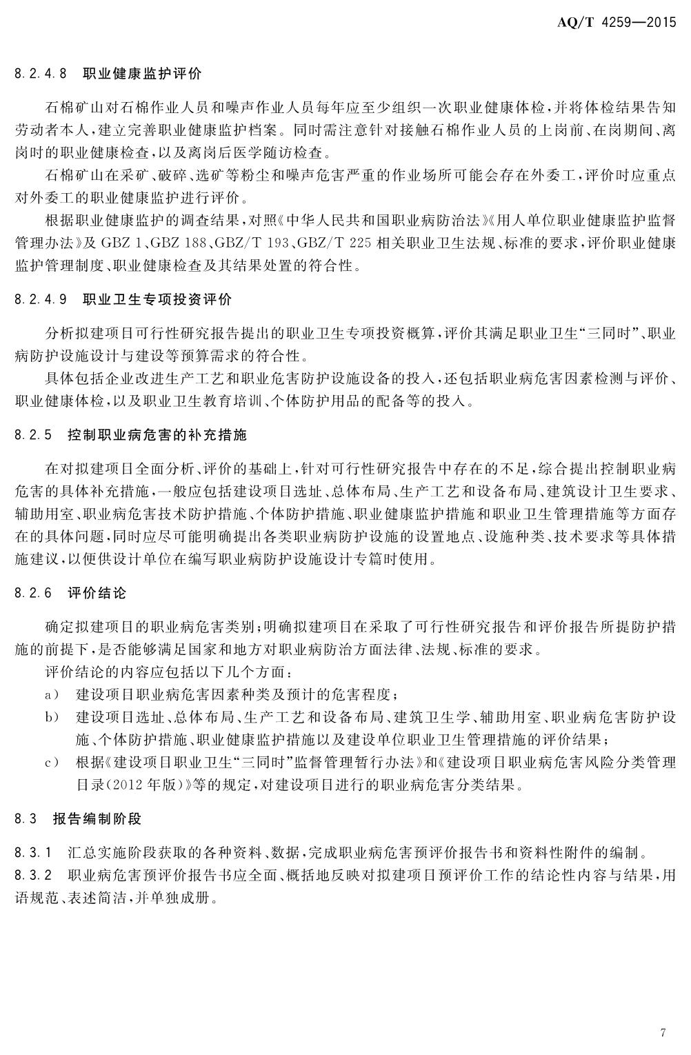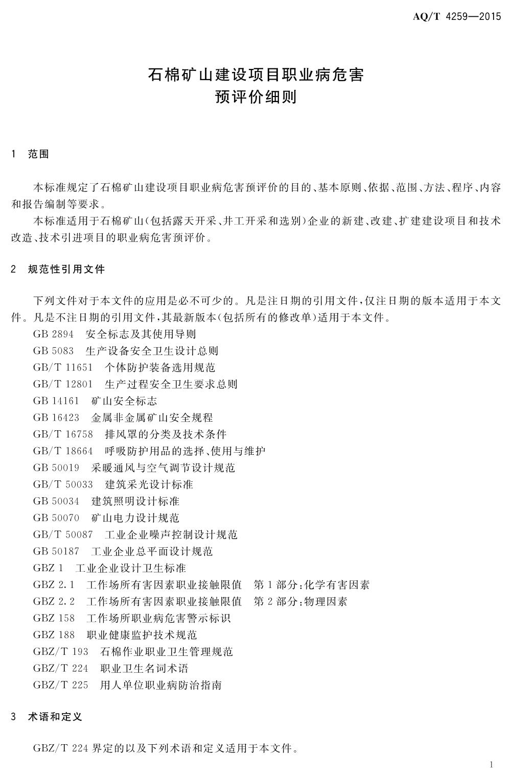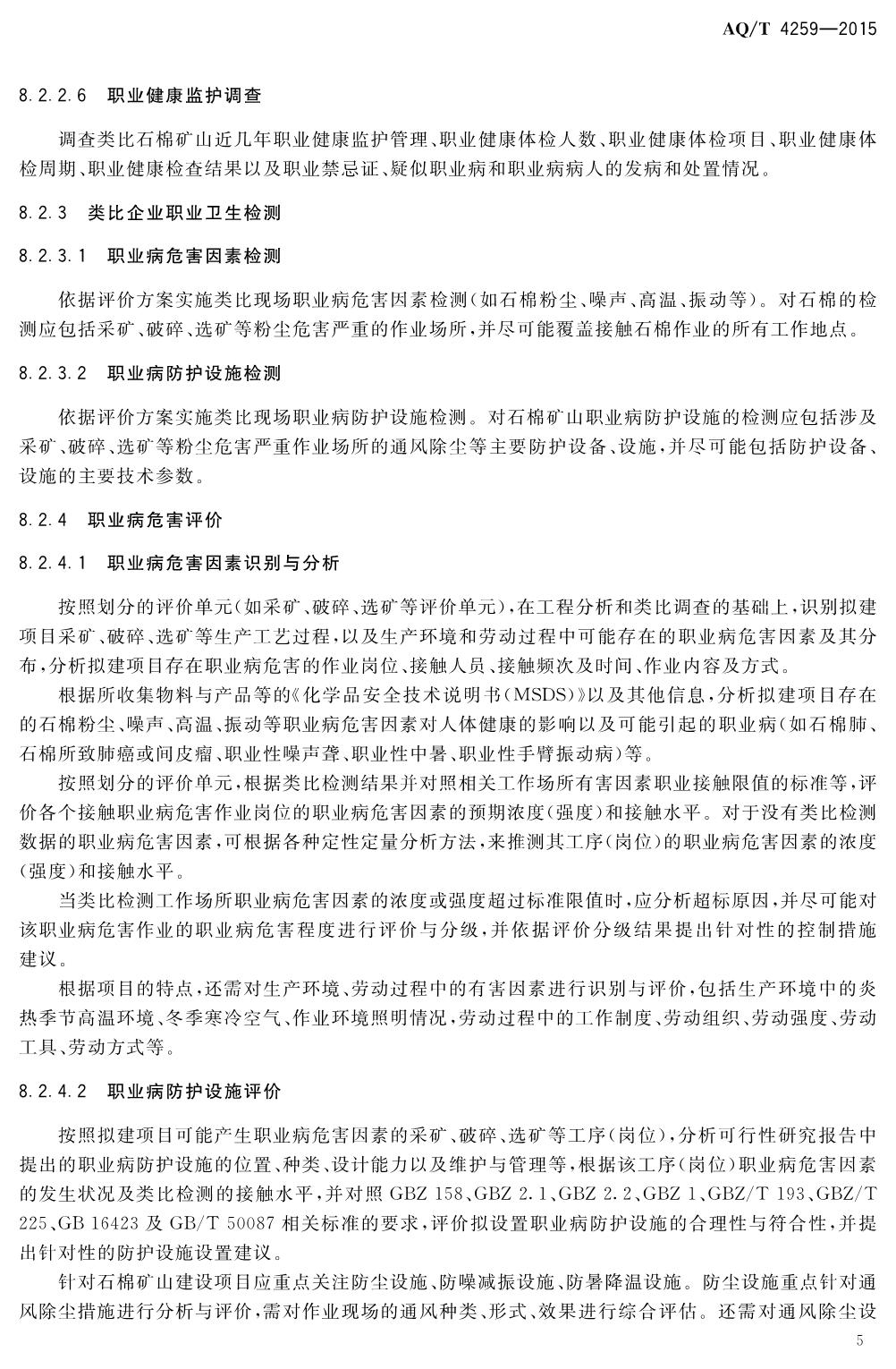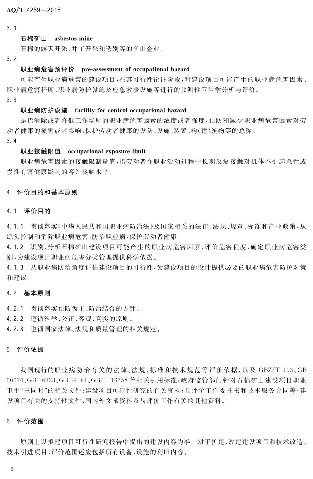 《石棉矿山建设项目职业病危害预评价细则》(WS-T741-2015)