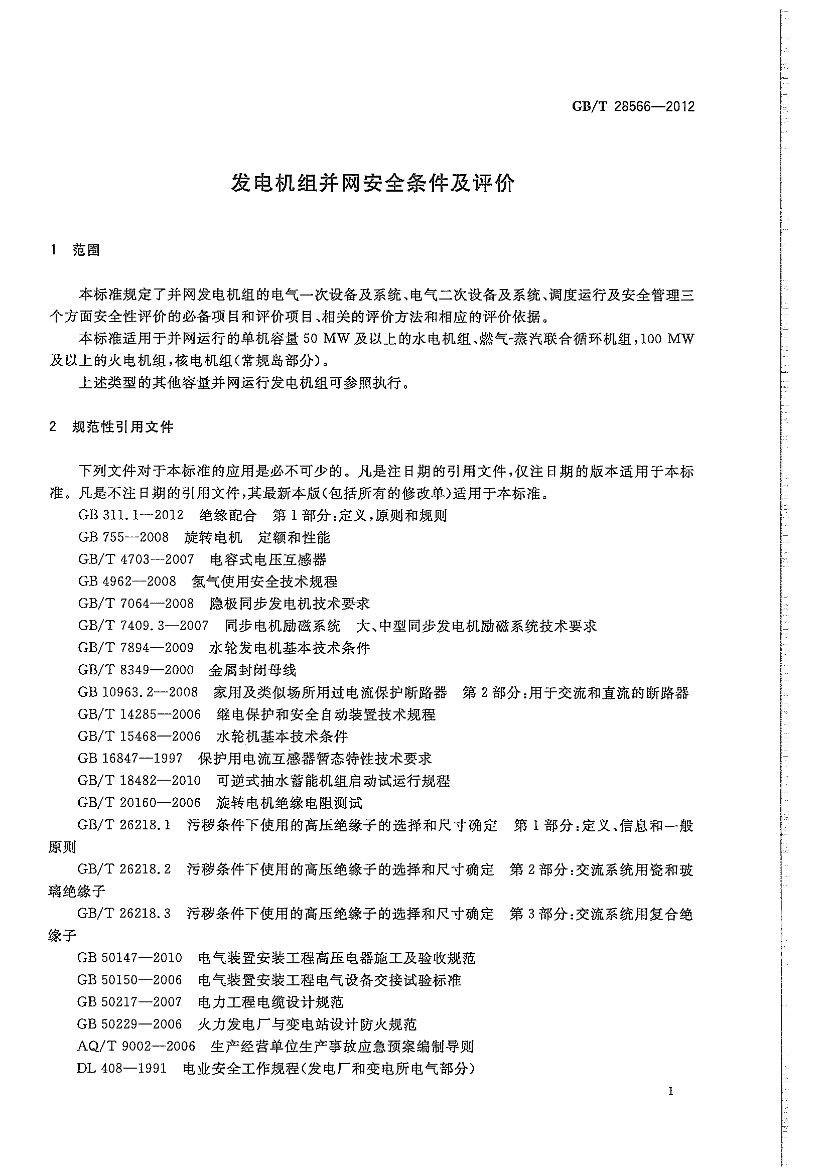 GB∕T 28566-2012 发电机组并网安全条件及评价