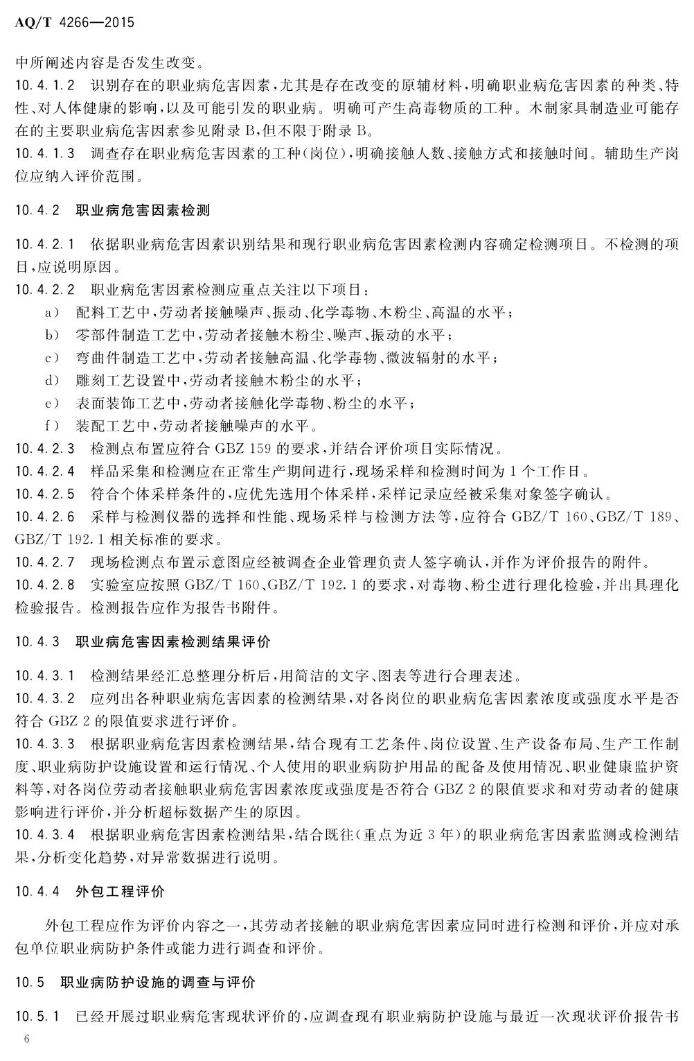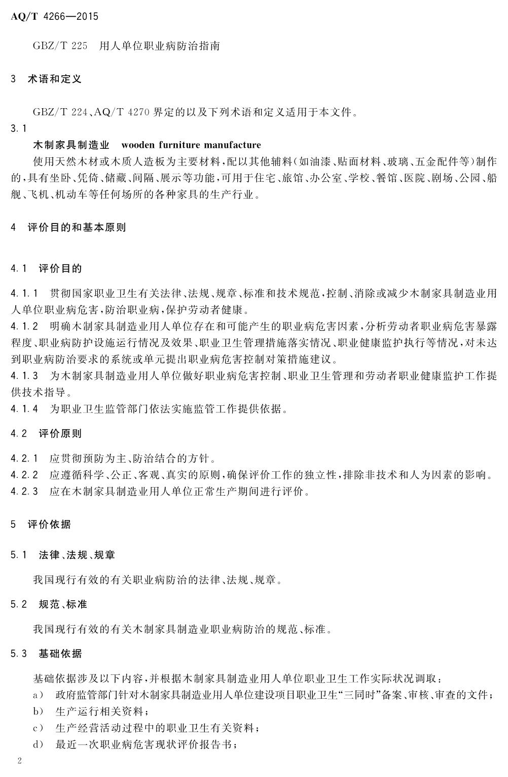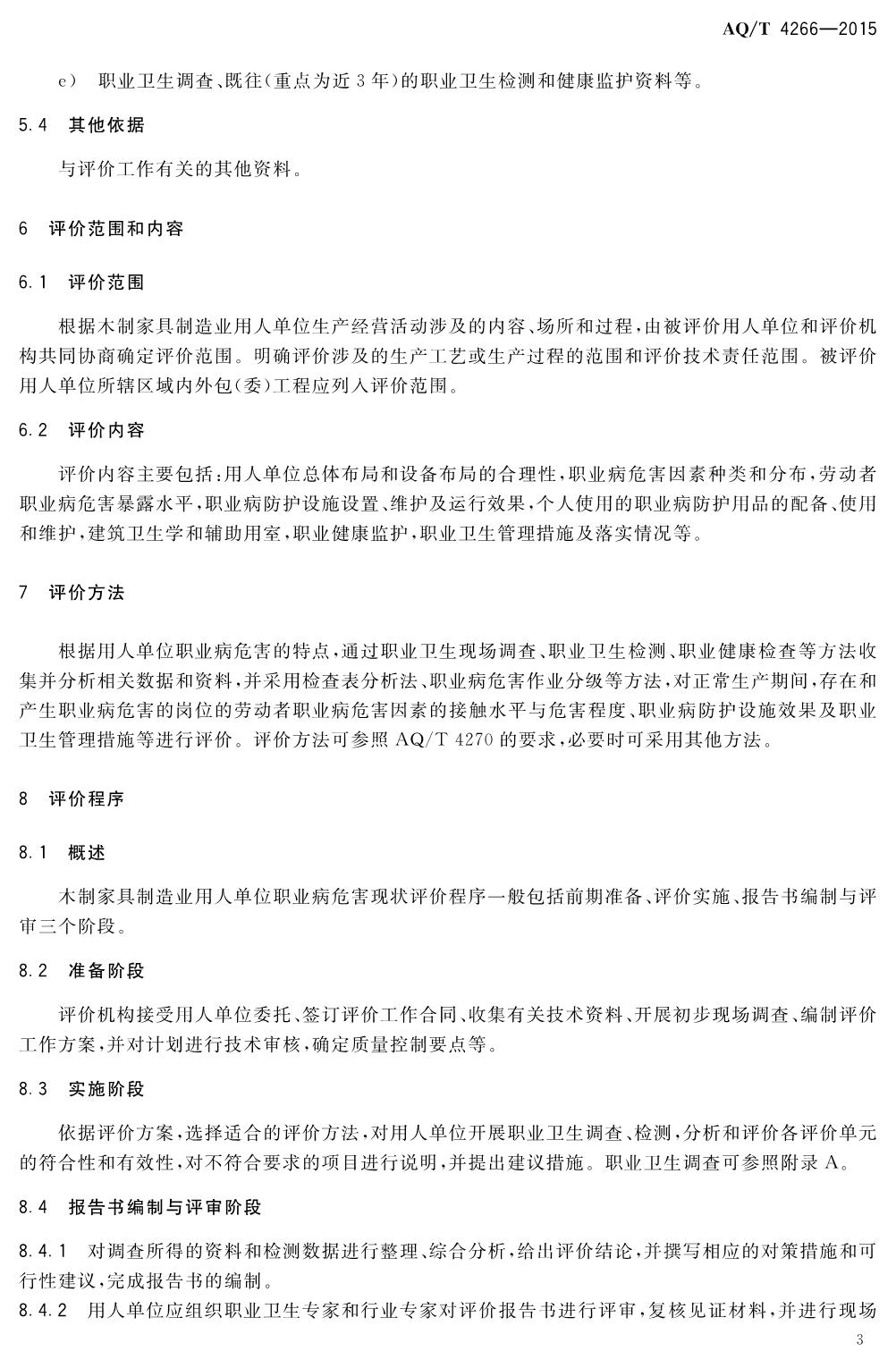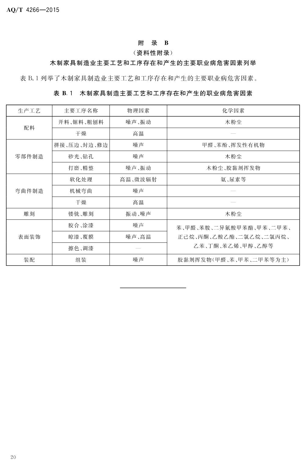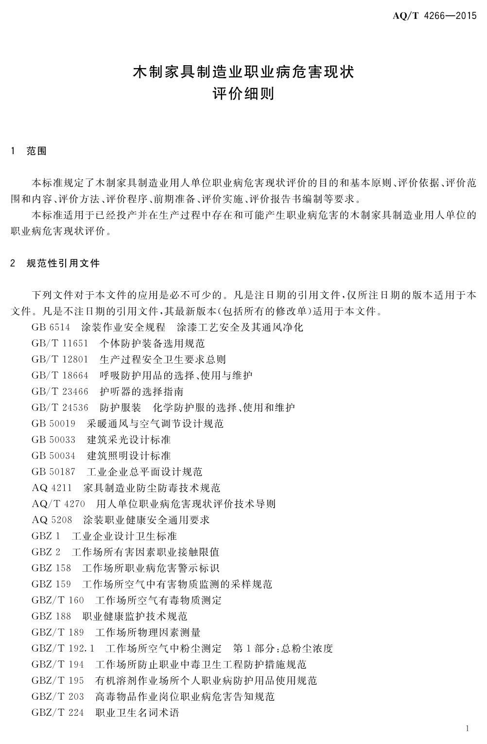 《木制家具制造业职业病危害现状评价细则》(AQT4266-2015)